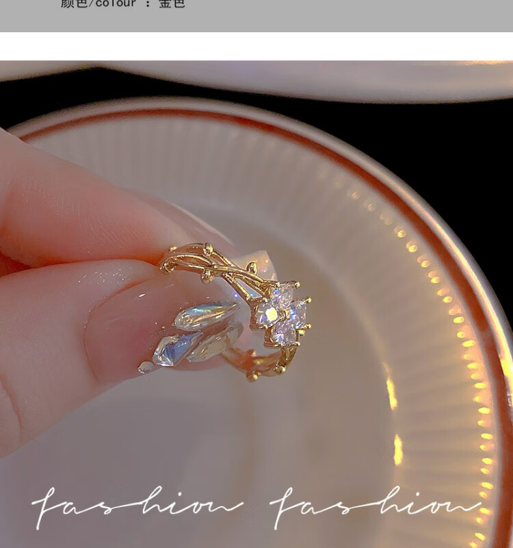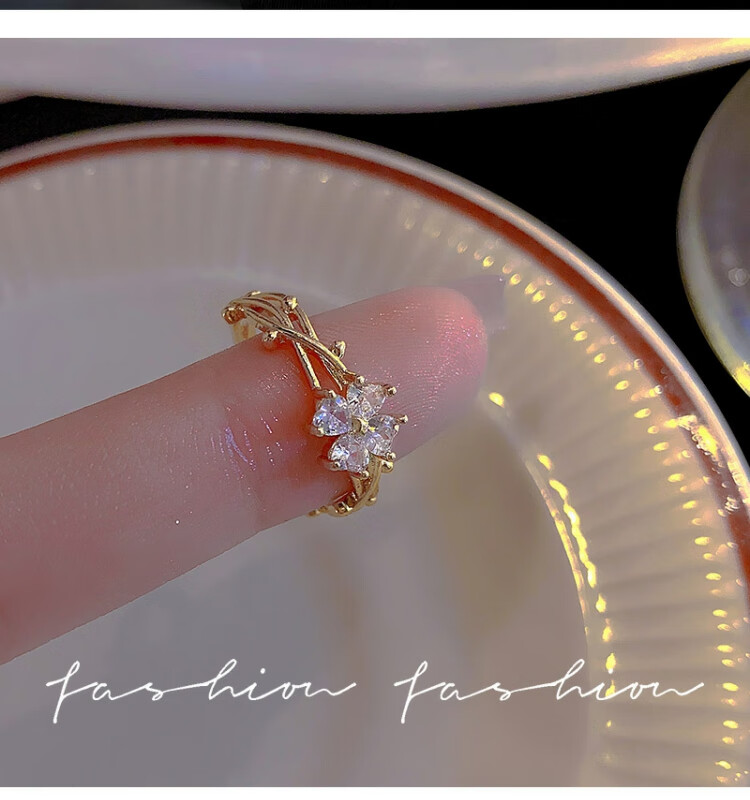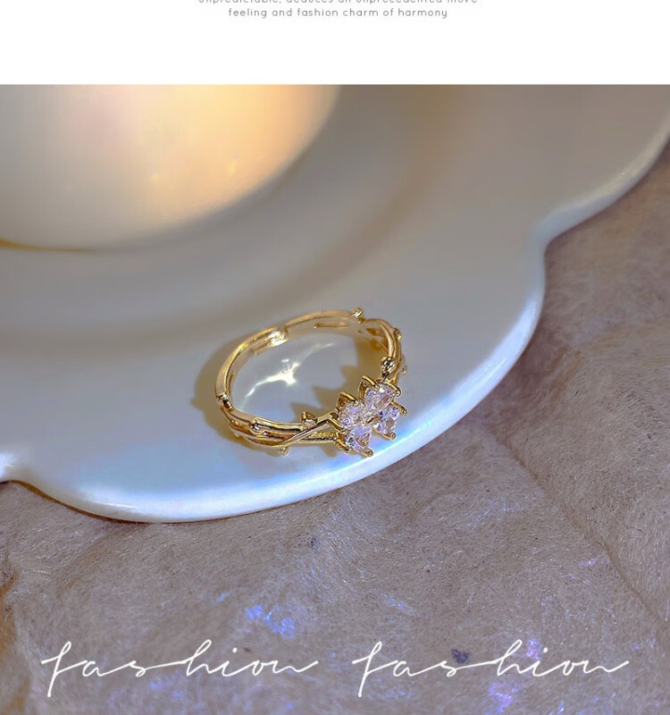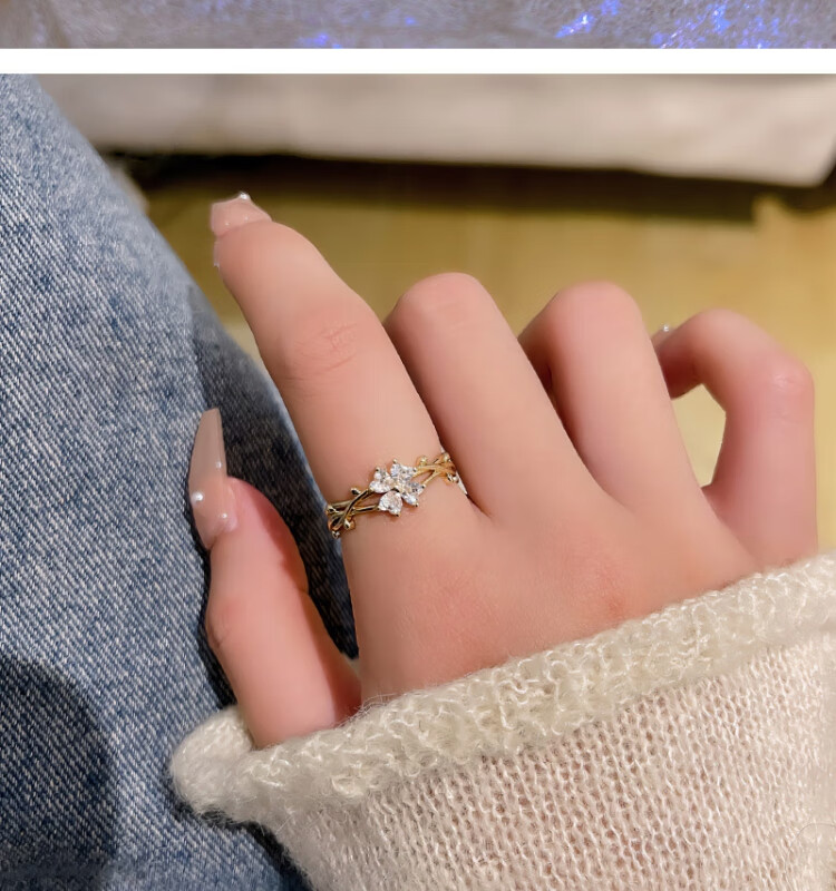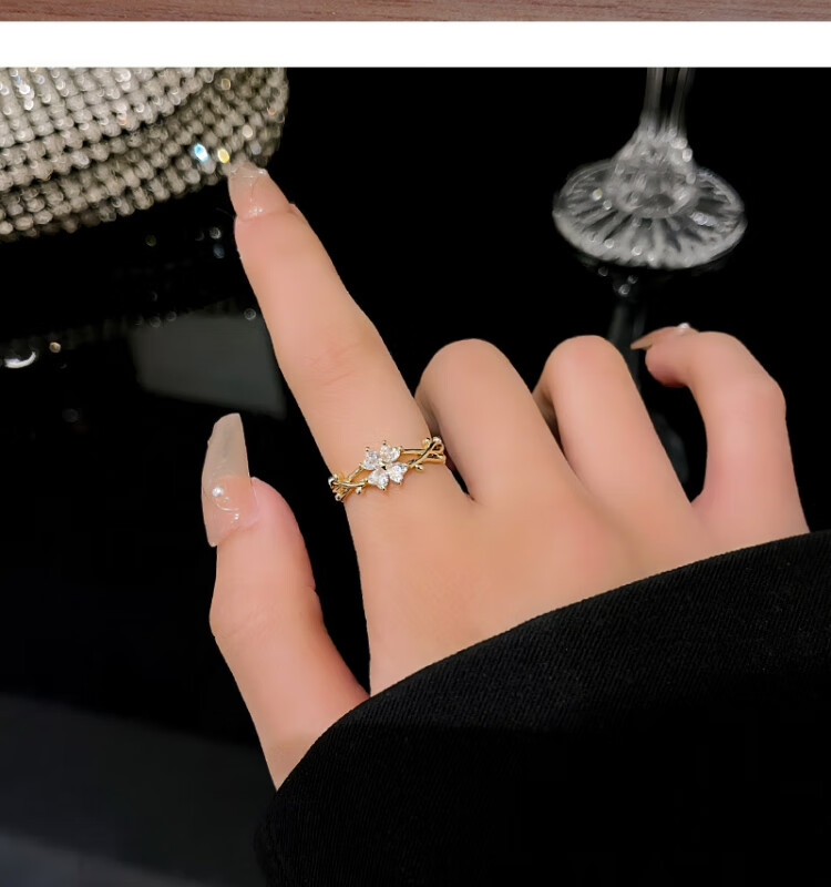 Flower micro-encrusted winding ring, exquisite, luxurious and high-end index finger ring, new trendy niche ring for women, golden flower ring (opening can be adjusted)