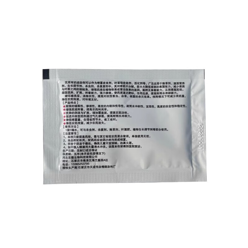 Organic silicone agricultural silicone auxiliary pesticide penetrating agent silicone synergist spreading agent resistant to rain erosion 10ml*100 bags