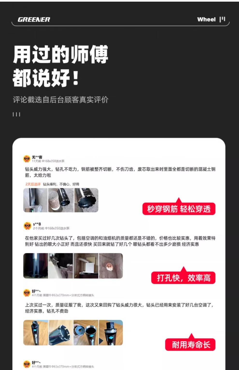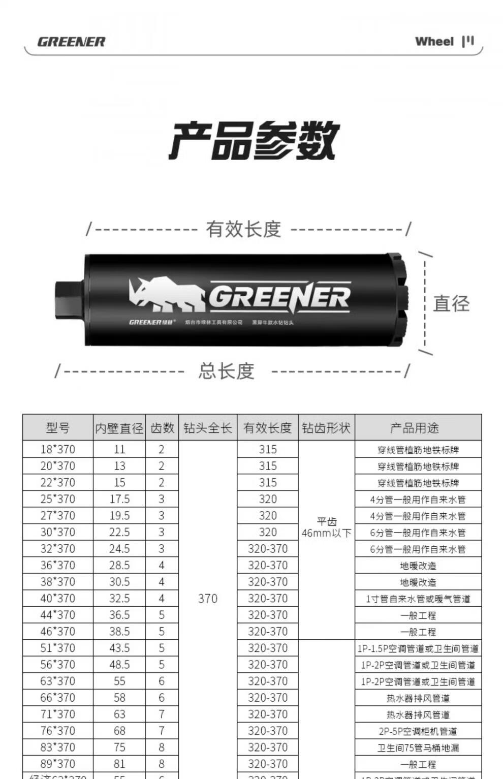 Greener (GREENER) rhinestone drill bit hole opener drilling artifact dry hole drilling machine concrete to wall cement special collection 63 83x370mm