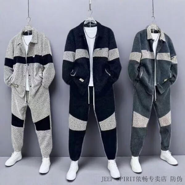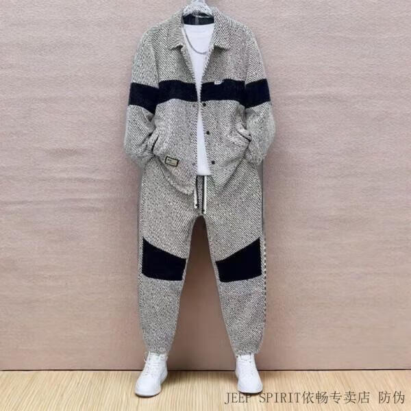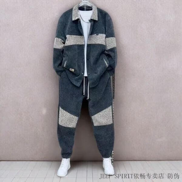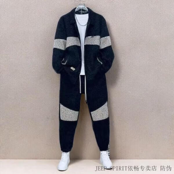 JEEP SPIRIT Jeep Spring and Autumn New Color Matching Suit Men's Fashion Swallowtail Jacket Trendy Versatile Casual Pants Handsome Two-piece Set Black Suit XL