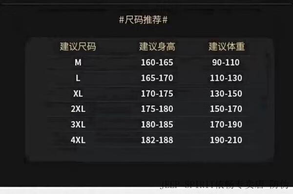 China (cm) 165 / 88-90 170 / 96-98 175 / 108-110 180 / 118-122 185 / 126-130