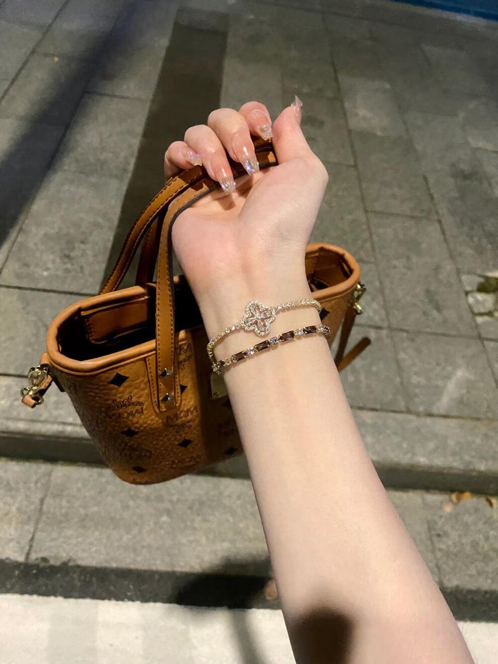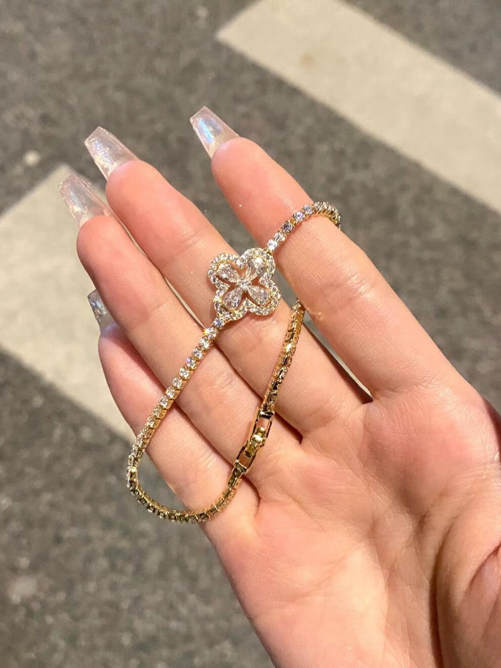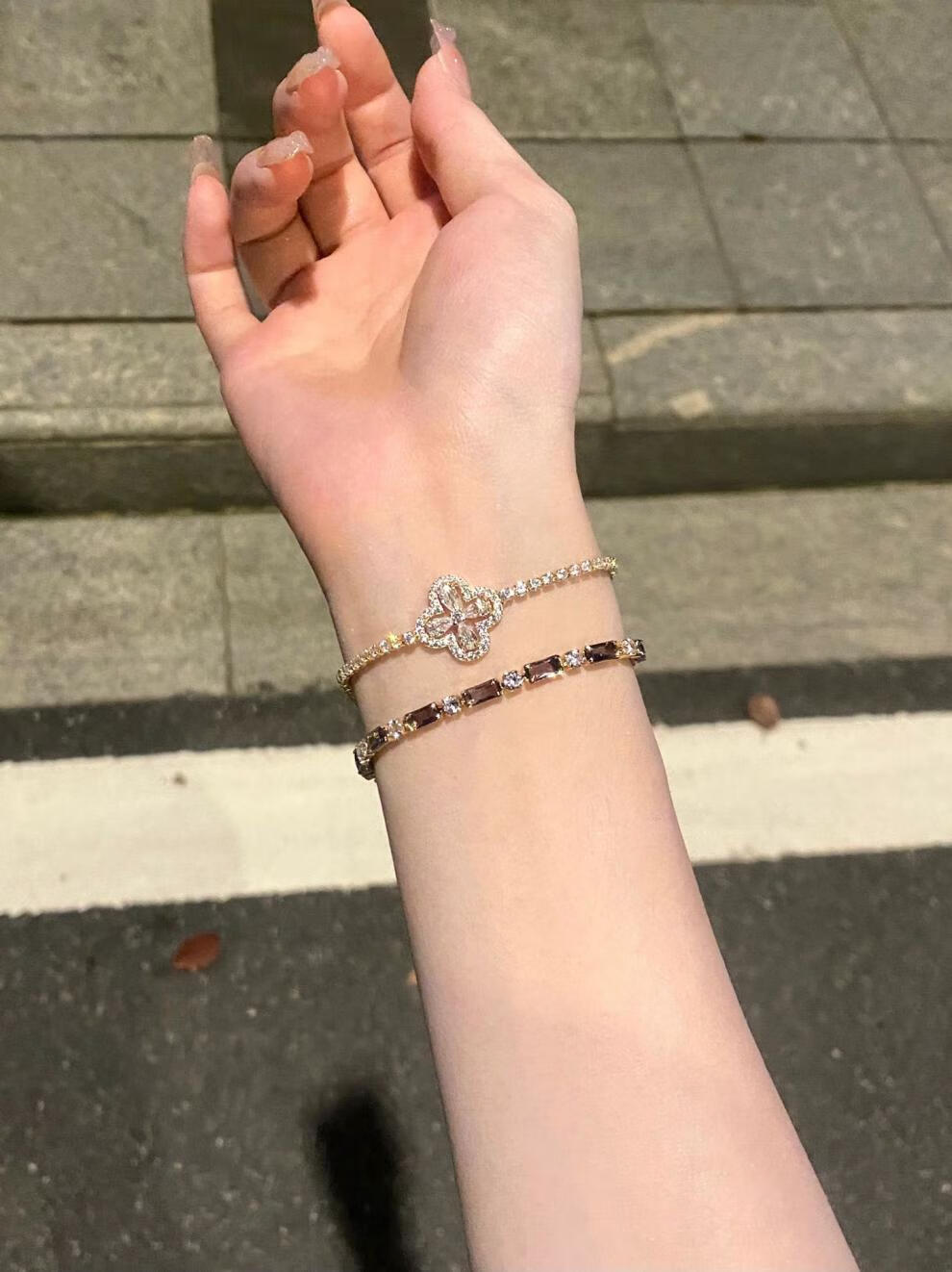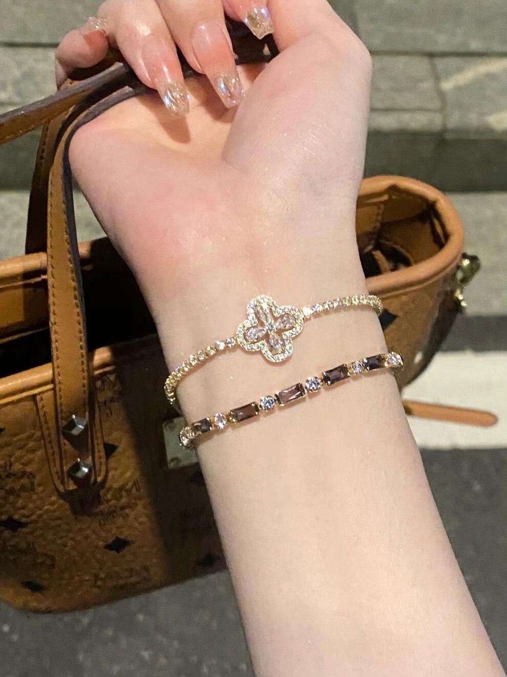 QUAMER super flash lucky four-leaf clover zircon bracelet women's light luxury flower ins stacking bracelet small four-leaf flower bracelet