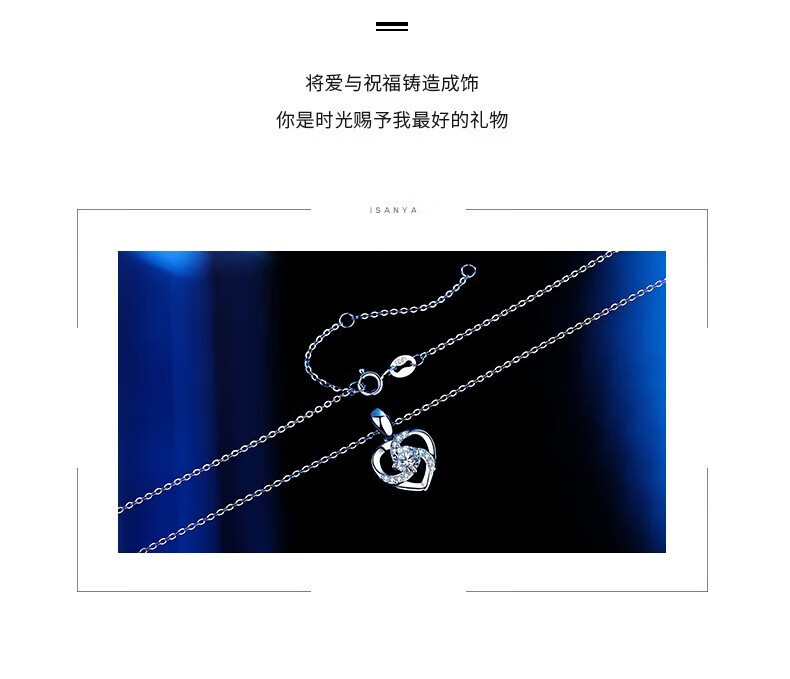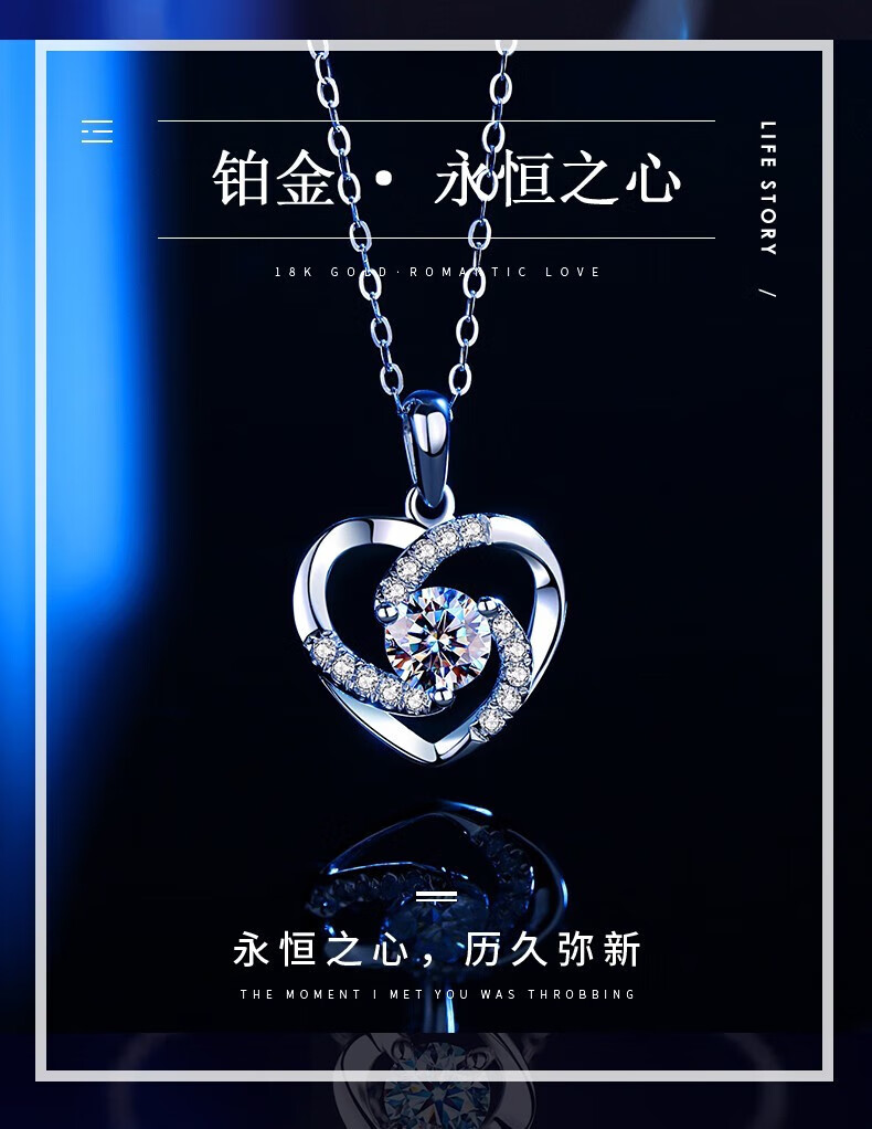 Eternal Heart Platinum Necklace for Women PT950 Moissanite Platinum Valentine's Day Birthday Gift for Girlfriend and Wife Eternal Heart Blue Pendant + Ingot Chain - Light Luxury Style
