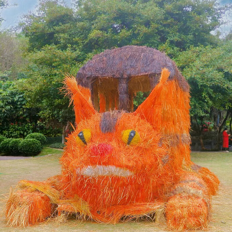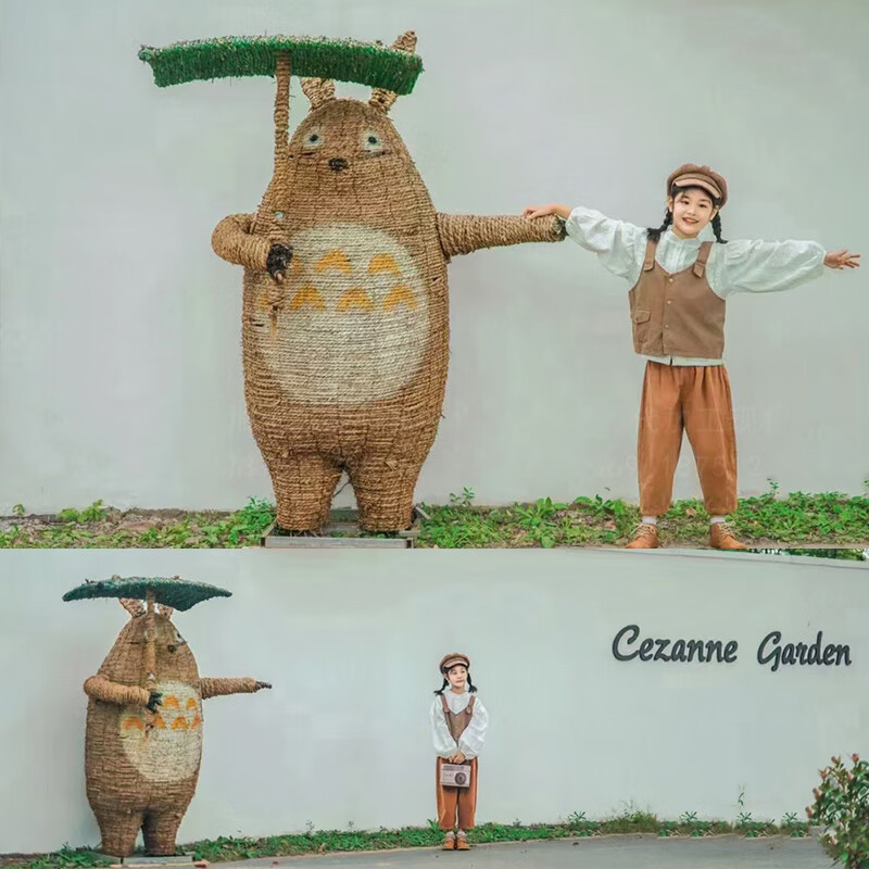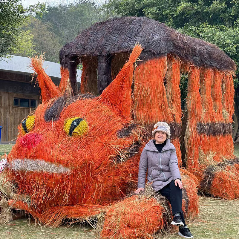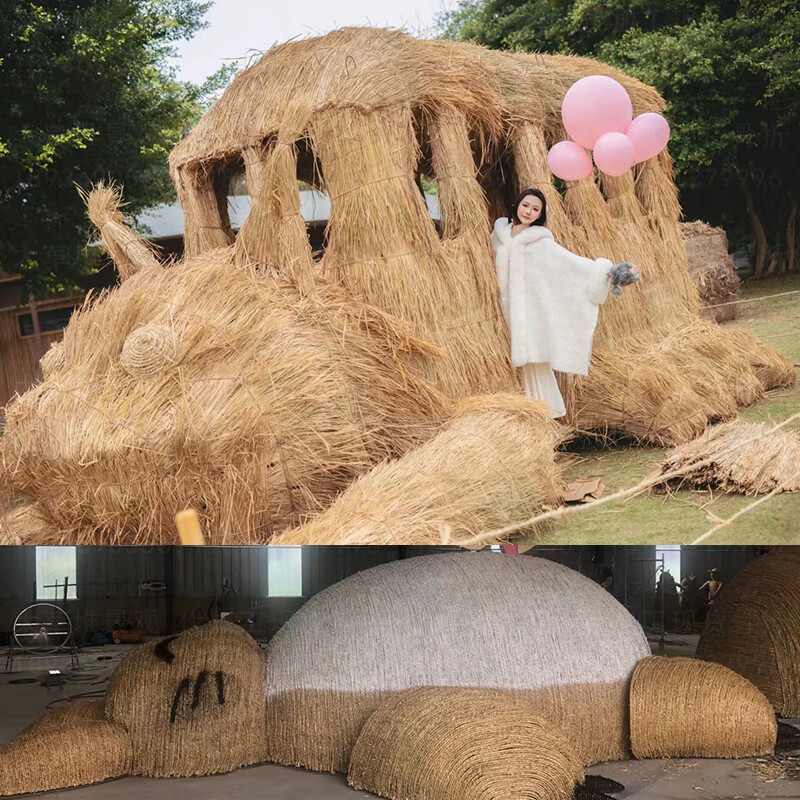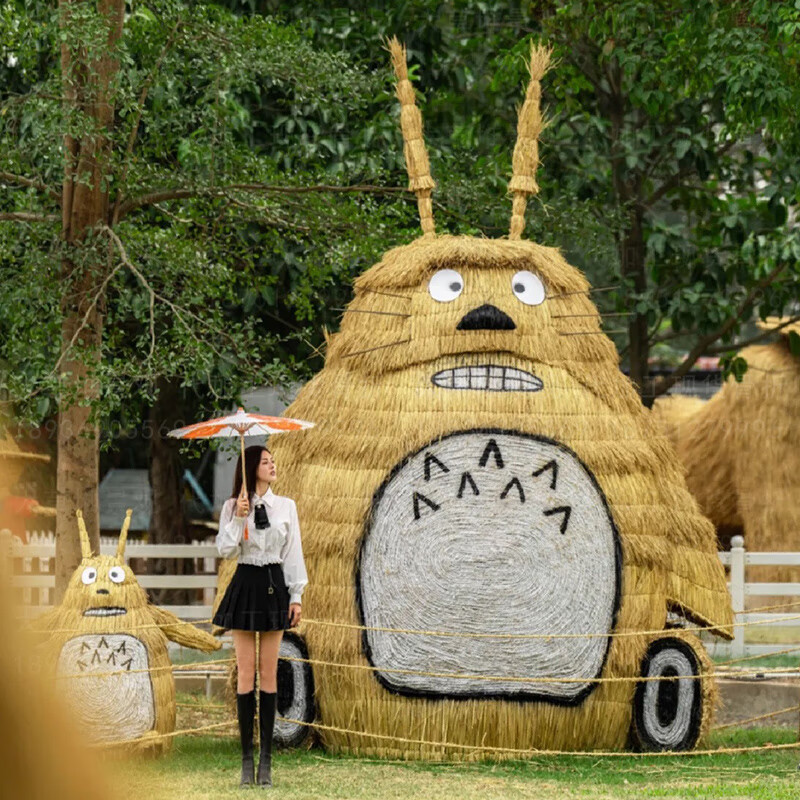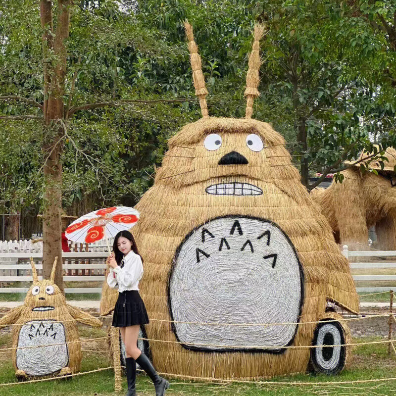 Sheng Longjia Giant Simulated Totoro Animal Cartoon Style Cute Totoro Bus Green Carved Straw Landscape Sculpture Flower Sea Tourism Ding Nephew