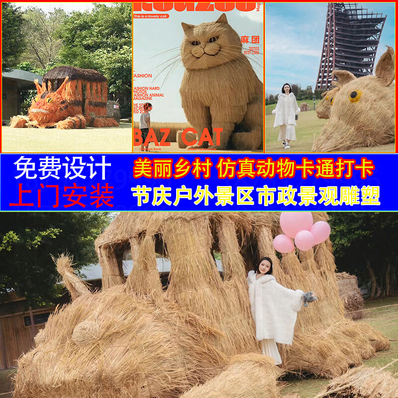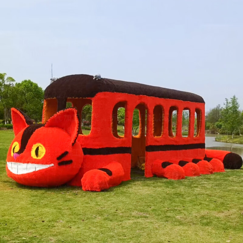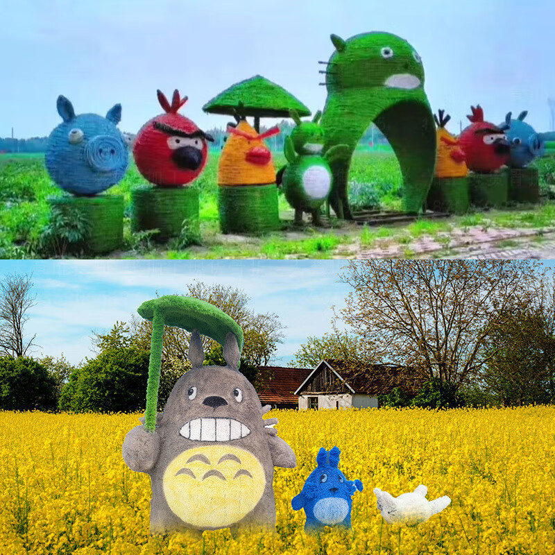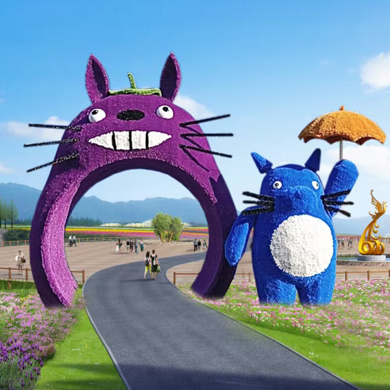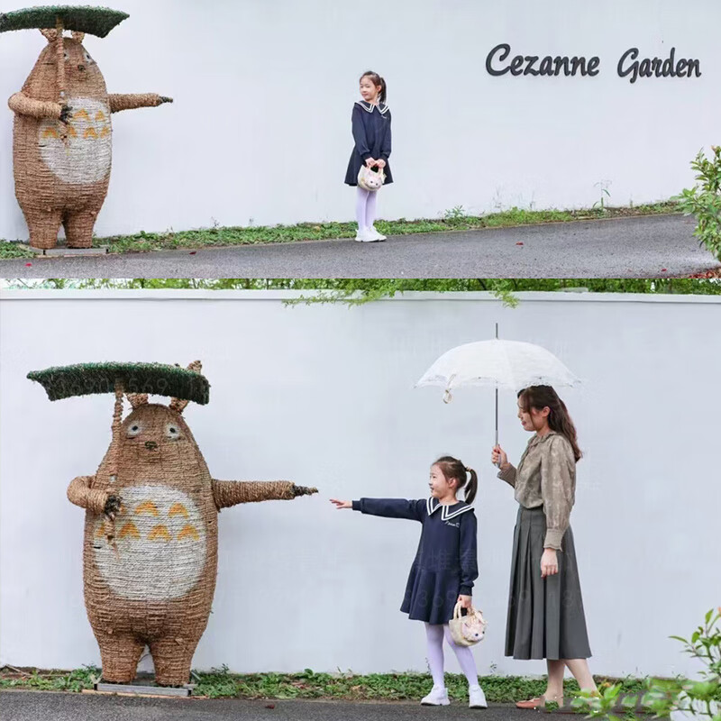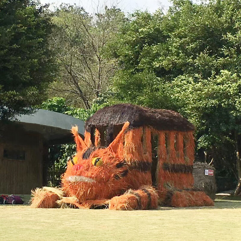 Sheng Longjia Giant Simulated Totoro Animal Cartoon Style Cute Totoro Bus Green Carved Straw Landscape Sculpture Flower Sea Tourism Ding Nephew