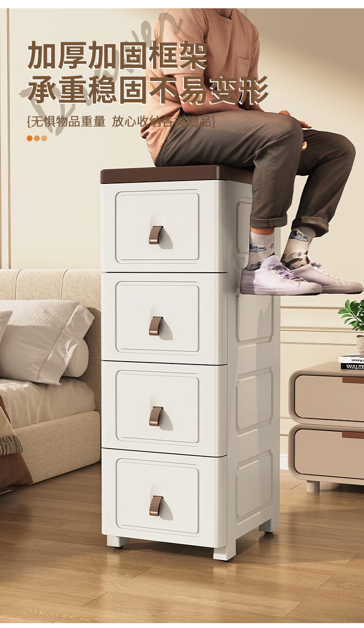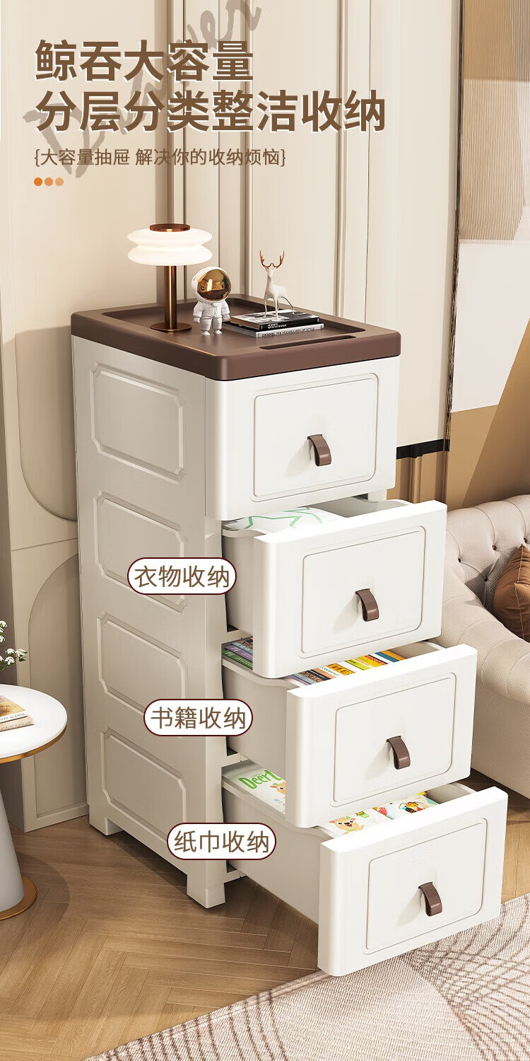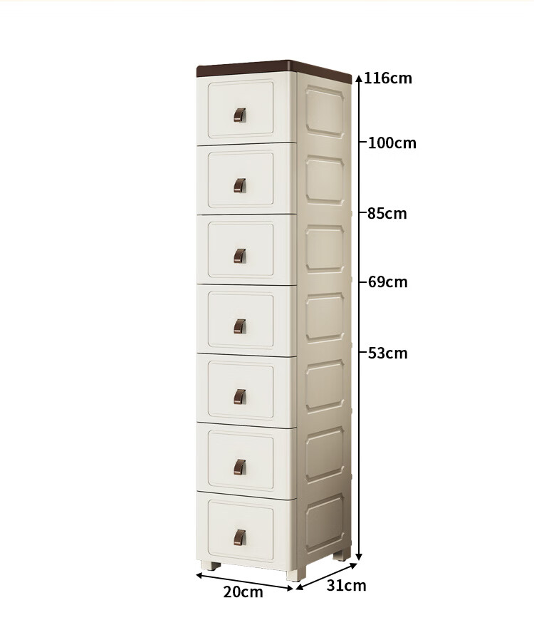 20cm sandwich storage cabinet kitchen drawer-type gap cabinet bathroom waterproof side cabinet multi-layer plastic storage cabinet thickened 24cm width - ivory white 3 layers