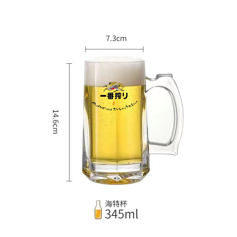 Ichiban-squeezed Japanese-style beer cup, personalized bar-specific cup, Japanese food shop Kirin Ichiban-squeezed thickened glass draft beer cup, Kirin waist-slimming 400ML