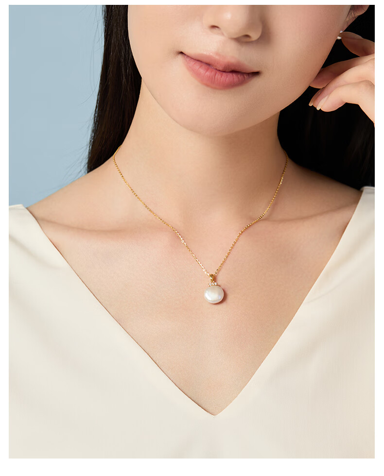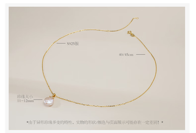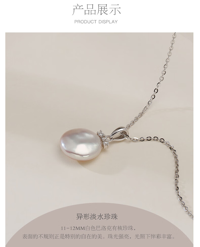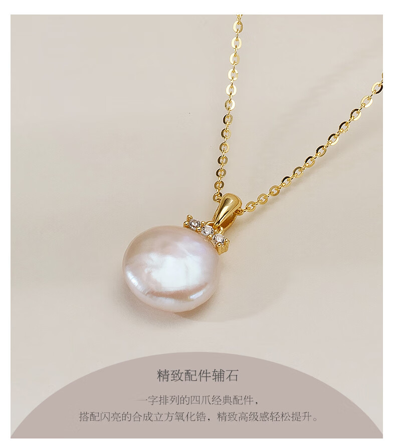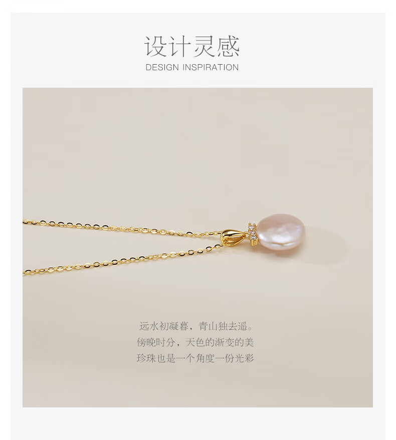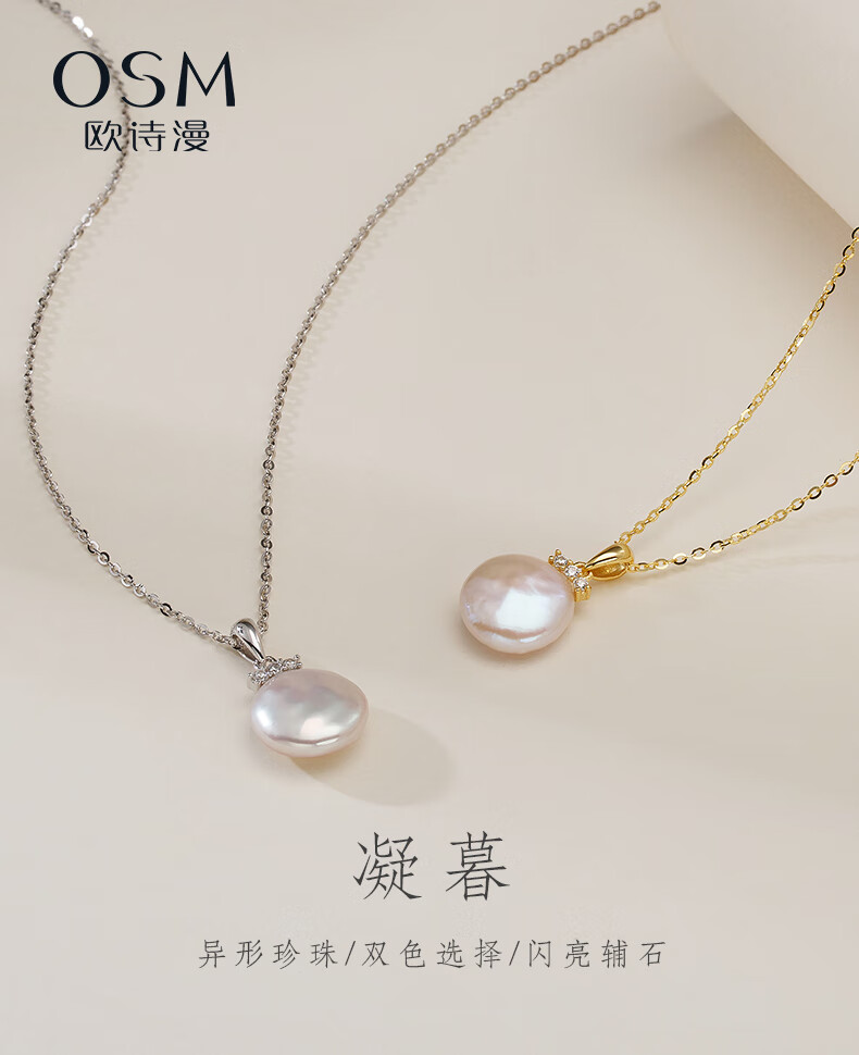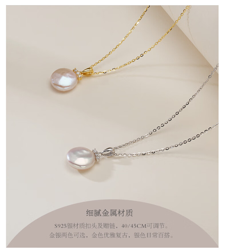 Oshiman Jewelry Freshwater Pearl Pendant Baroque Oblate Necklace Elegant Gold and Silver Two-tone 925 Silver Female Ning Twilight Silver