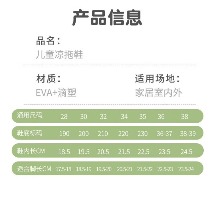 Children's slippers summer for boys and girls, middle-aged and older children's home indoor non-slip comfortable soft-soled parent-child outdoor sandals green 35 inner length 22.5cm suitable for feet 21.5-22cm long