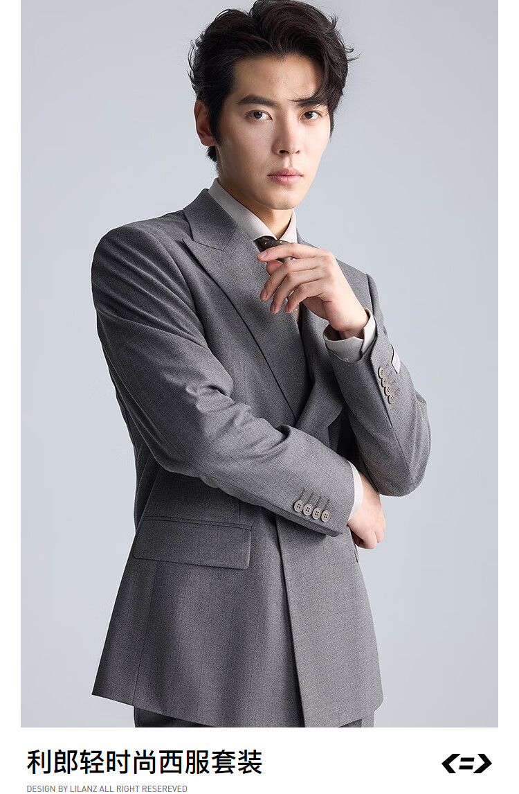 Lilang Youth Business Men's Double-breasted Suit Men's Lapel Lapel Striped Suit Commuting Formal Two-piece Set Navy (2SA) 175A