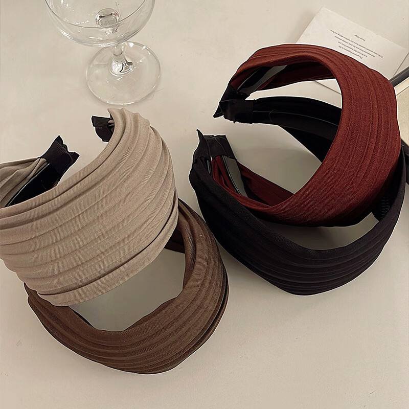 618 Gifts High-end Niche Korean Style Simple Folded Wide-Border Hairpin Headband Women's Retro High Skull Headband Black Striped Folded Headband