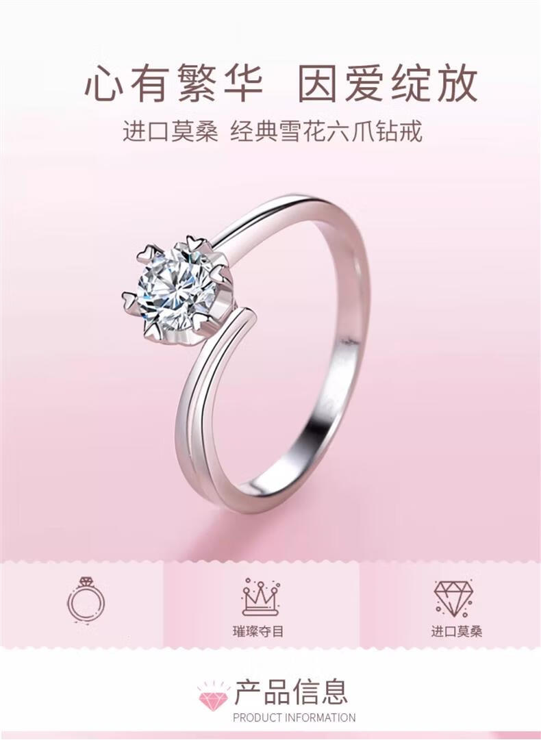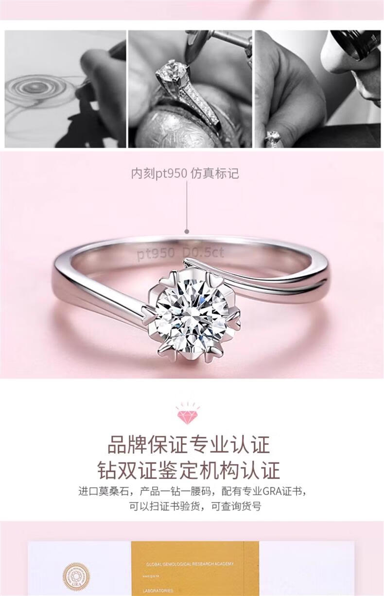 D color moissanite diamond ring 1 carat platinum pt950 ring for male and female couples to get married and propose to their girlfriends, light luxury model - snowflake diamond ring 50 points