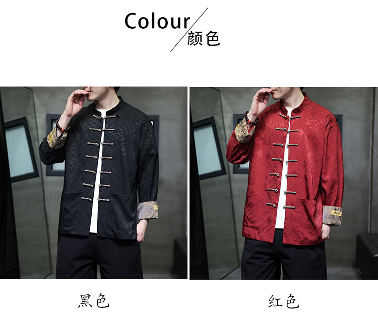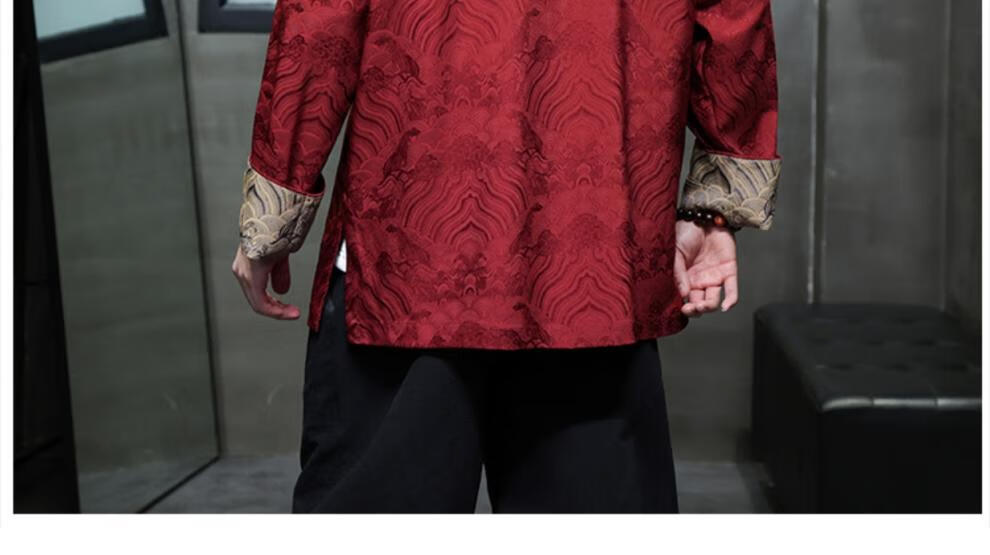 Playboy (PLAYBOY) New Chinese style men's Chinese style red Tang suit shirt jacket spring long-sleeved shirt animal year Hanfu top men's red 3XL 160-180Jin Jin equals 0.5 kg