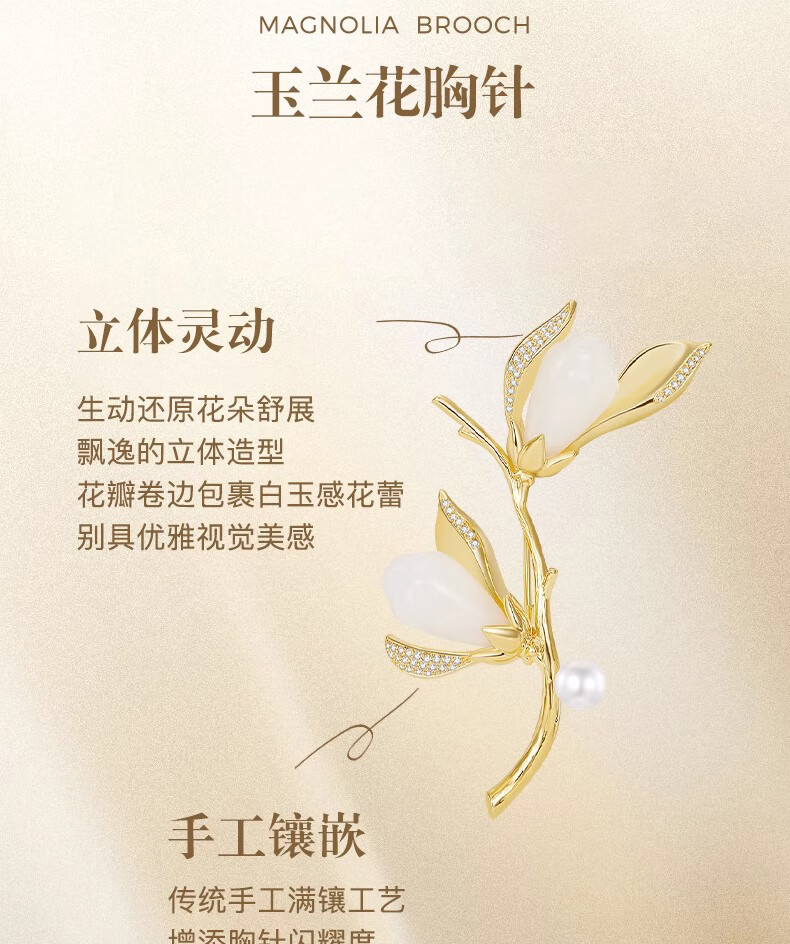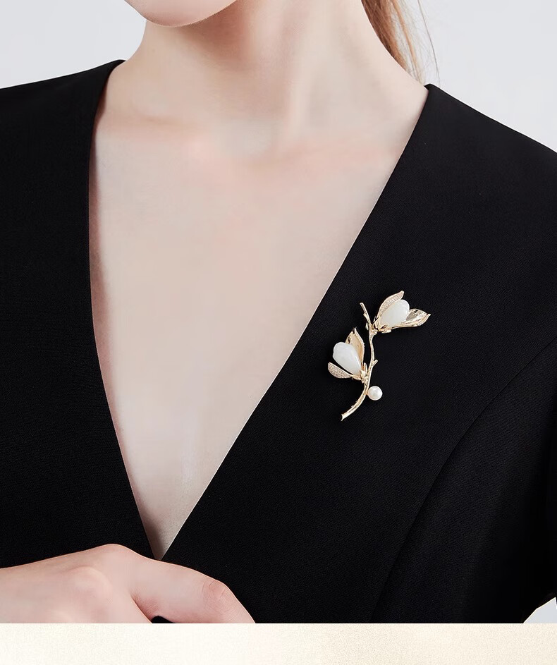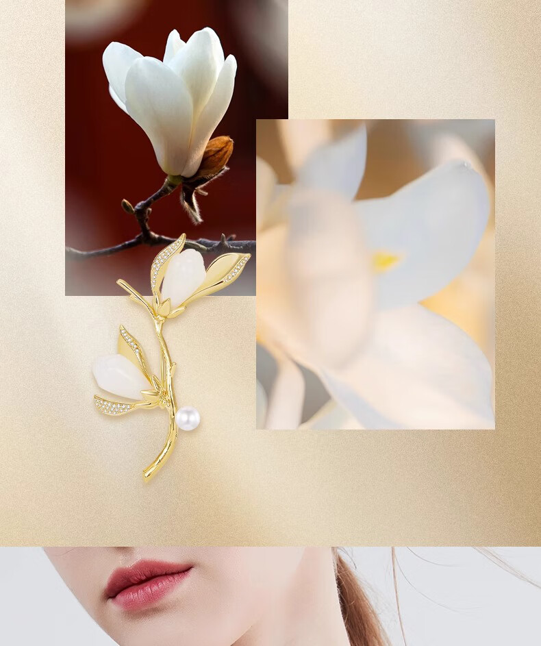 Kamalun (KAMALUN) Magnolia Pearl Brooch Women's Luxury High-end Brand Fashion Suit Sweater Pin Accessory Valentine's Day Gift Magnolia Brooch Three-piece Set