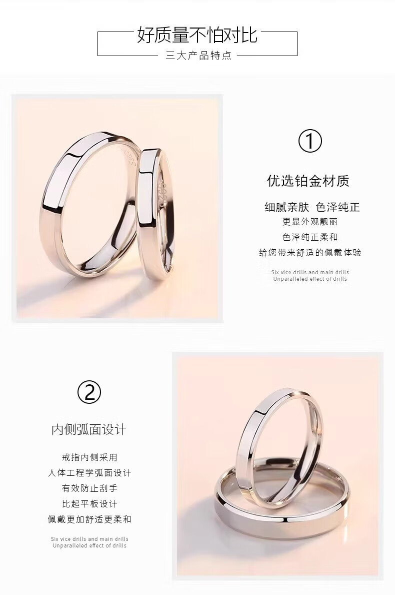 PT950 platinum ring, plain ring, platinum pair of rings for couples, a pair of men's and women's diamond rings, wedding rings, moissanite for girlfriends, simple love, light luxury, 1 single ring for women
