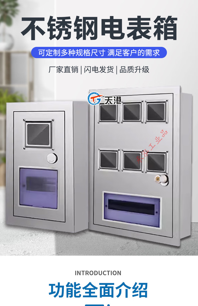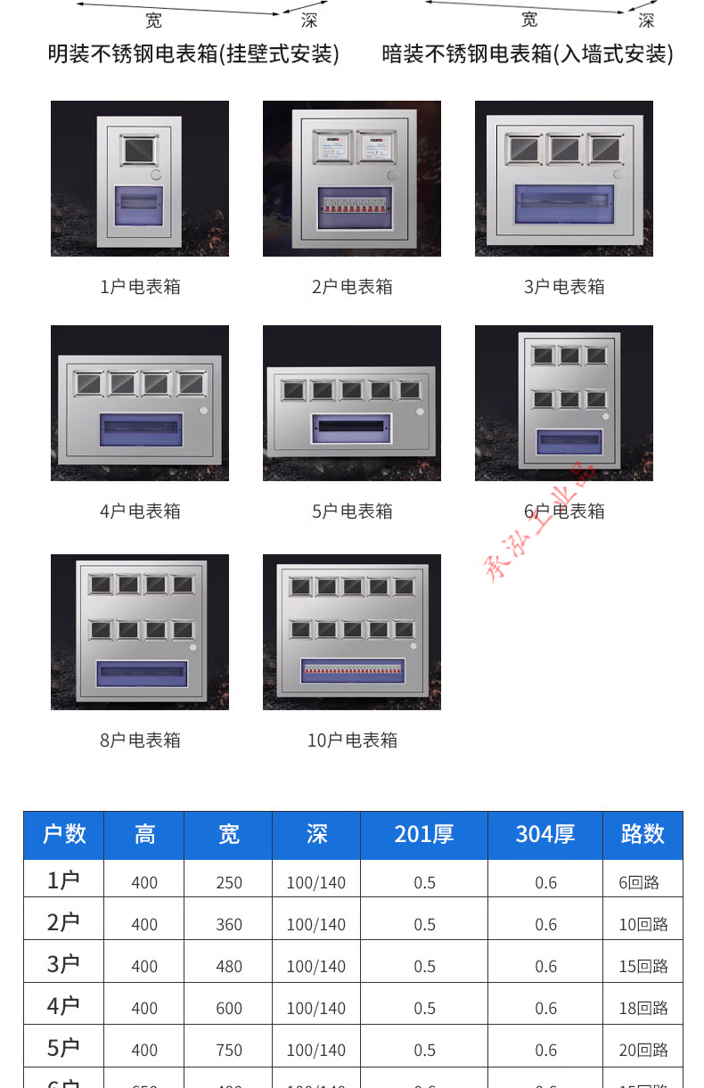 Outdoor stainless steel meter box household 220V single-phase meter box 304/201 exposed and concealed embedded 201 stainless steel exposed meter box for 1 household (100 deep)