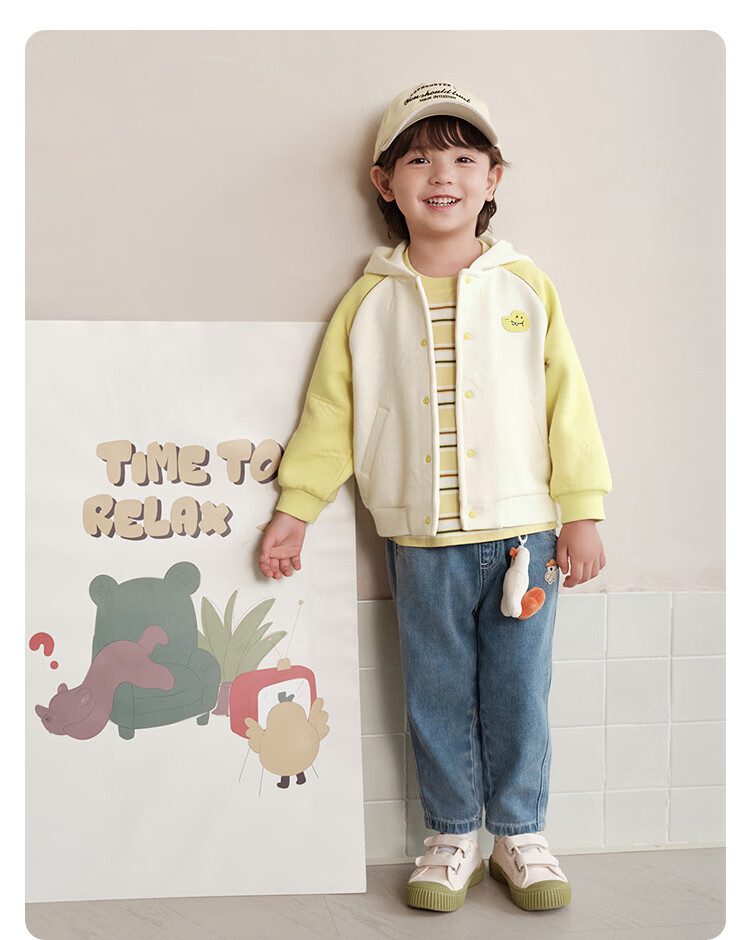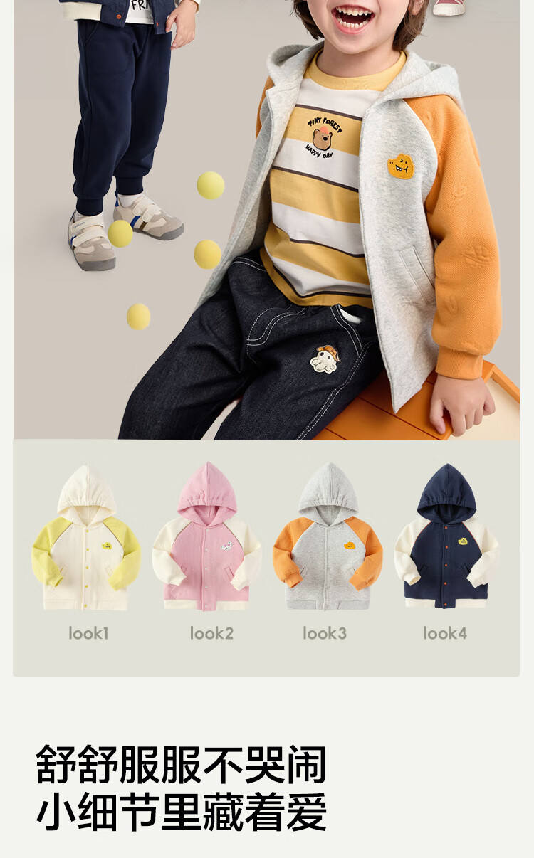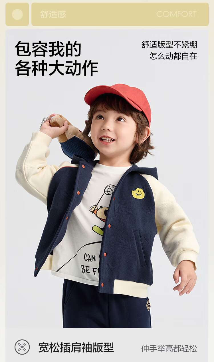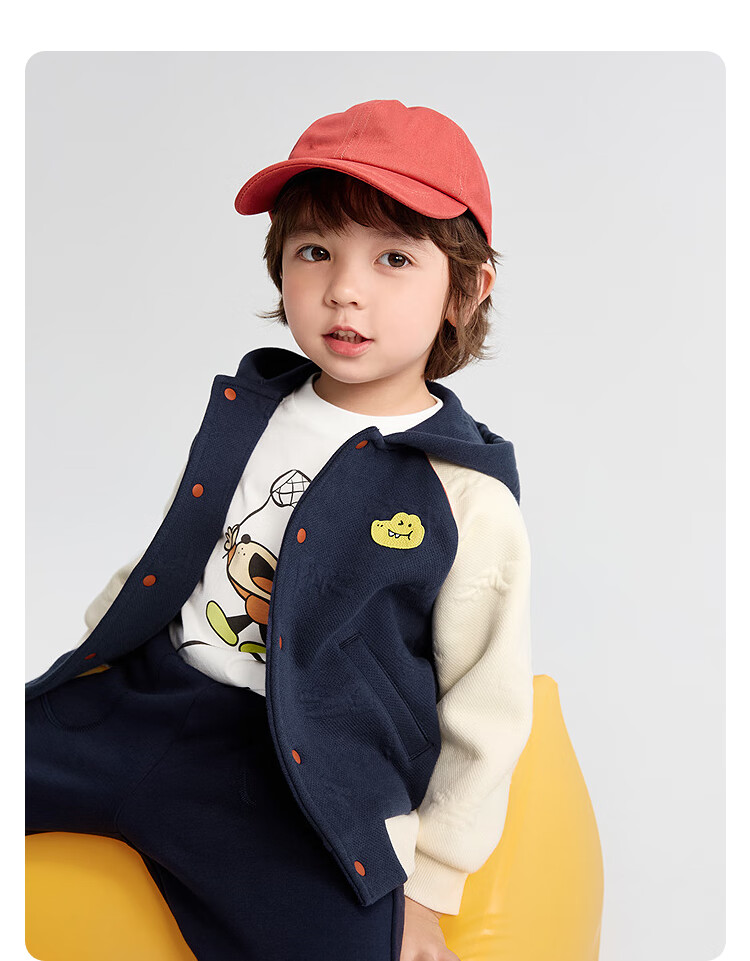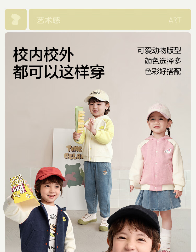 Balabala children's clothing children's jackets boys and girls tops 2025 new spring and autumn clothing retro baseball uniforms contrasting sports campus dark blue 80821-208325105210 120