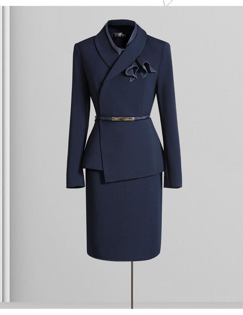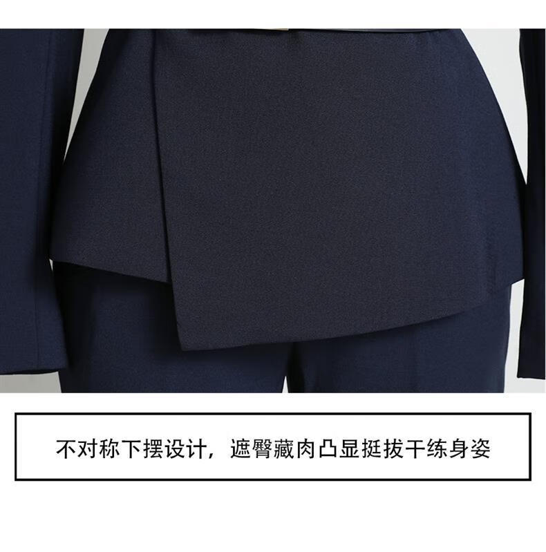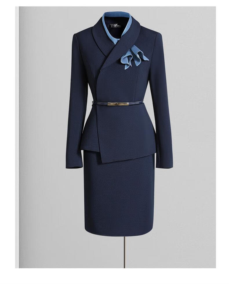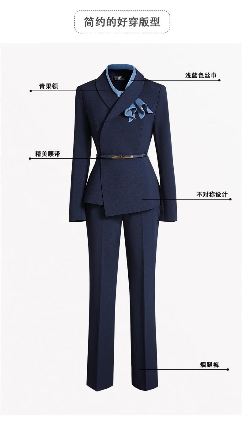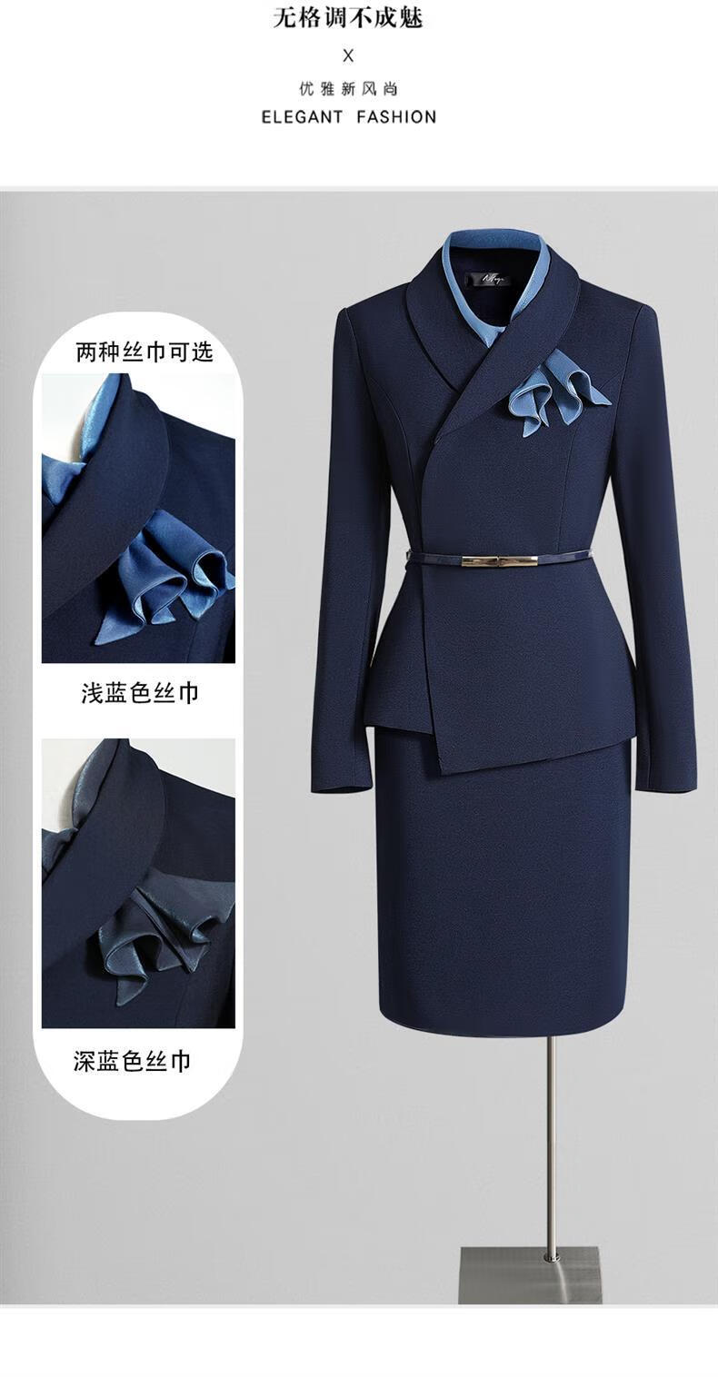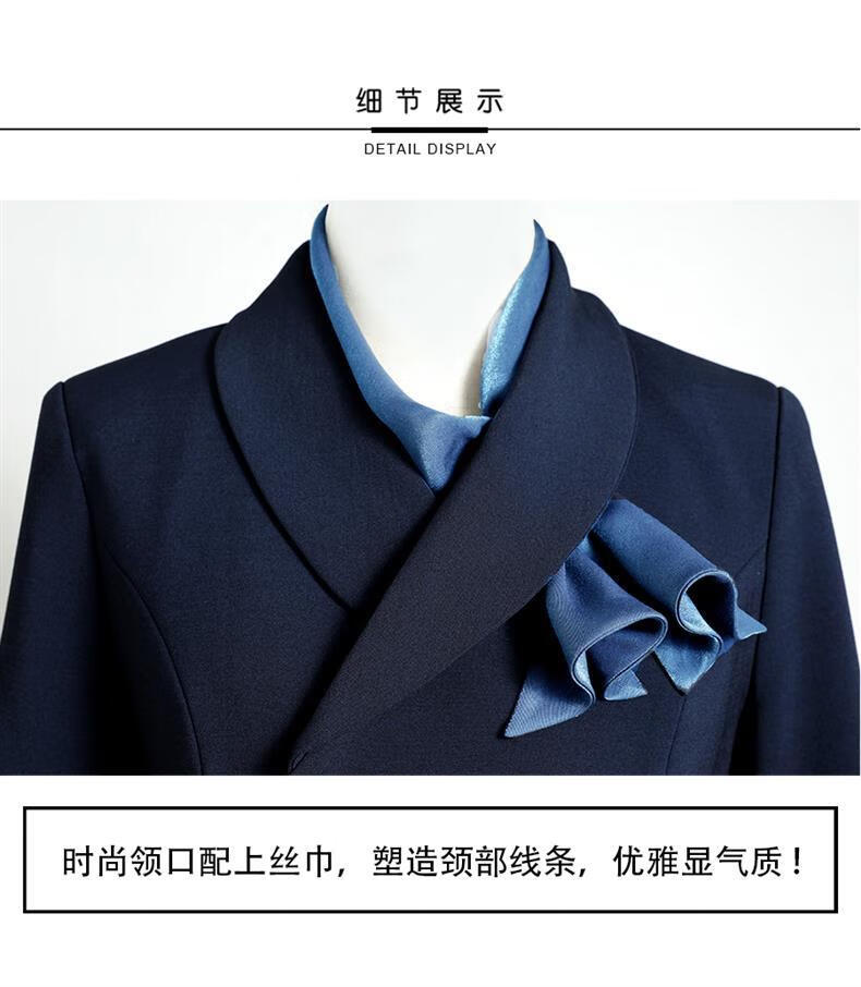 High-end professional suit suit, feminine fashion, case customer service, beauty salon work clothes, hotel front desk work clothes, navy suit + skirt, light blue silk scarf, L recommended 108-117 Jin Jin equals 0.5 kg