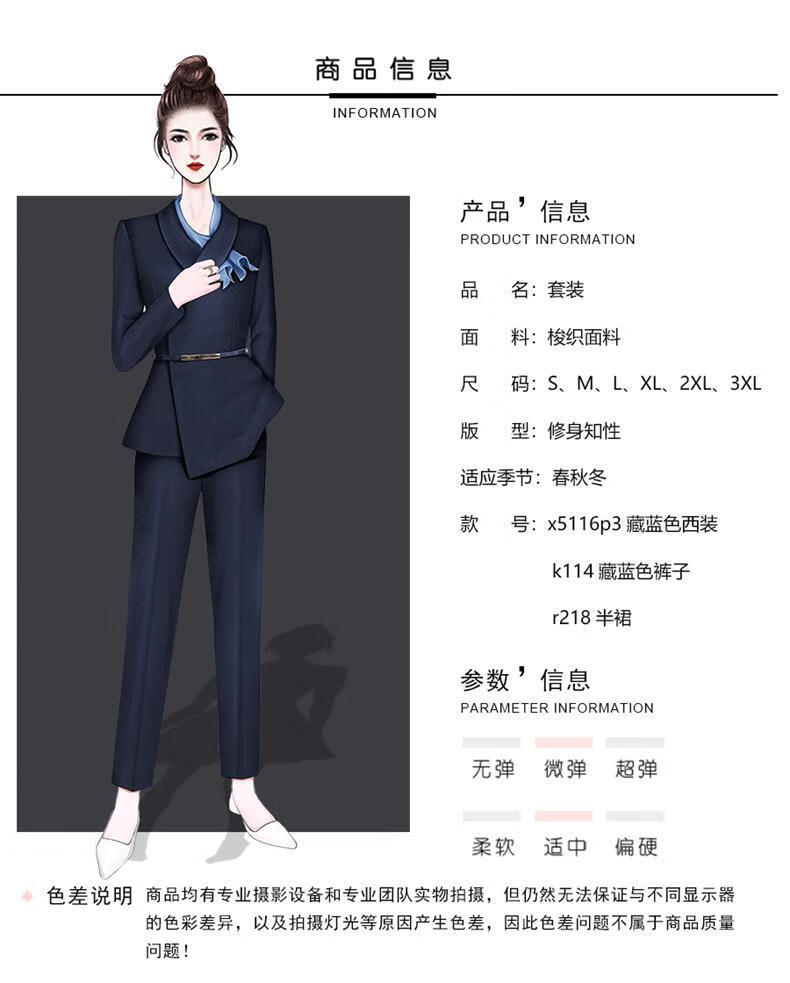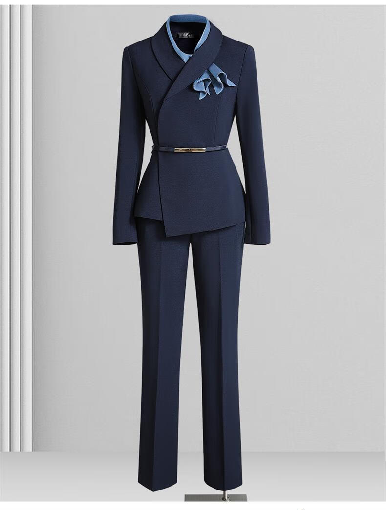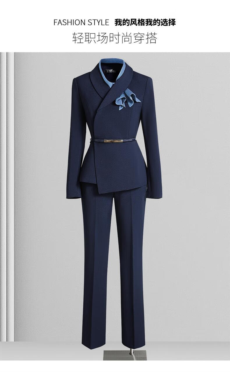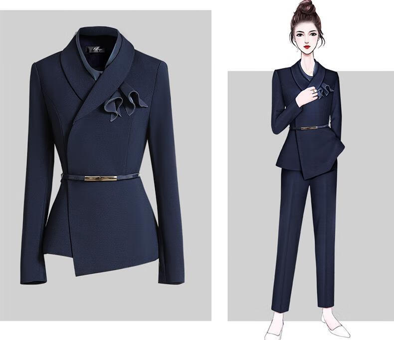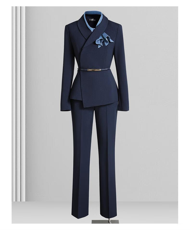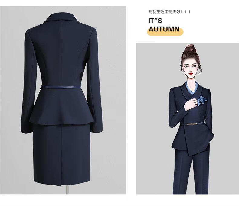 High-end professional suit suit, feminine fashion, case customer service, beauty salon work clothes, hotel front desk work clothes, navy suit + skirt, light blue silk scarf, L recommended 108-117 Jin Jin equals 0.5 kg