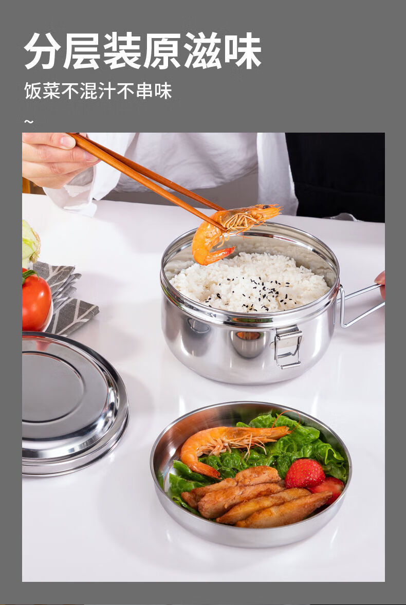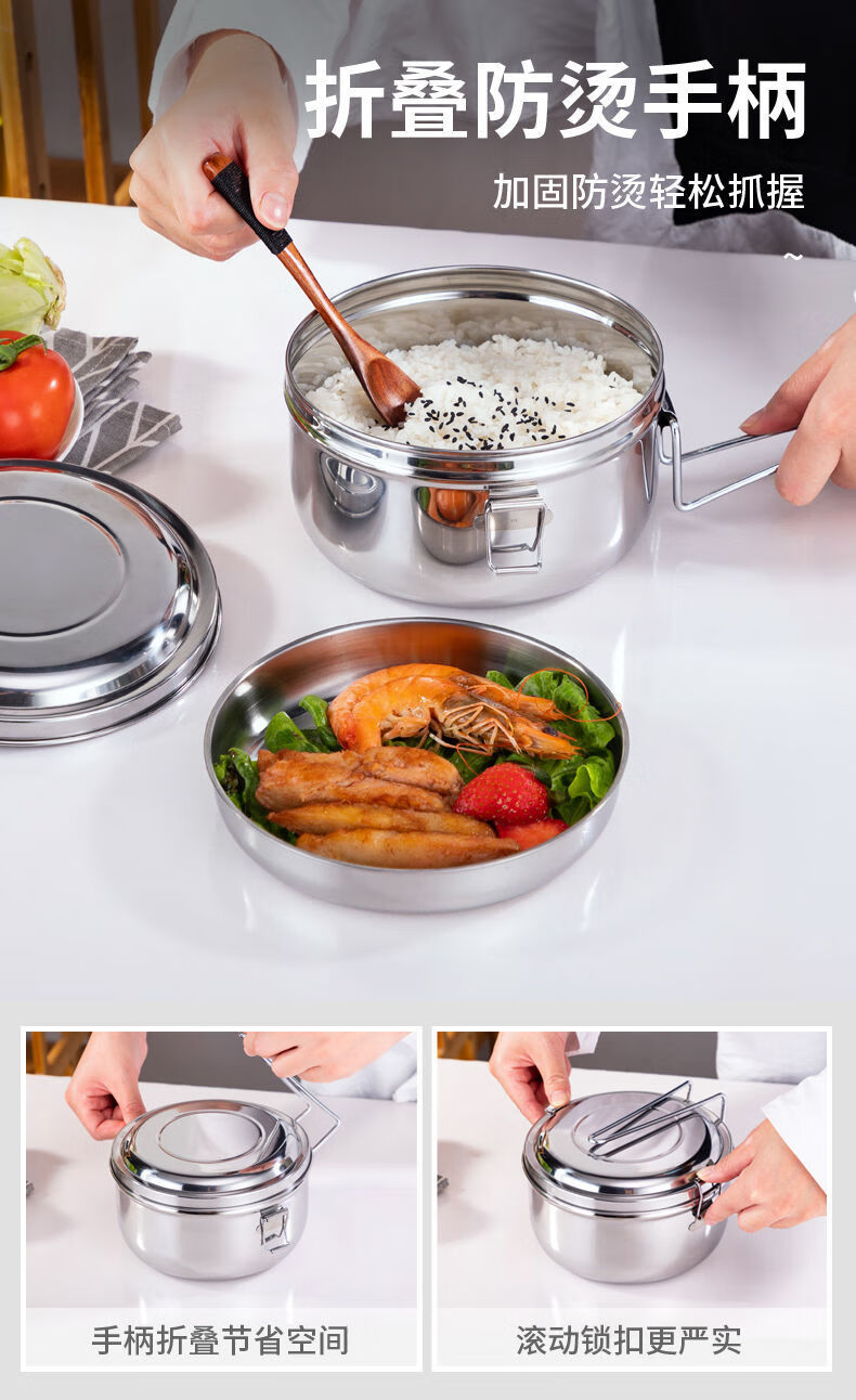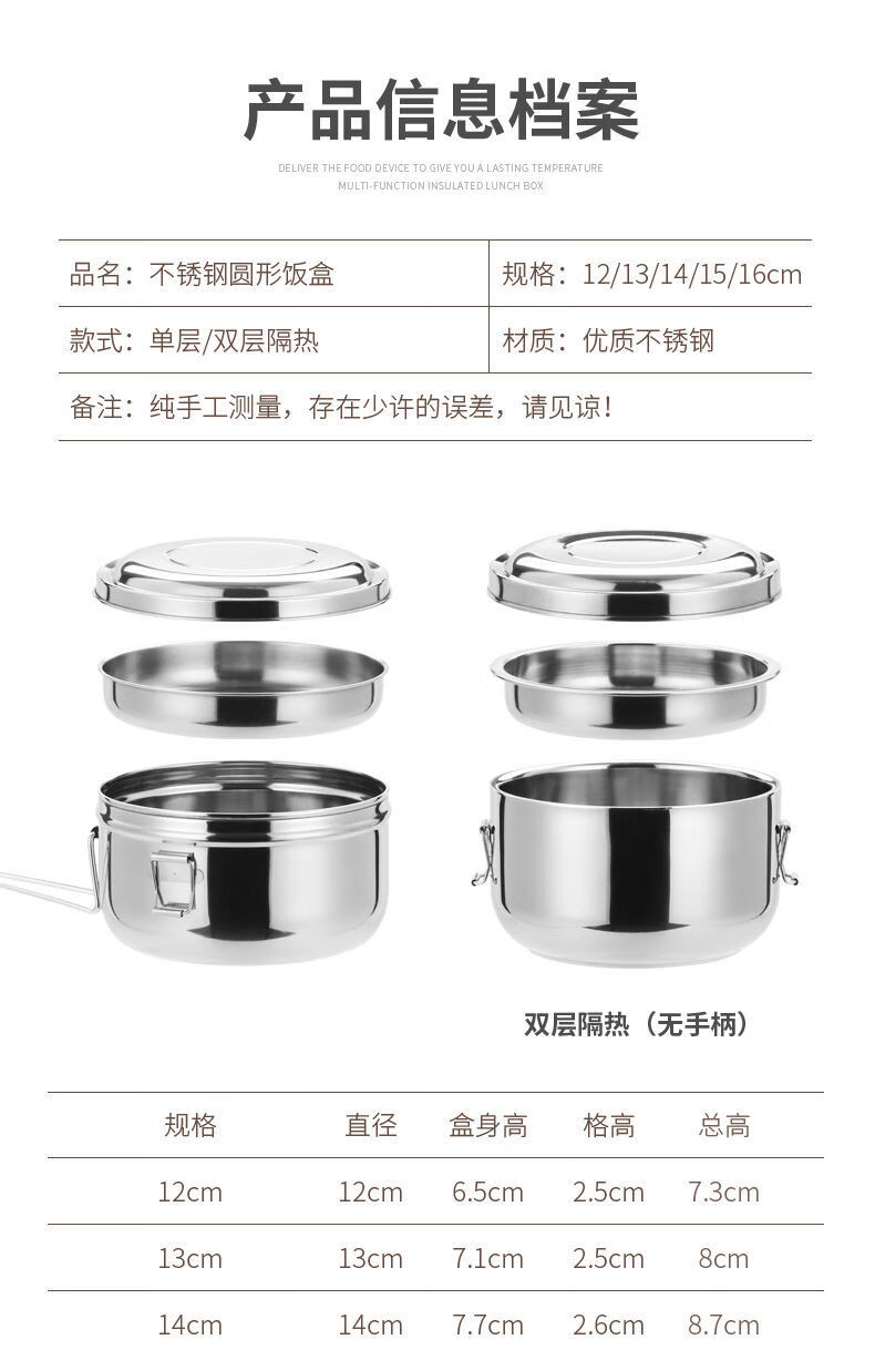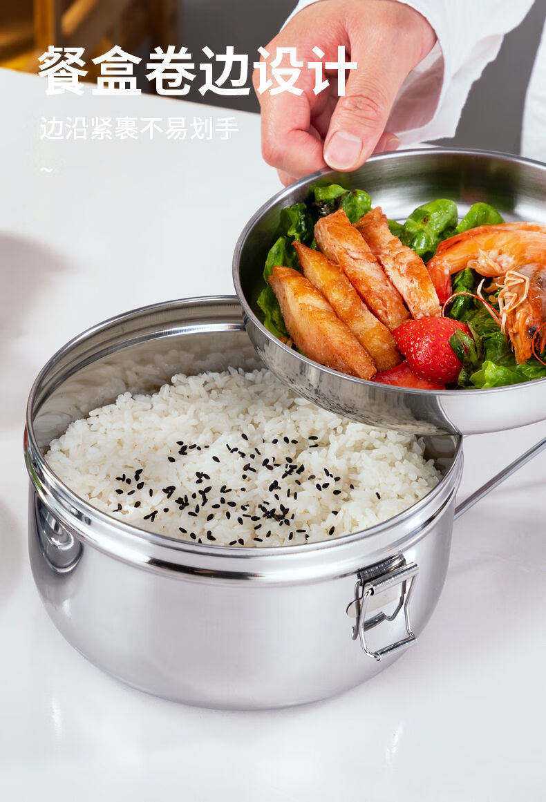 Enshousu stainless steel lunch box steamed rice bowl round thickened double-layer lunch box for students and adults in canteen extra small 12cm + vegetable grid