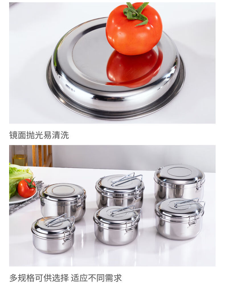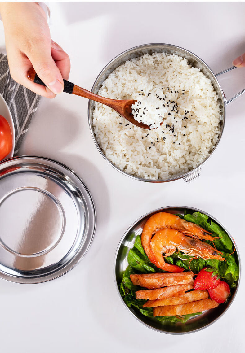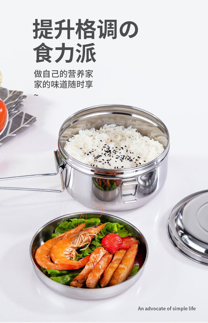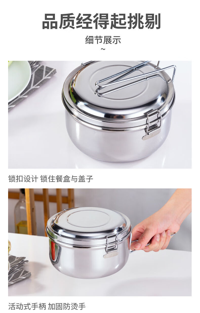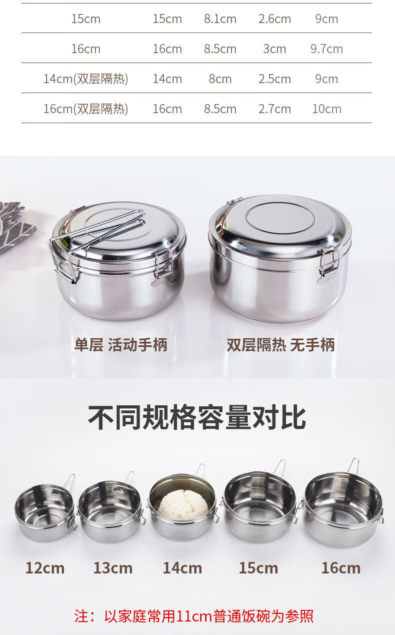 Enshousu stainless steel lunch box steamed rice bowl round thickened double-layer lunch box for students and adults in canteen extra small 12cm + vegetable grid