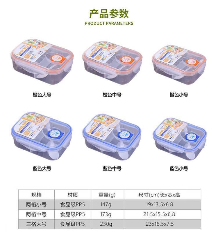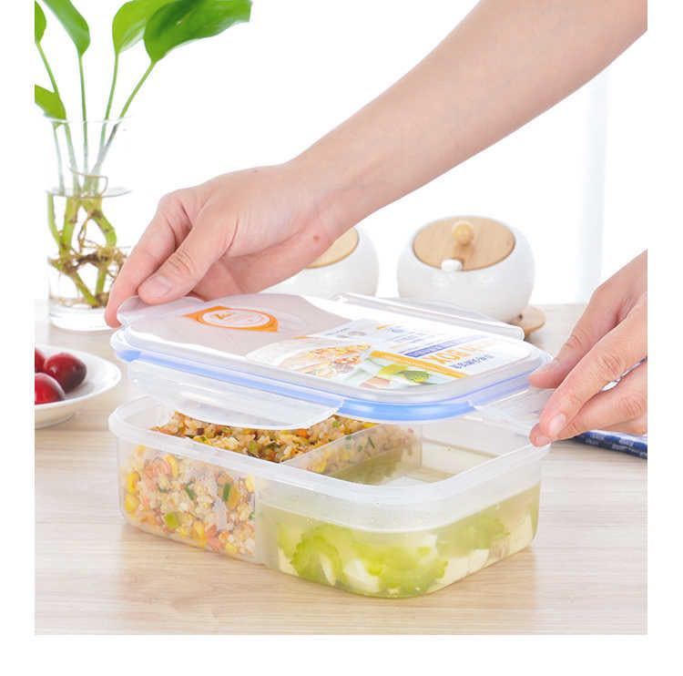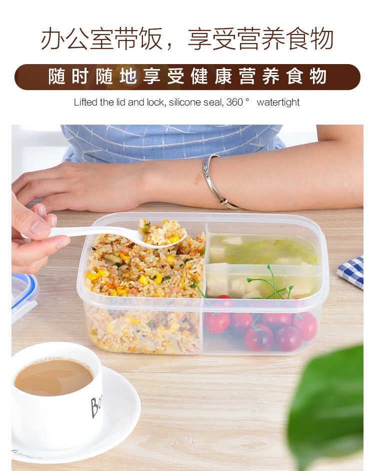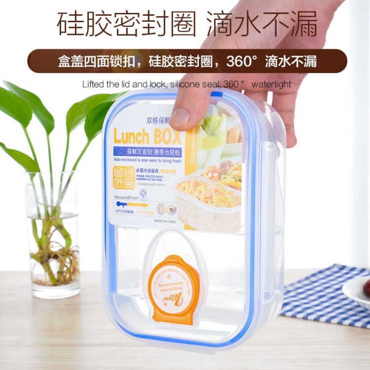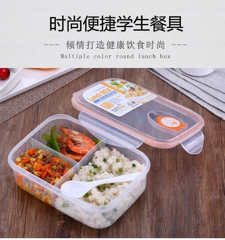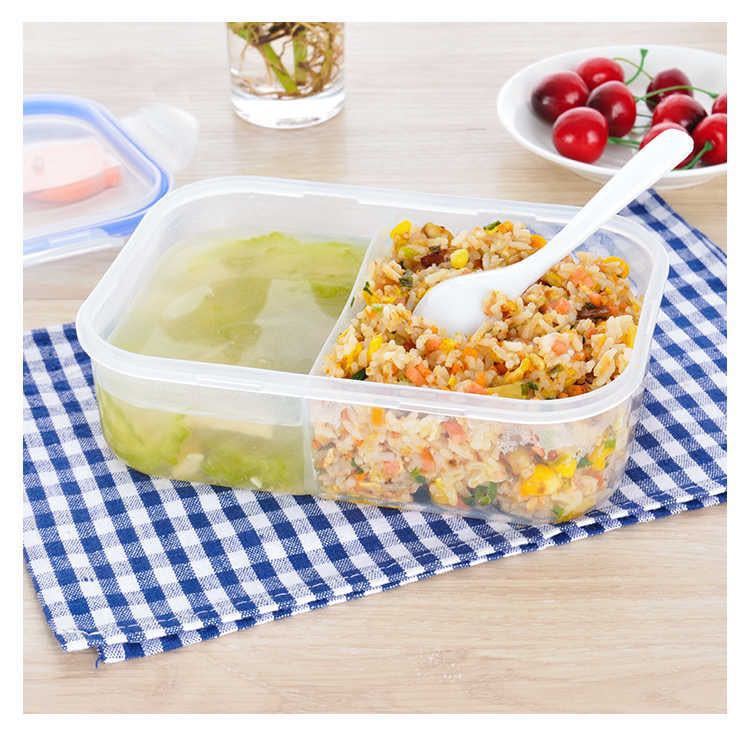 Enshousu compartmented plastic lunch box with lid for office workers with lid, microwave crisper lunch box, sealed canteen lunch box, light blue 800 ml. Two compartments for students, free spoon (food material) plastic PP lunch box
