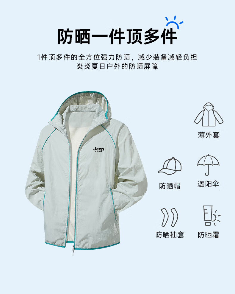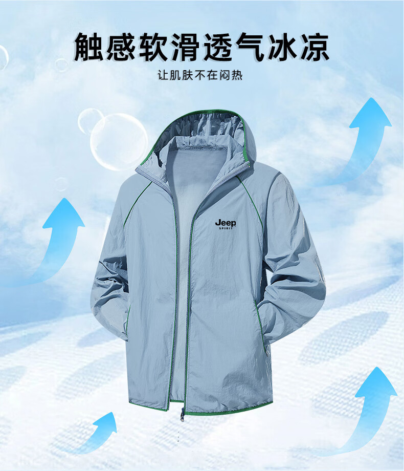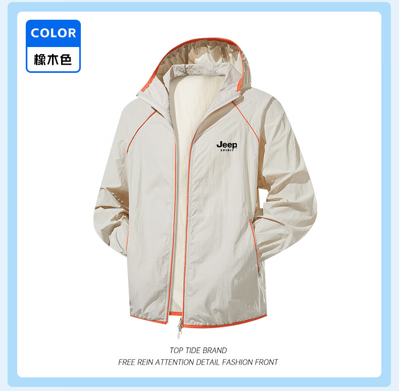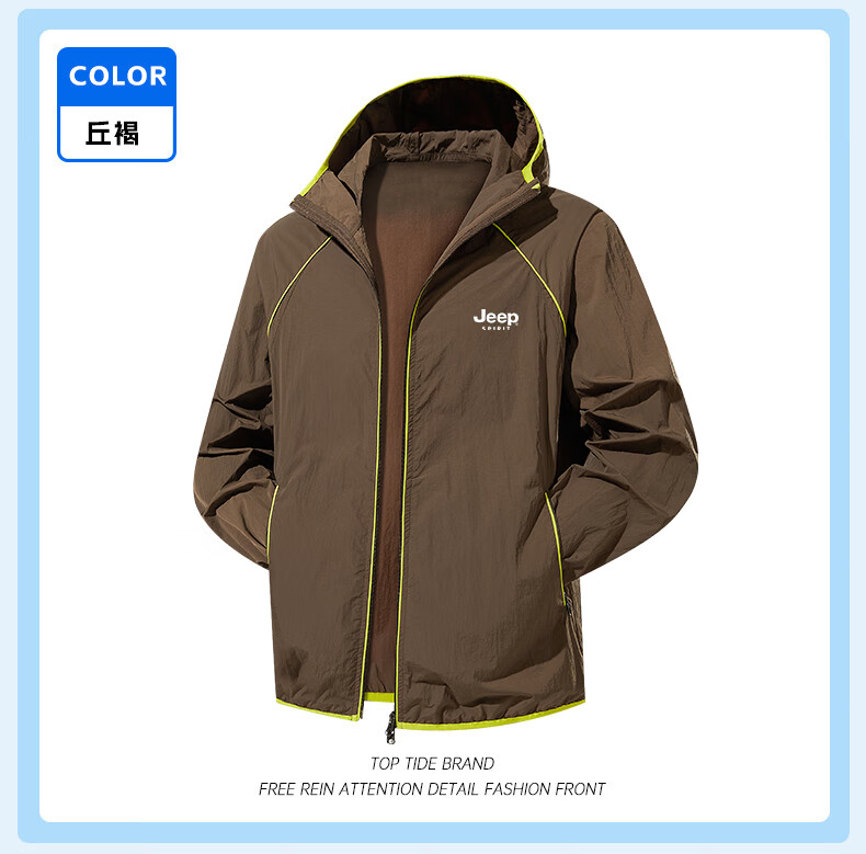 JEEP SPIRIT Jeep sun protection clothing men's long-sleeved lightweight jacket summer cool, comfortable and breathable outdoor sports cycling clothing oak color L (recommended 120-140Jin Jin equals 0.5 kg)