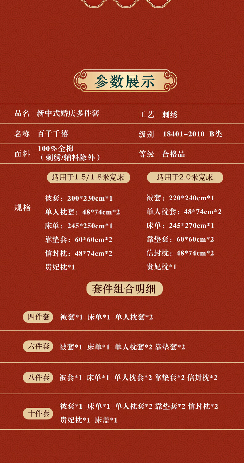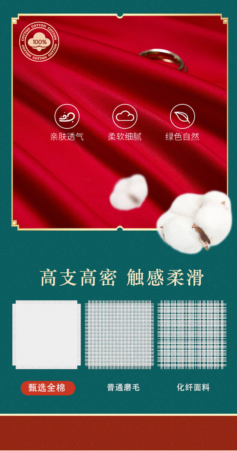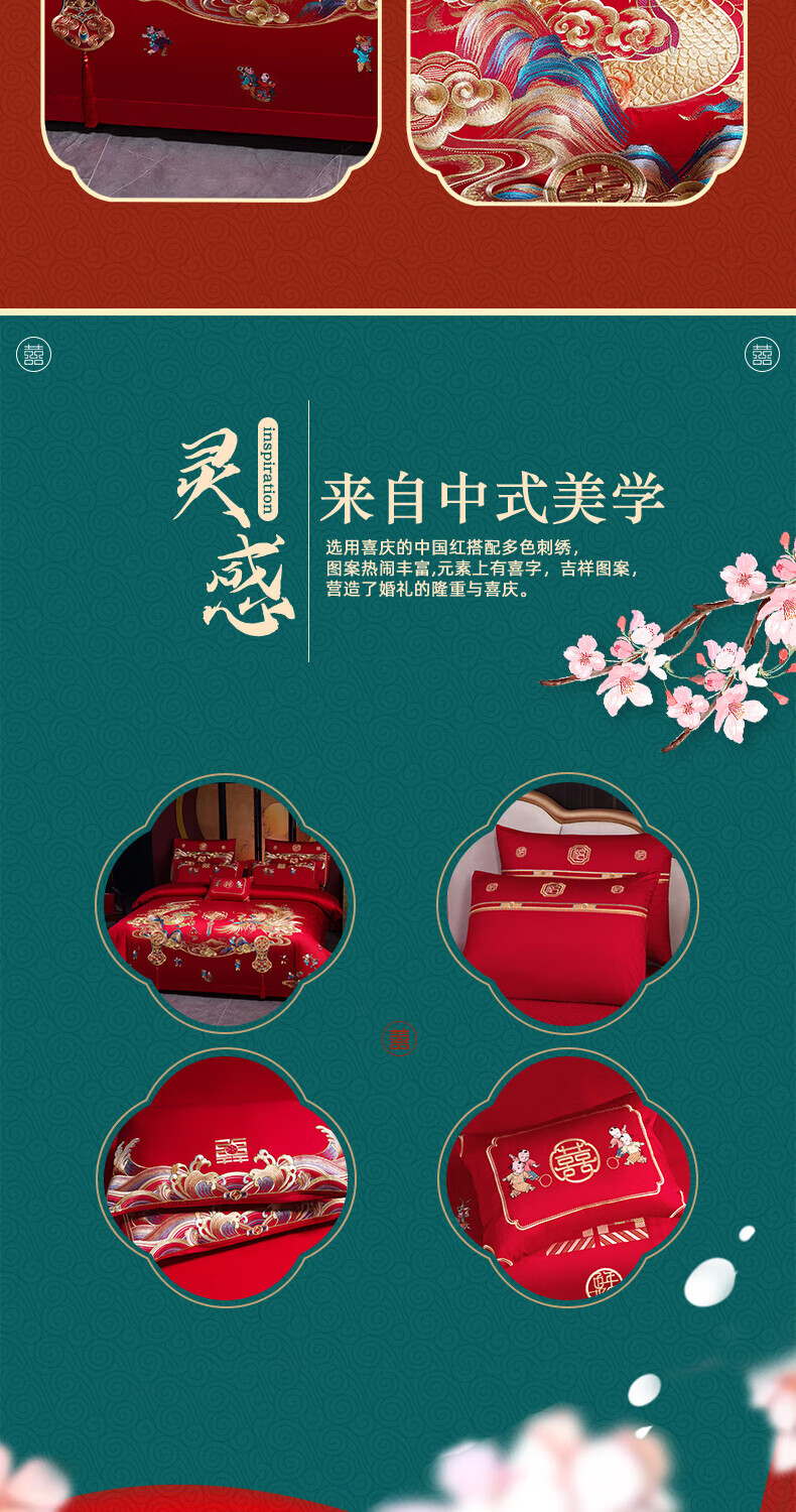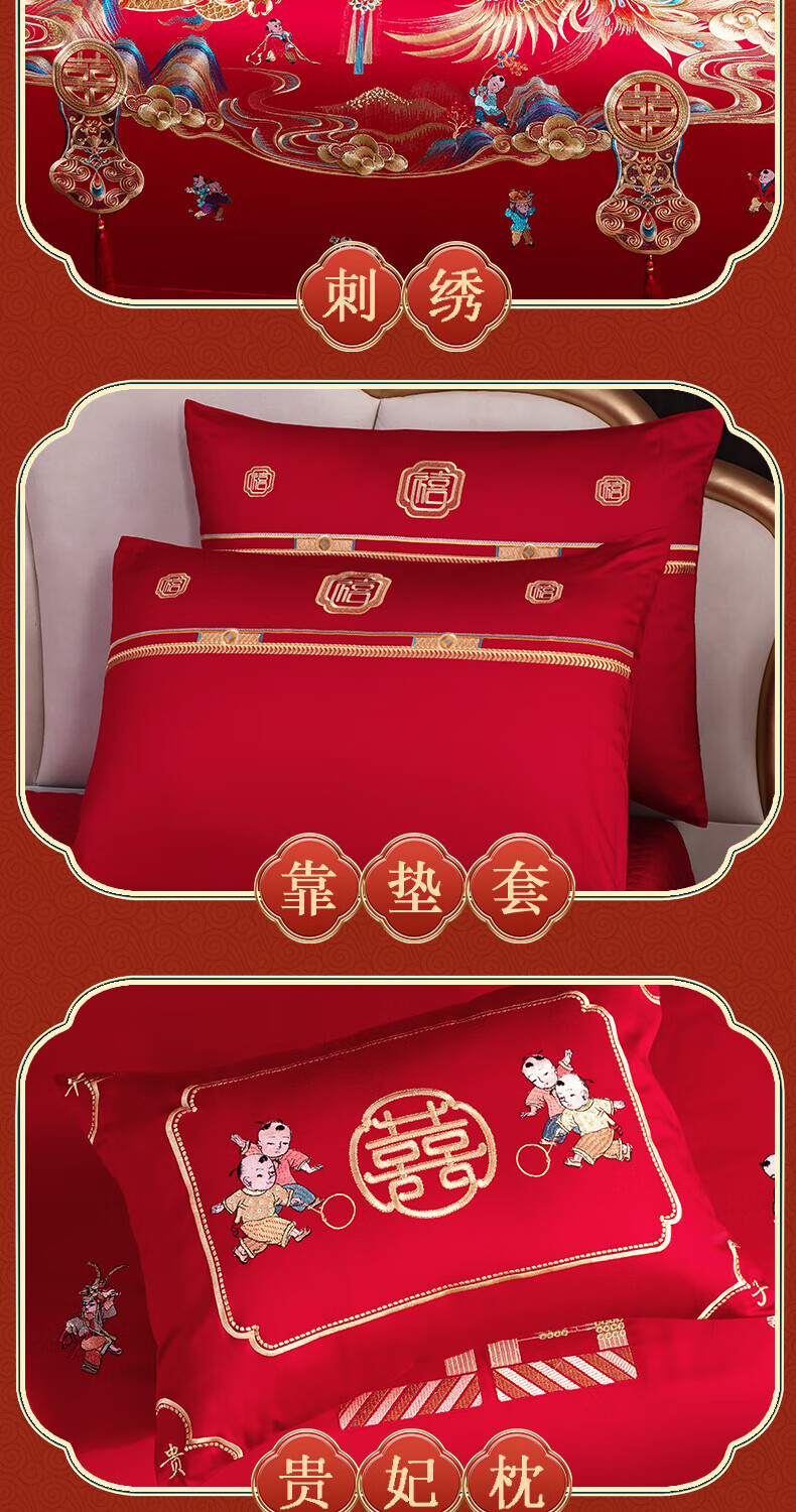 200 count Xinjiang long-staple cotton wedding four-piece set with big red dragon and phoenix pure cotton embroidery 100% cotton wedding newlyweds Baizi Millennium 100% cotton bed sheet style 1.8m four-piece set 100% cotton