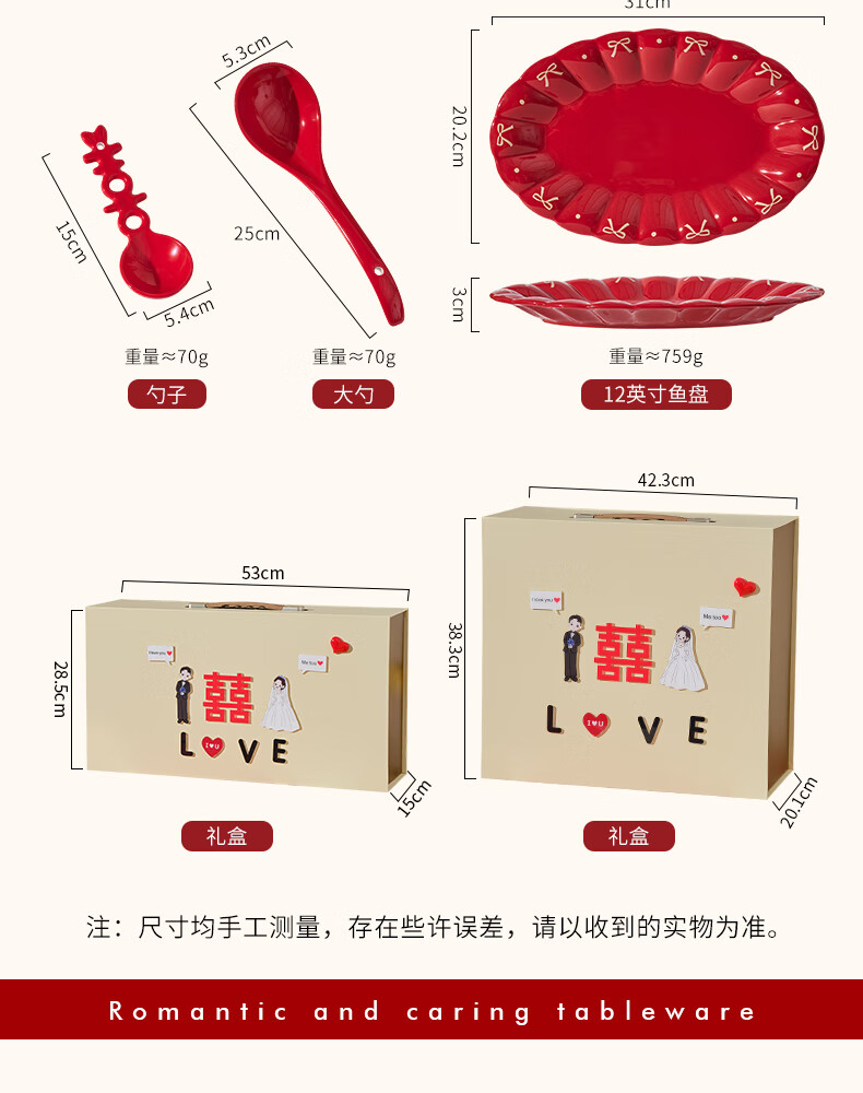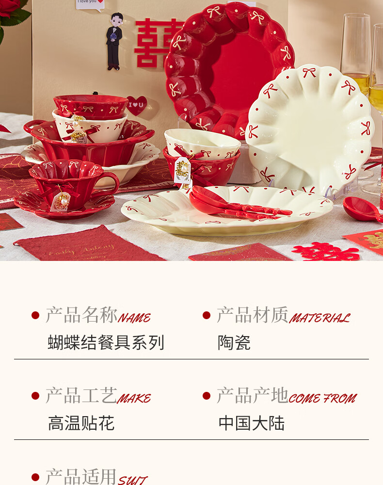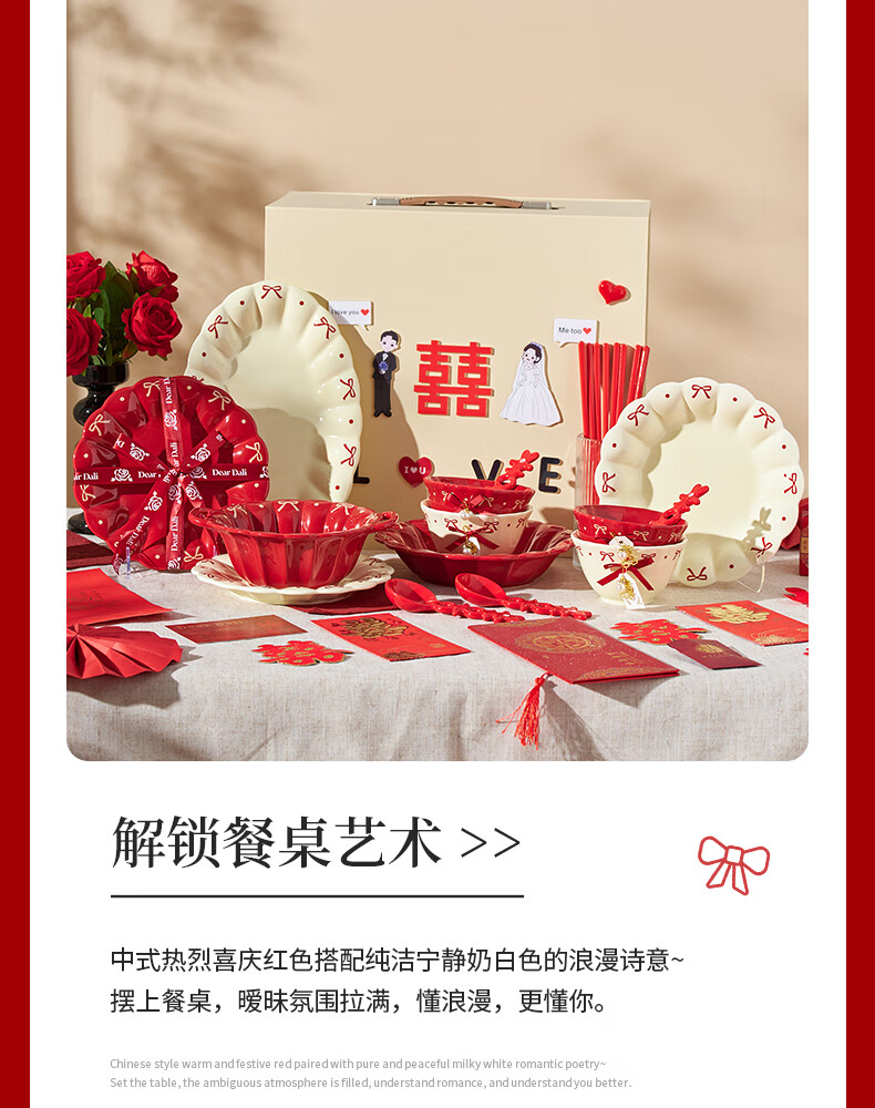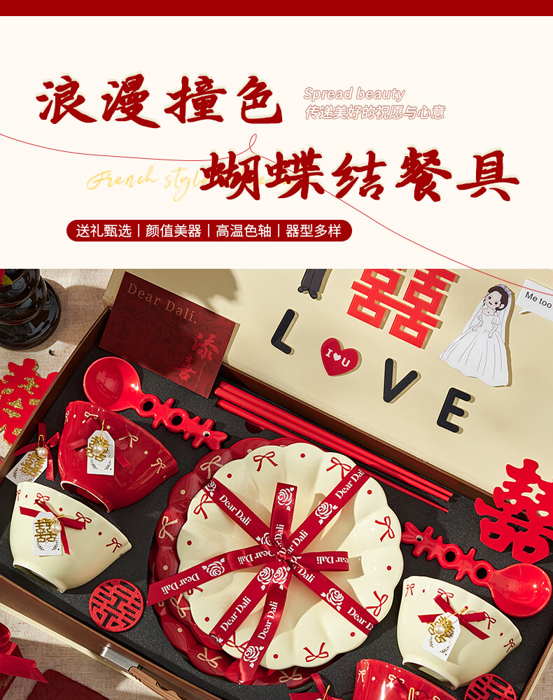 DearDali wedding gift tableware set for best friends, bride and groom, engagement dowry, practical items, high-end tableware, mixed color bowls, cups and plates for two, DIY gift box (fast delivery next day) 10-piece set