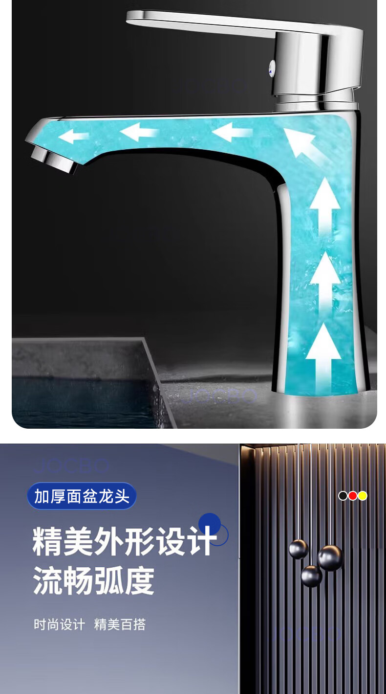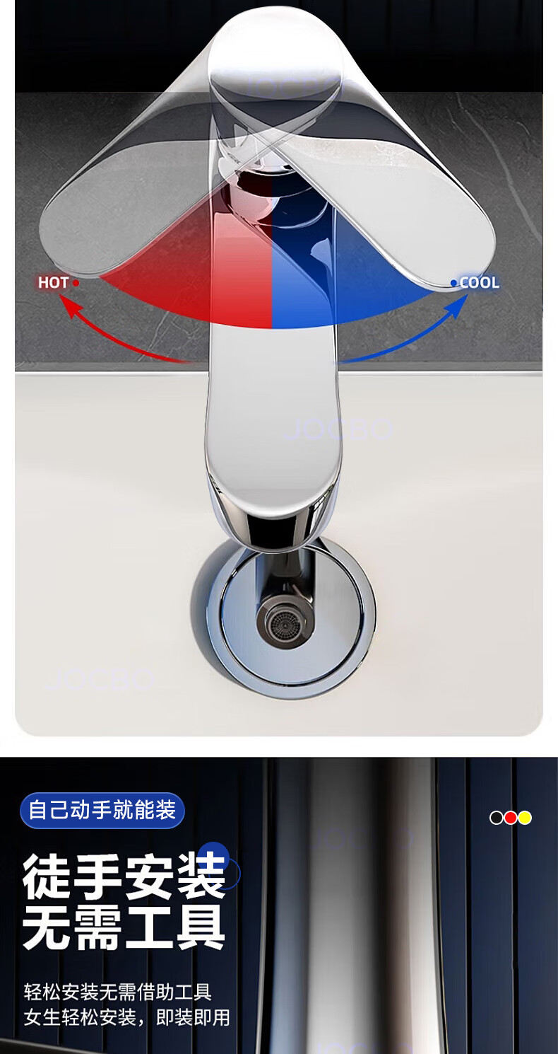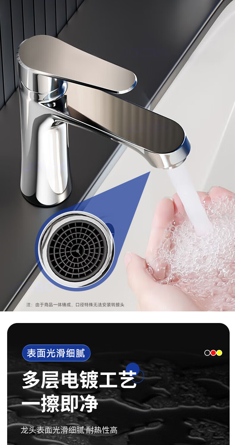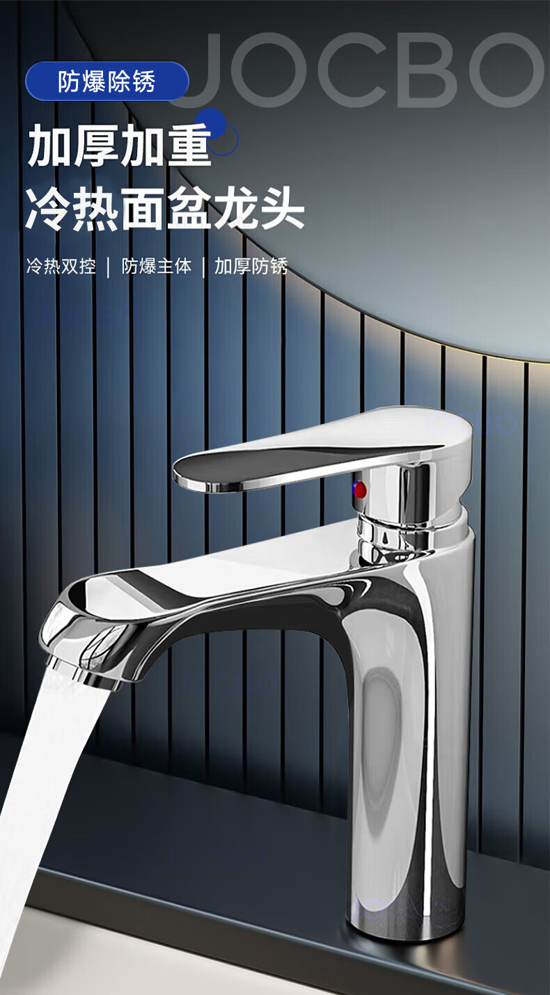 JOCBO Germany basin faucet full copper body bathroom cooler and heater two-in-one wash basin faucet basin faucet full copper thickening bright silver free 80CM original water inlet pipe*2