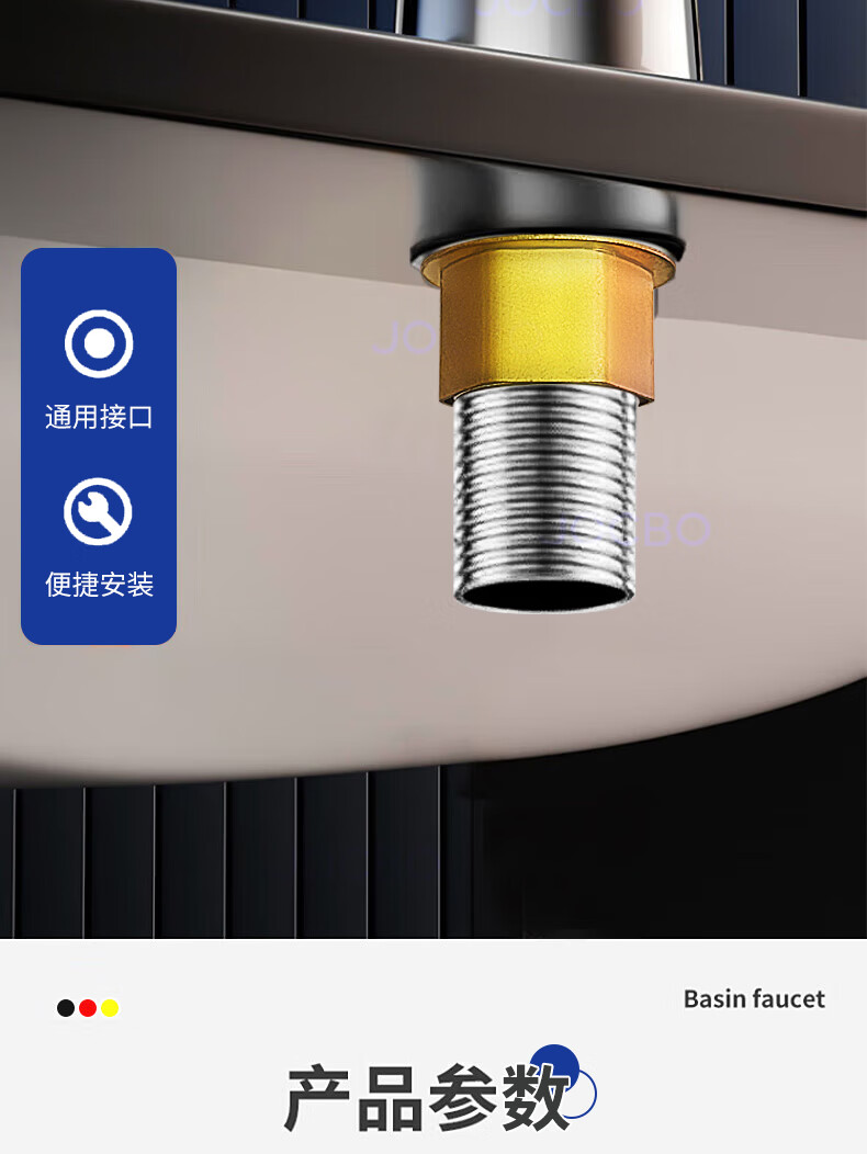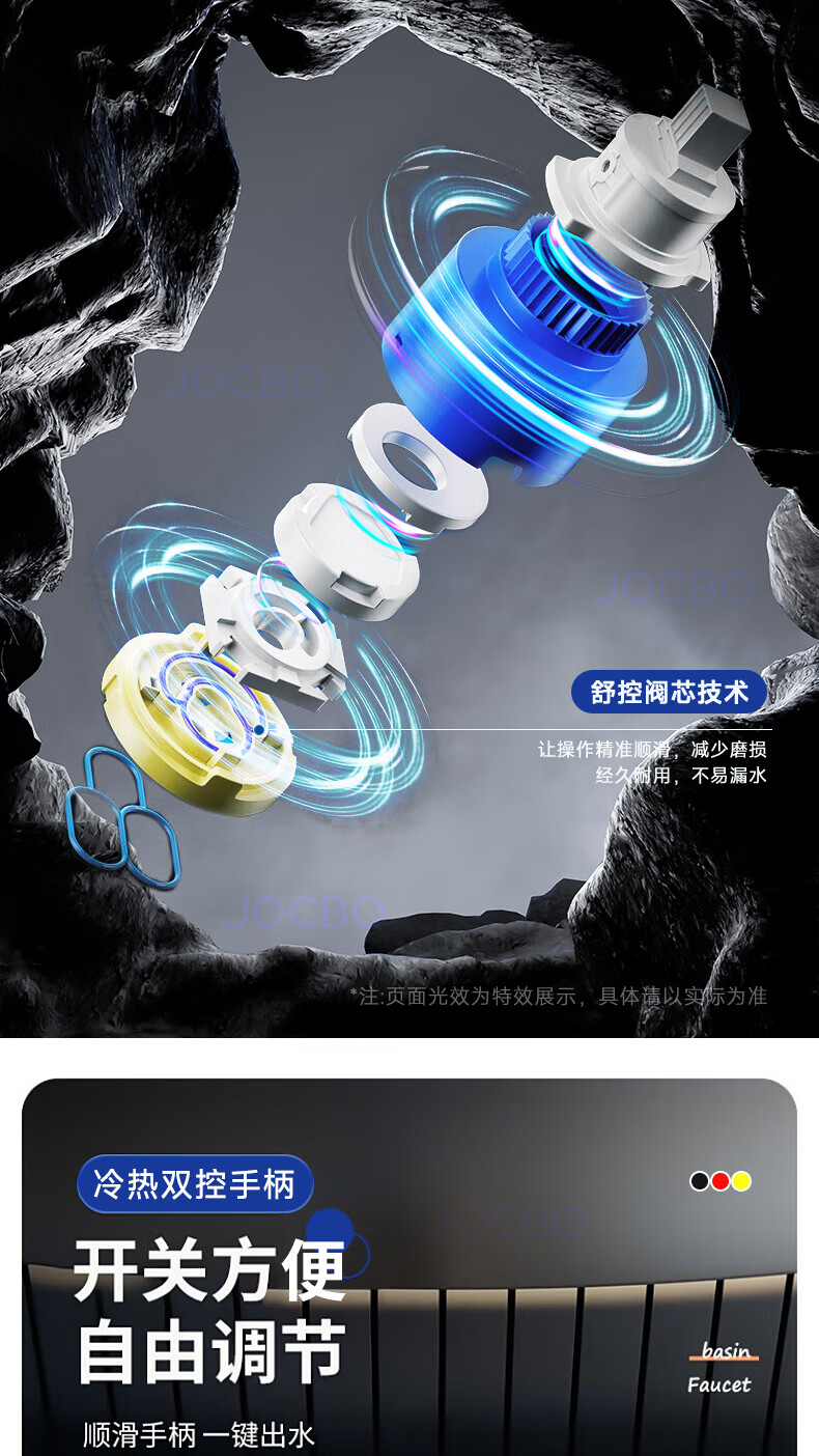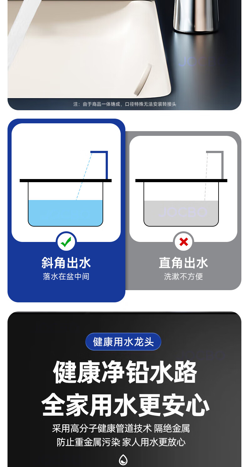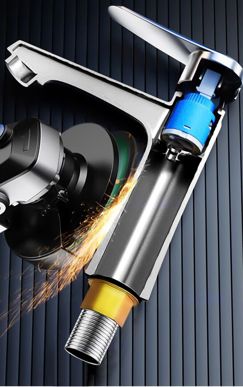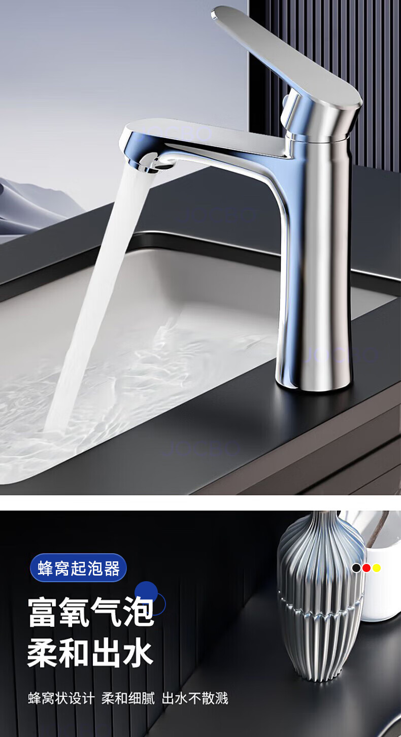 JOCBO Germany basin faucet full copper body bathroom cooler and heater two-in-one wash basin faucet basin faucet full copper thickening bright silver free 80CM original water inlet pipe*2