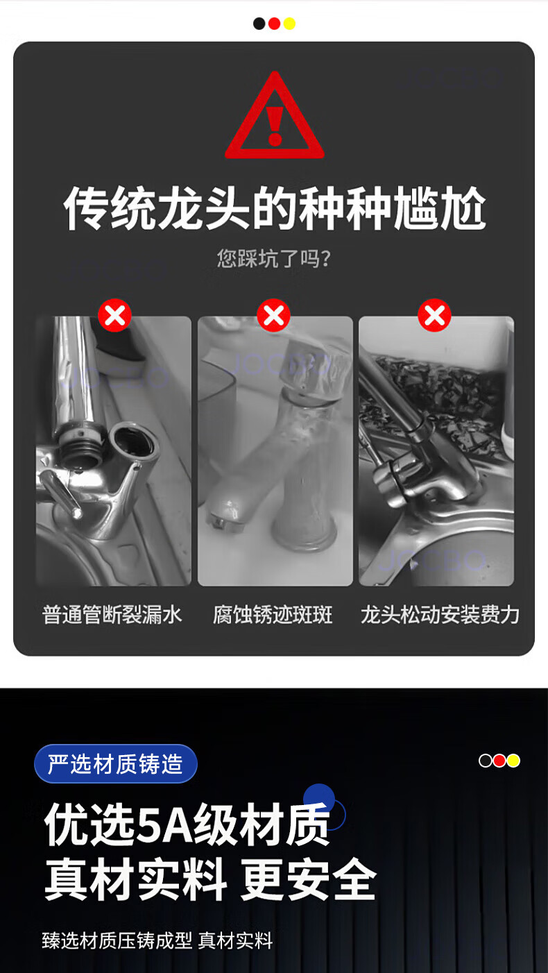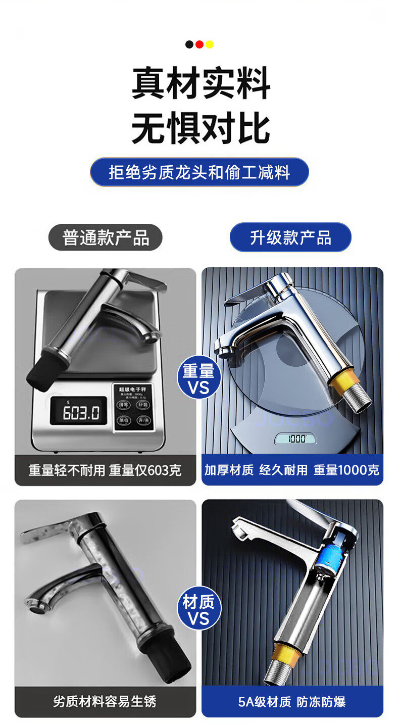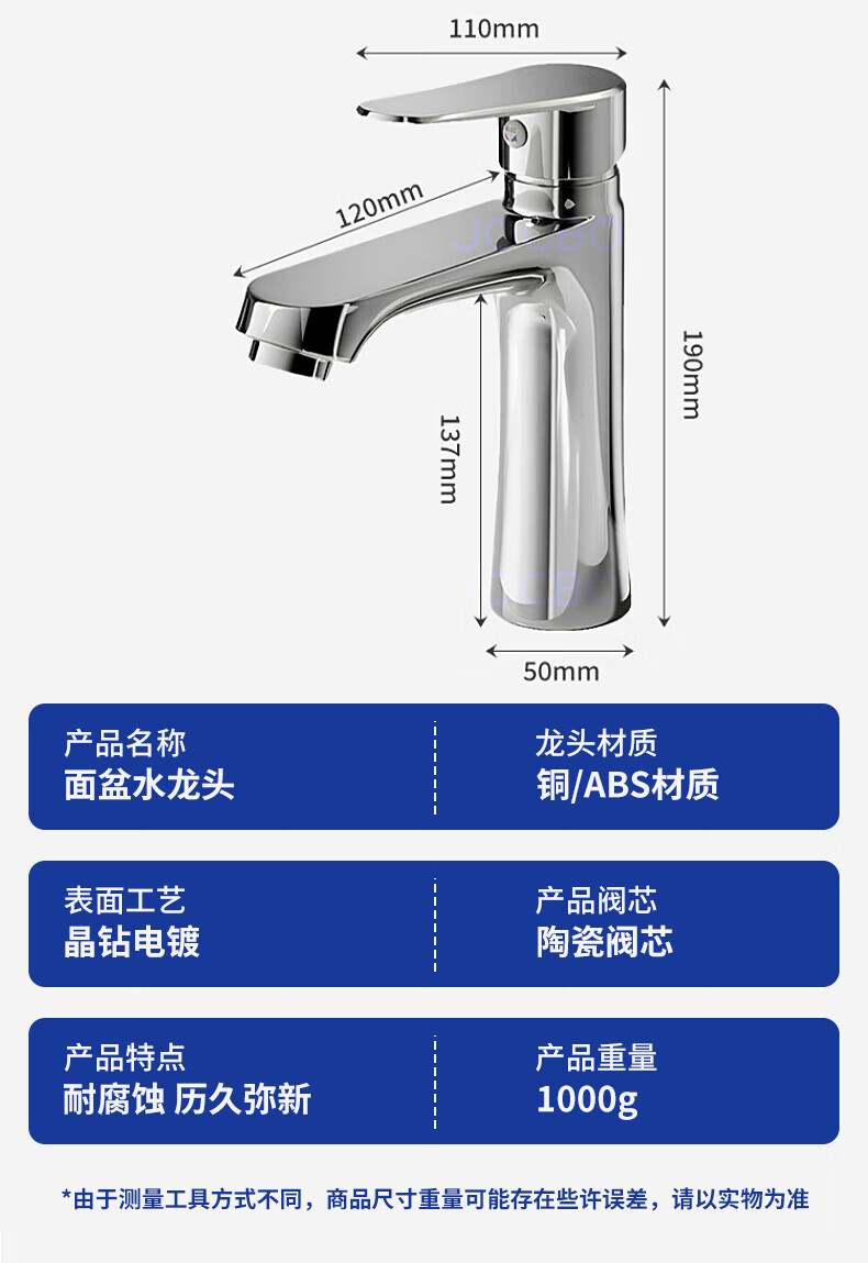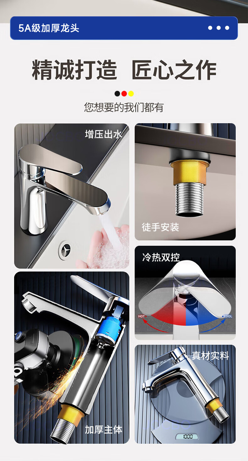JOCBO Germany basin faucet full copper body bathroom cooler and heater two-in-one wash basin faucet basin faucet full copper thickening bright silver free 80CM original water inlet pipe*2