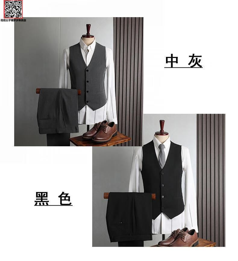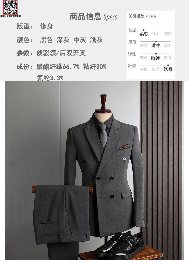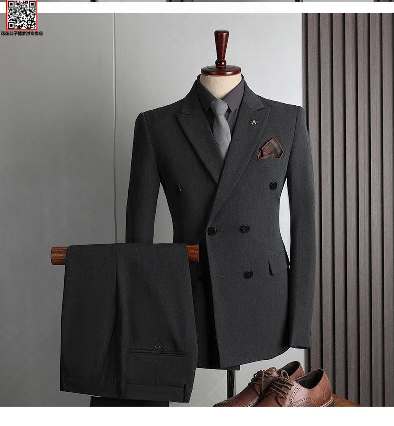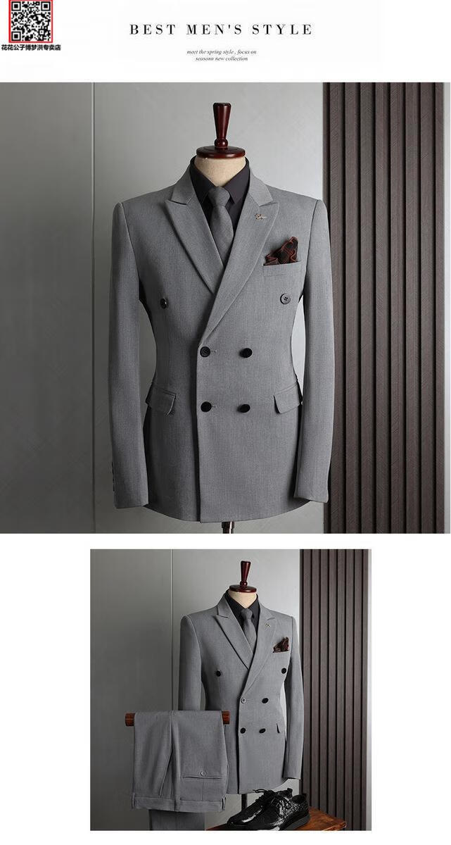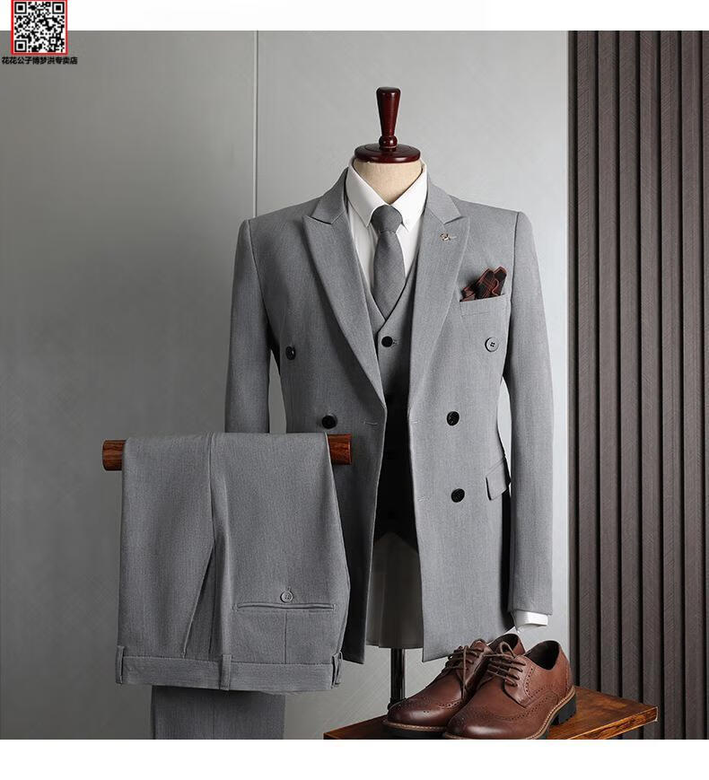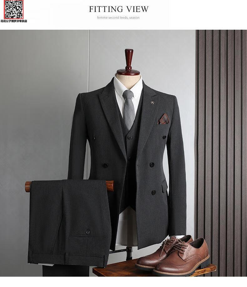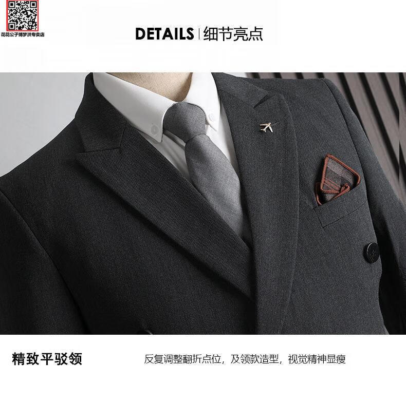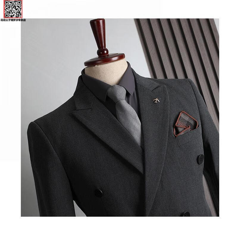 Playboy (PLAYBOY) high-quality suit men's British style double-breasted business casual suit three-piece groom's wedding dress medium gray (suit + pants) M 48