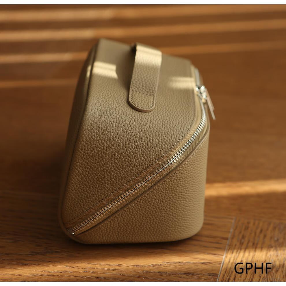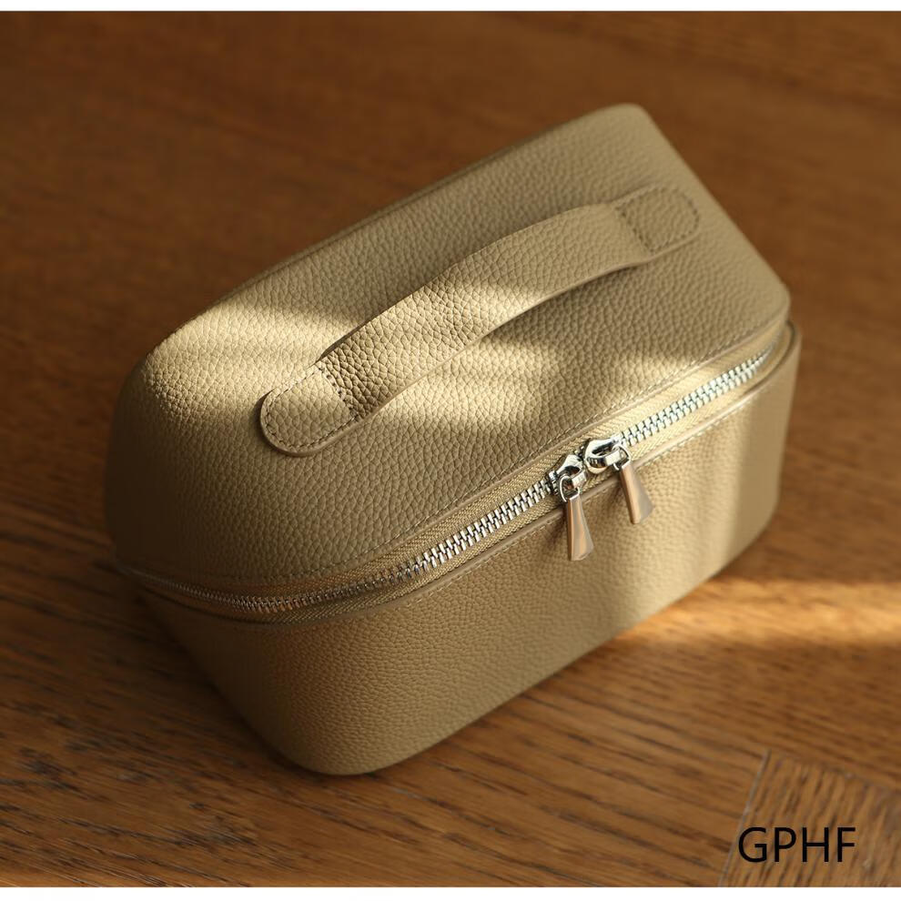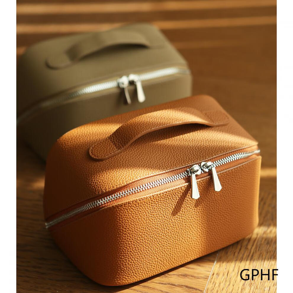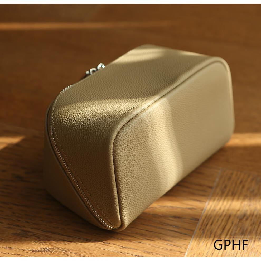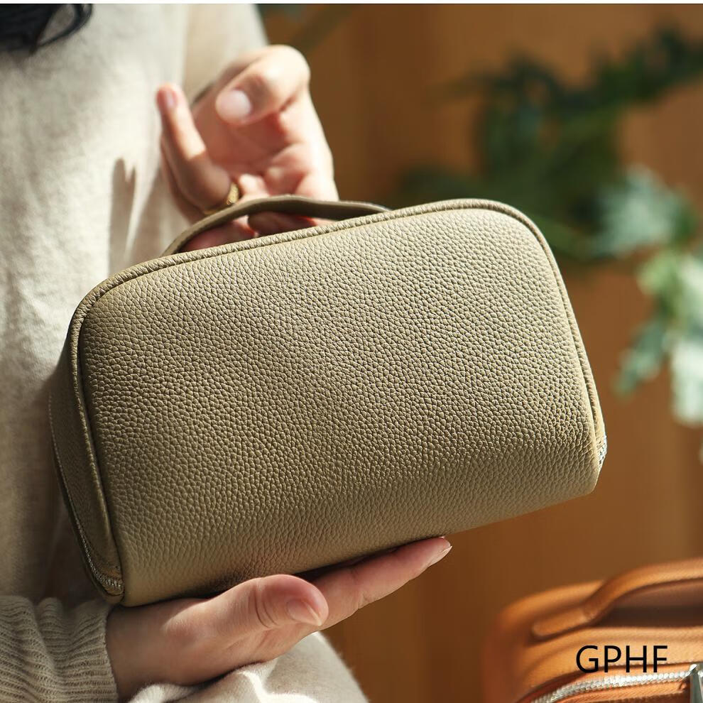 GPHF Japan Exquisite Genuine Leather Cosmetic Bag Small Portable Toiletries Bag Women's Cowhide Travel Storage Bag Brown