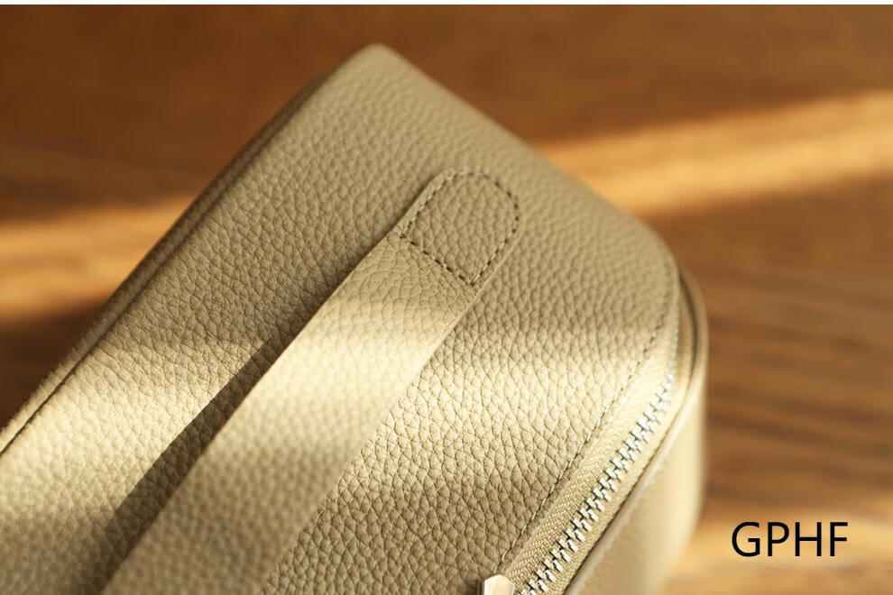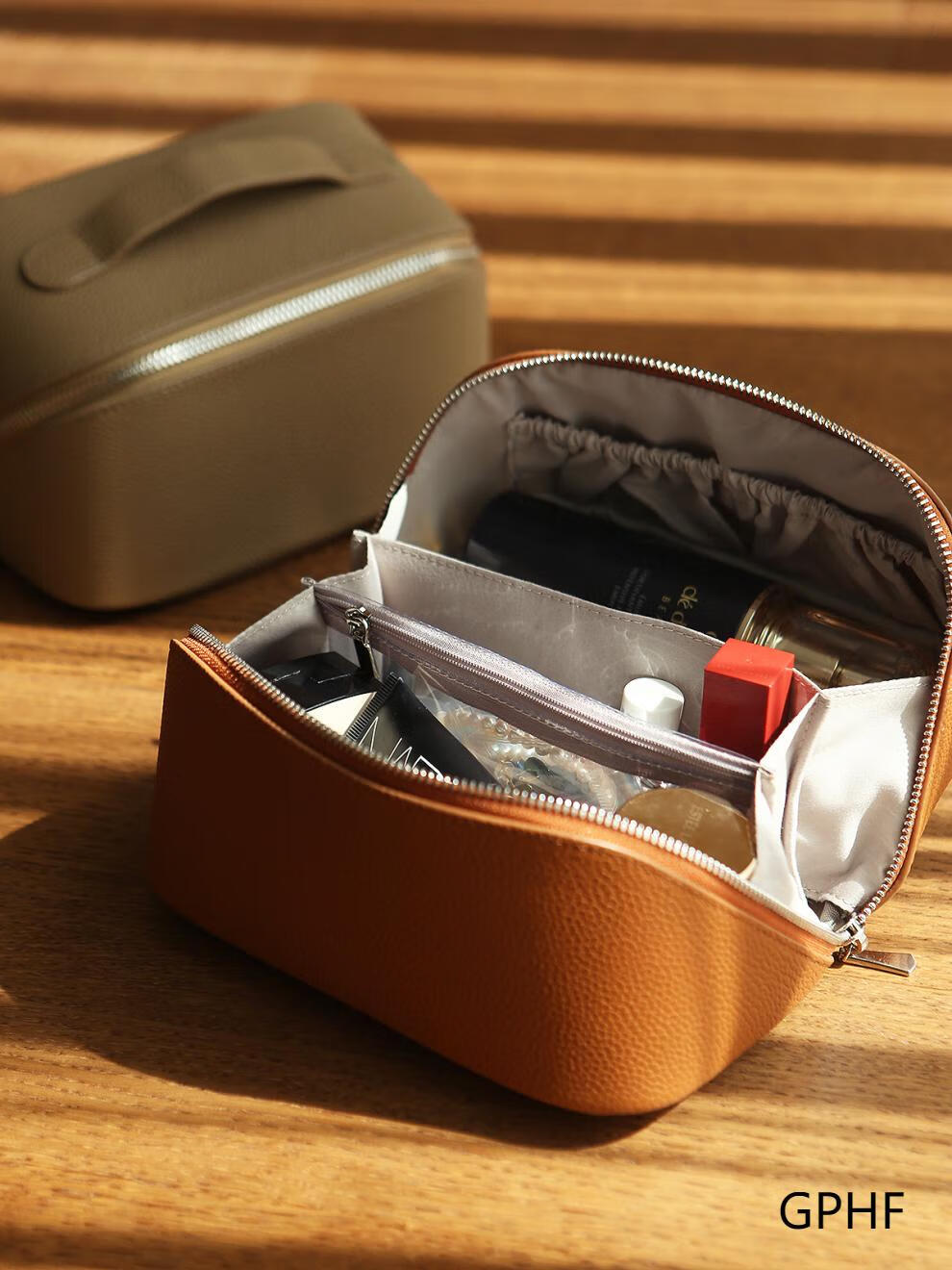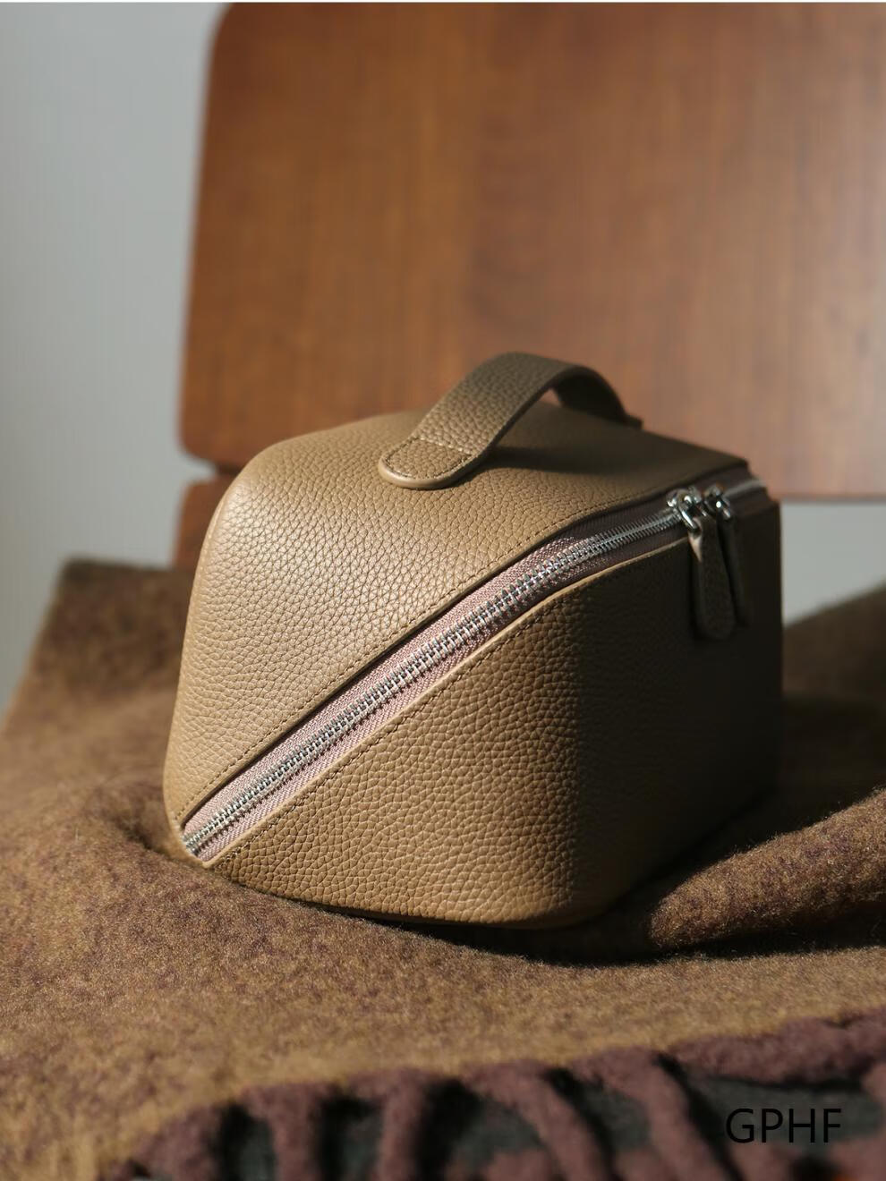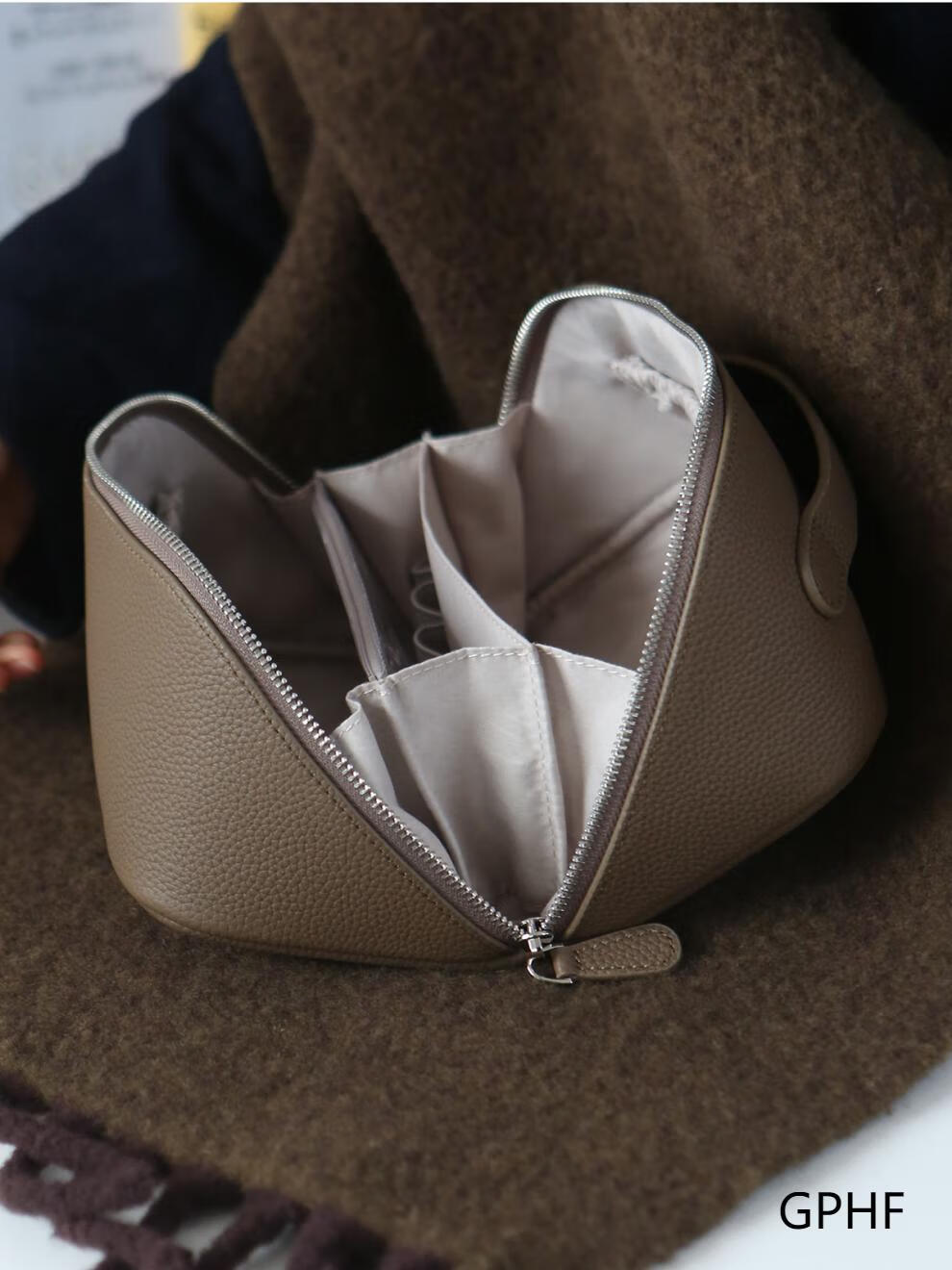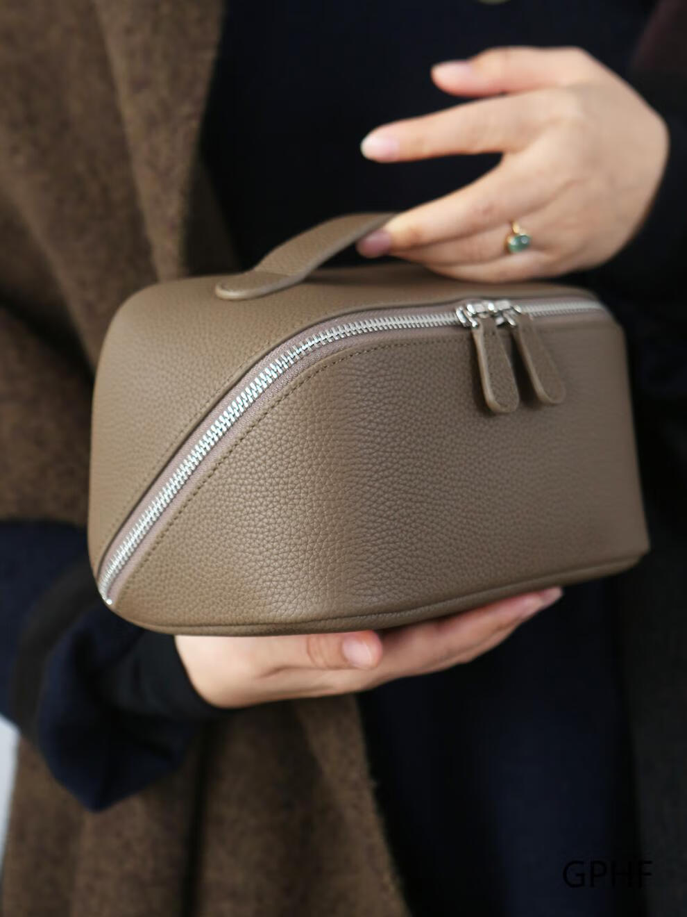 GPHF Japan Exquisite Genuine Leather Cosmetic Bag Small Portable Toiletries Bag Women's Cowhide Travel Storage Bag Brown
