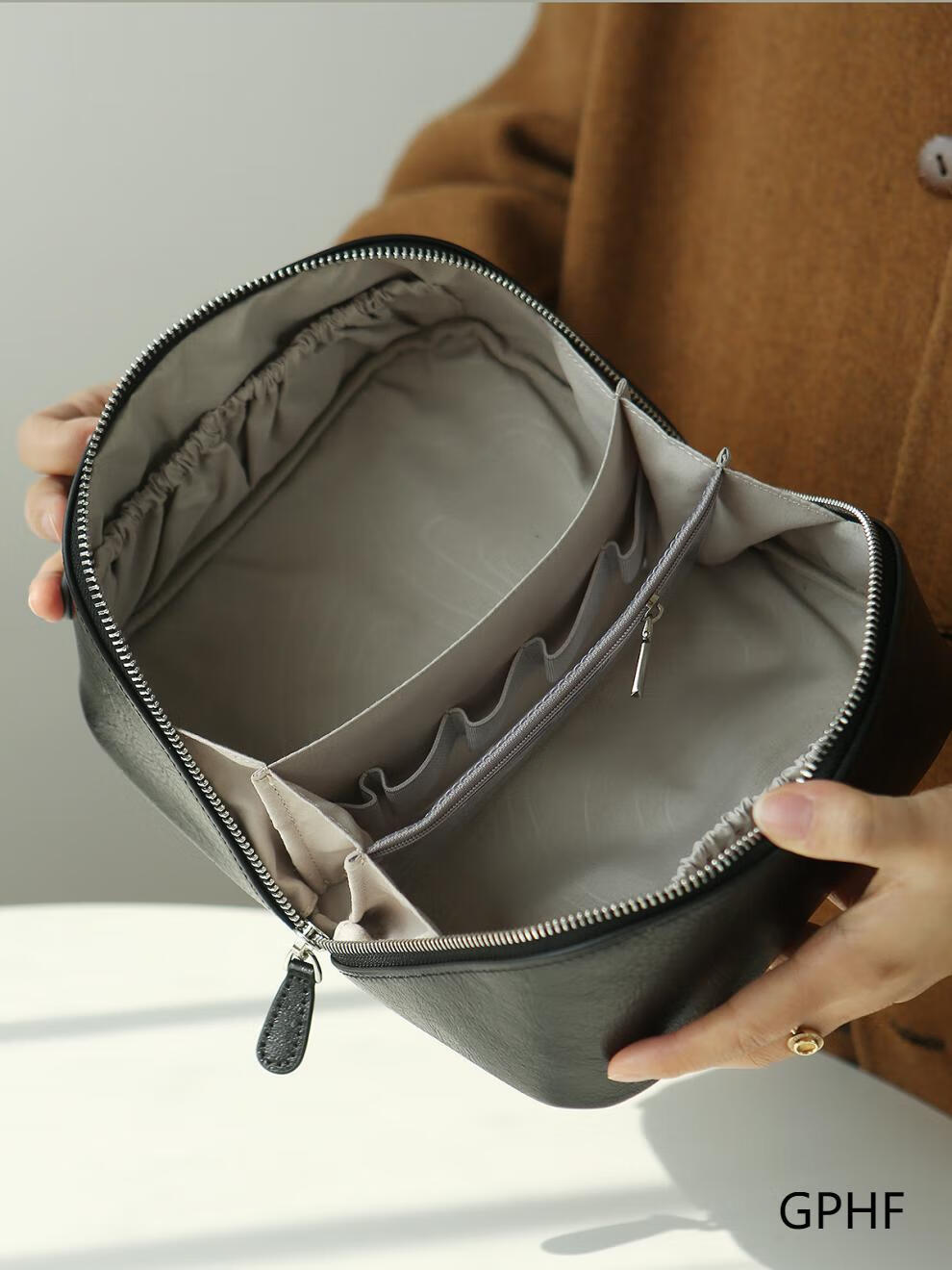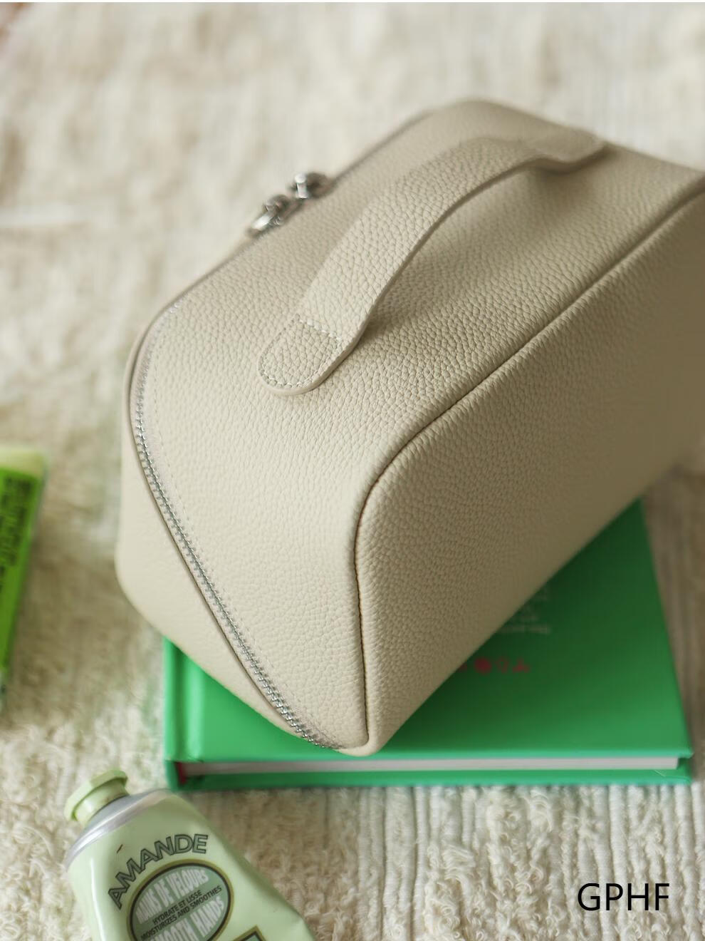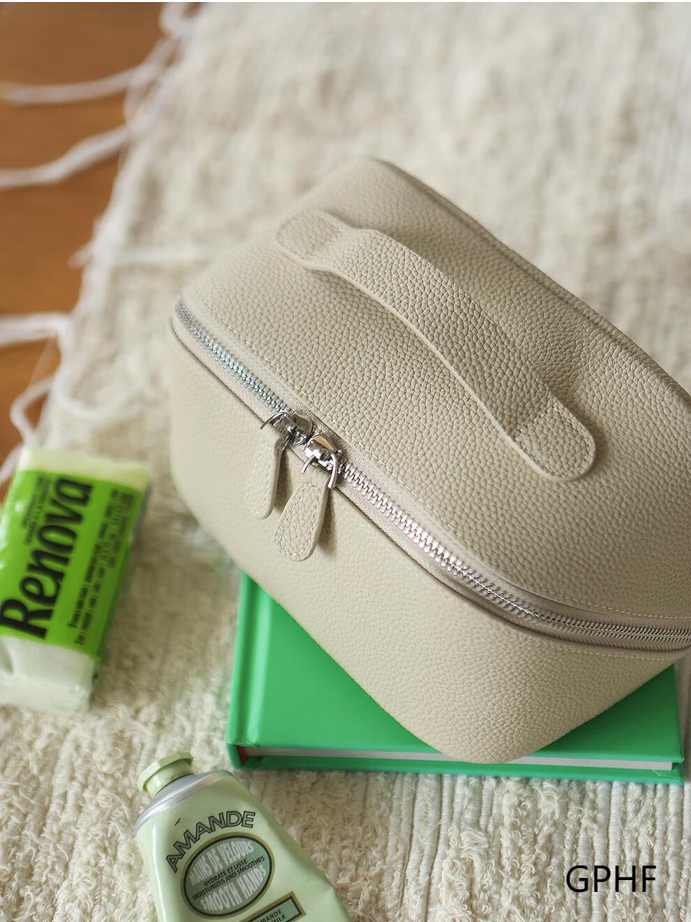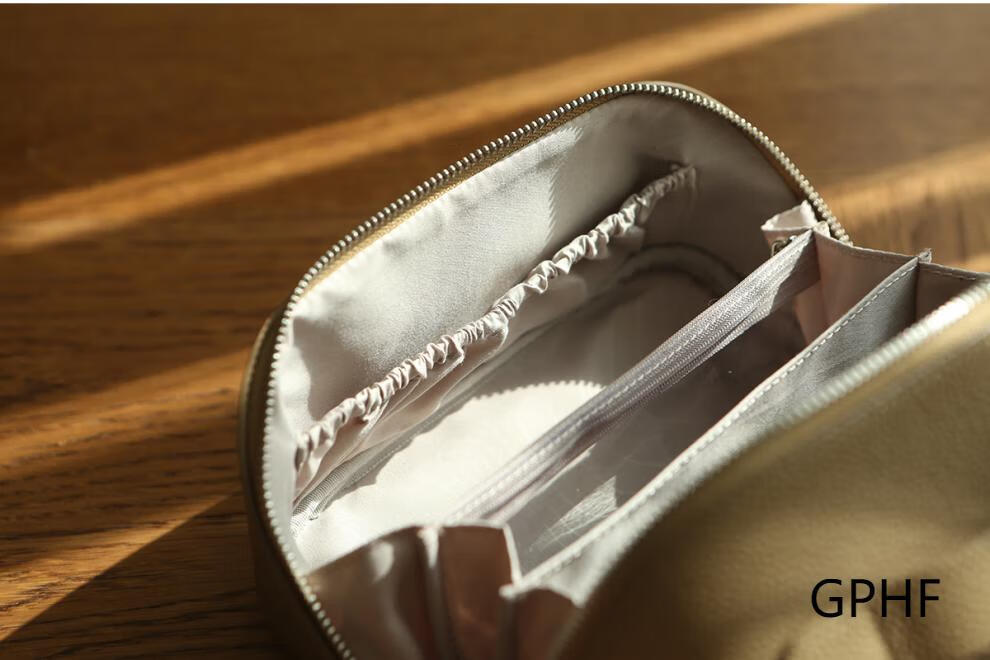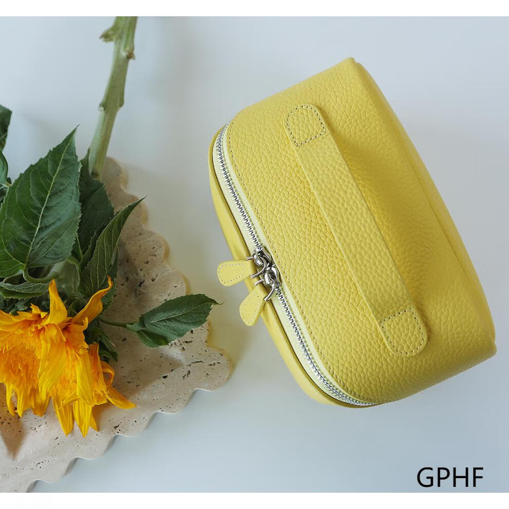GPHF Japan Exquisite Genuine Leather Cosmetic Bag Small Portable Toiletries Bag Women's Cowhide Travel Storage Bag Brown