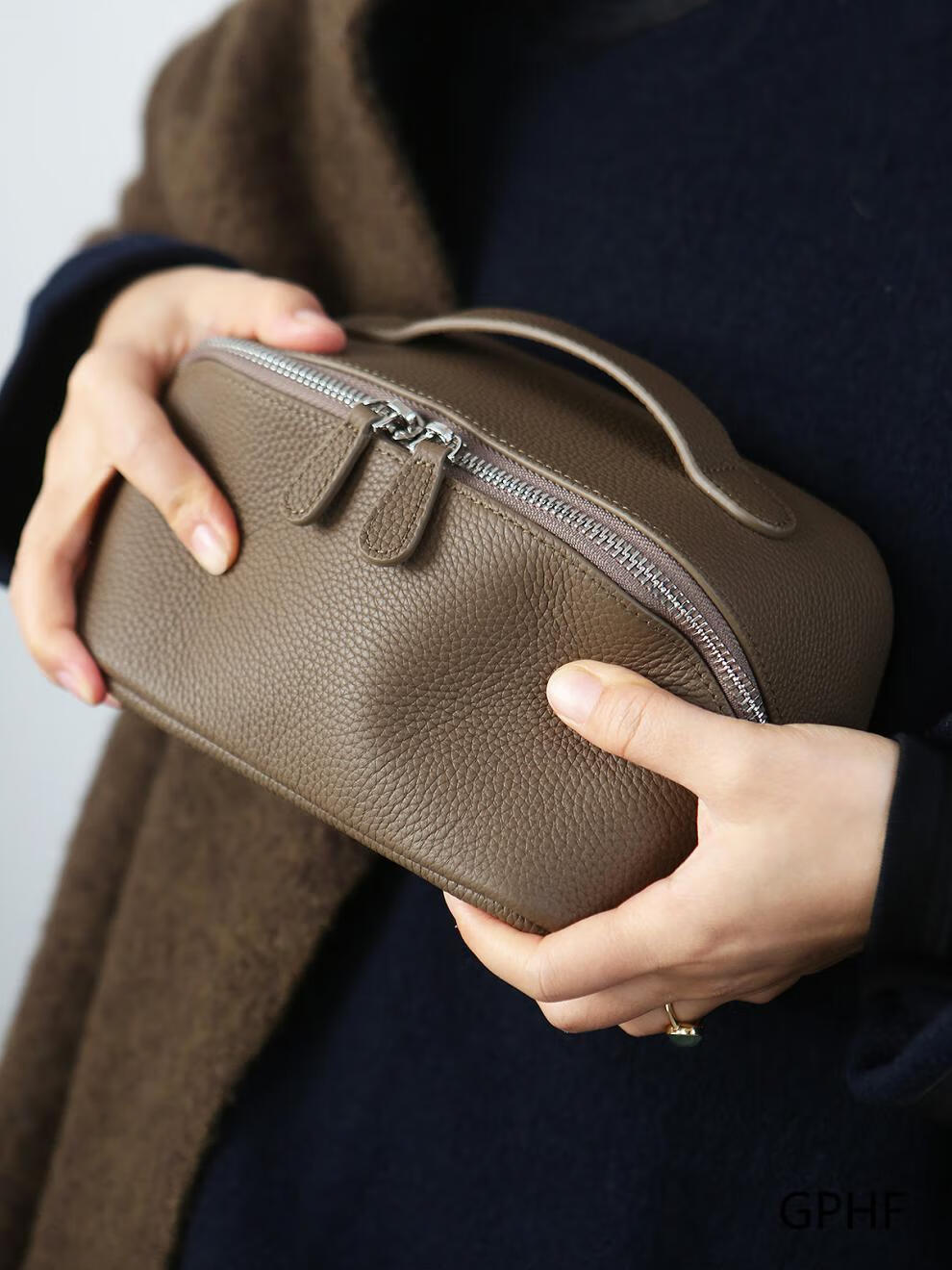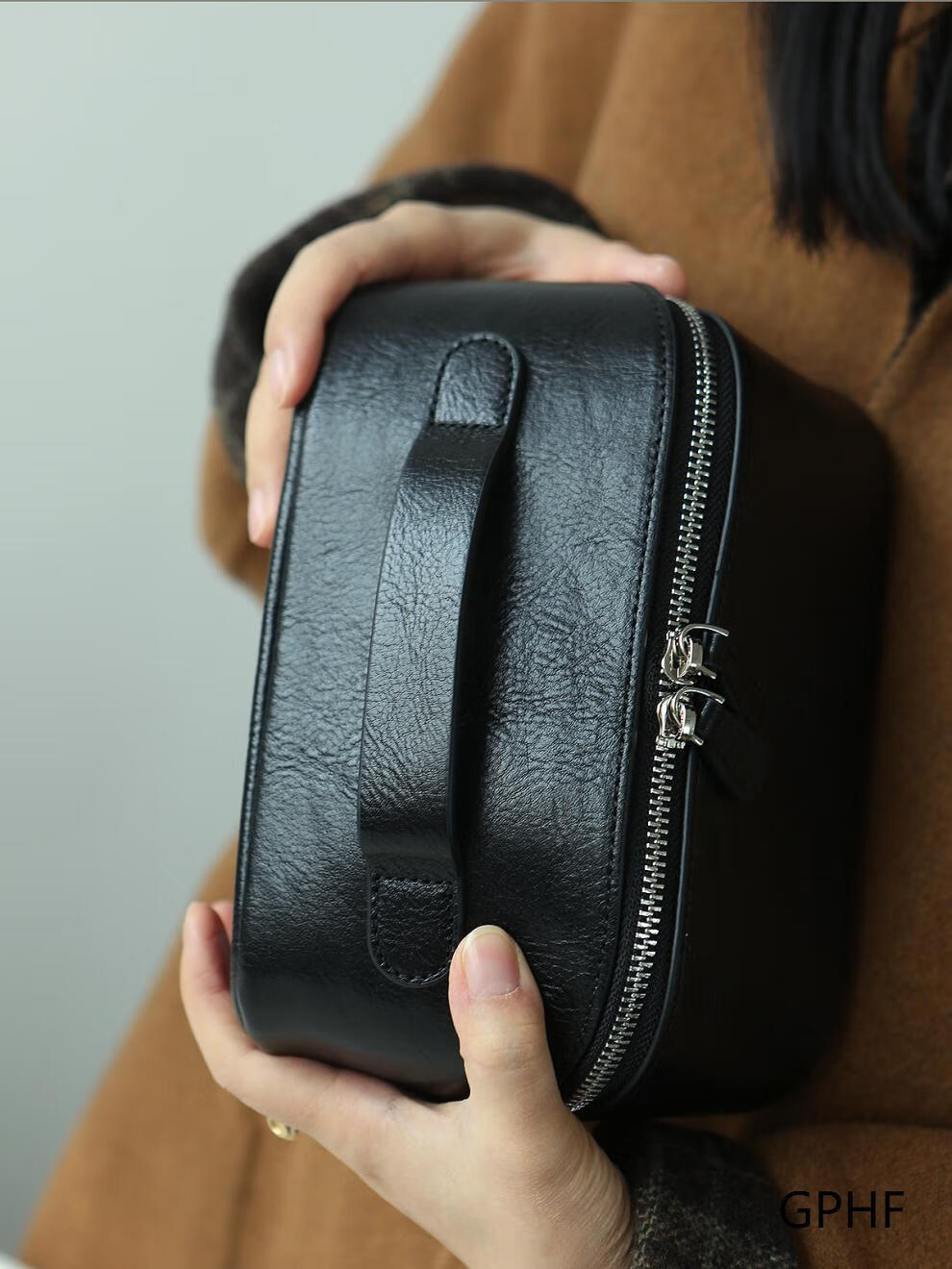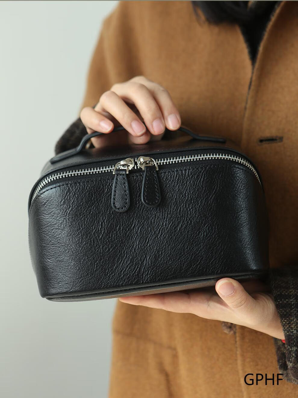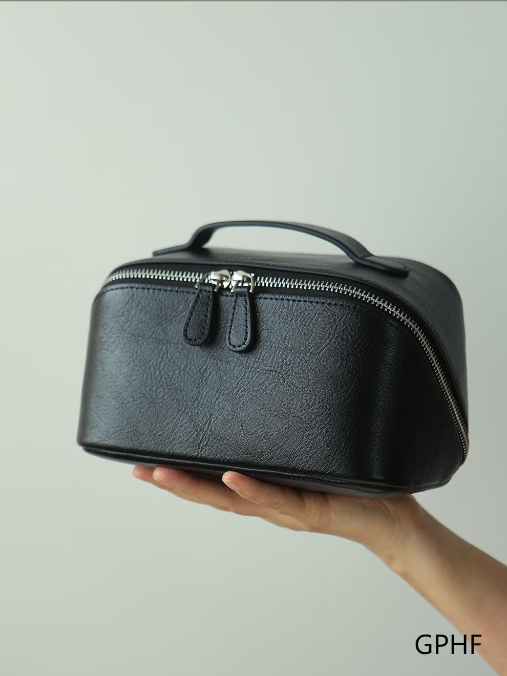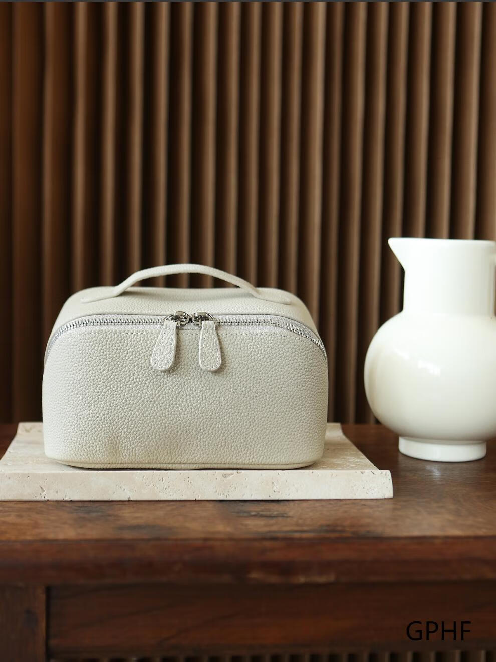 GPHF Japan Exquisite Genuine Leather Cosmetic Bag Small Portable Toiletries Bag Women's Cowhide Travel Storage Bag Brown