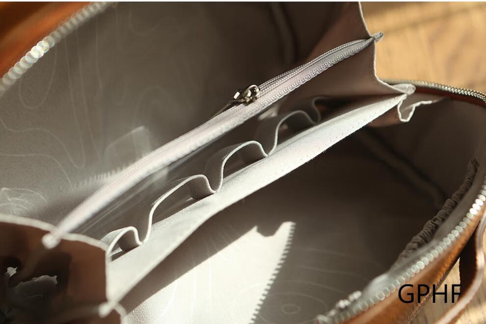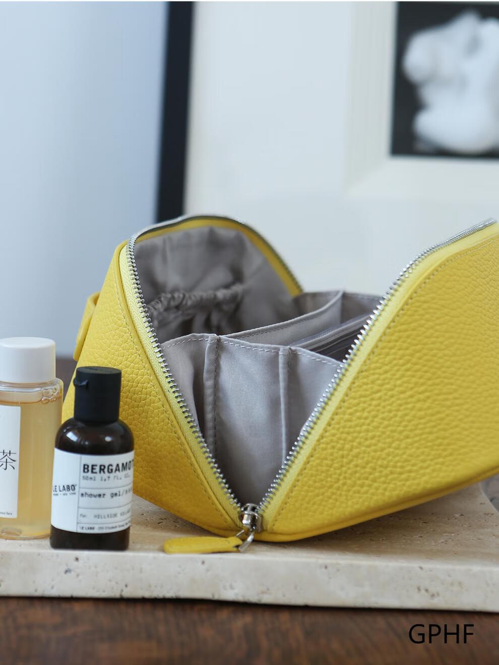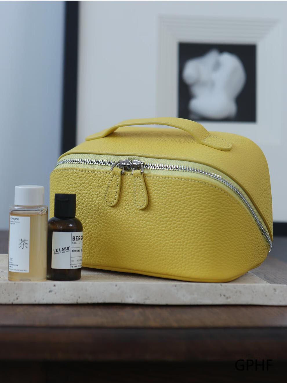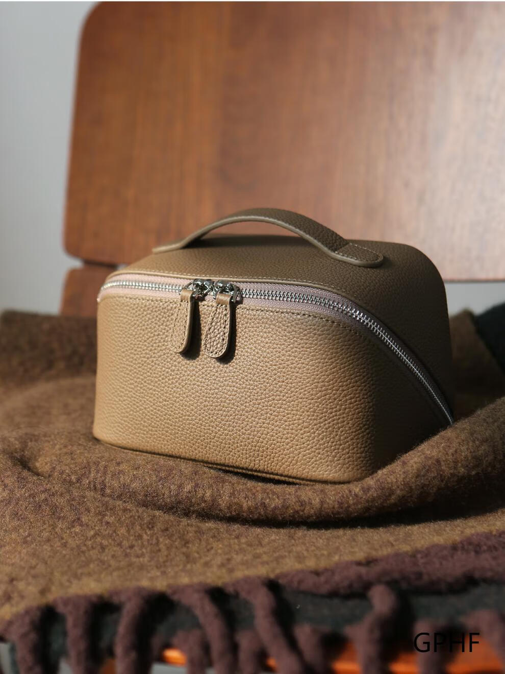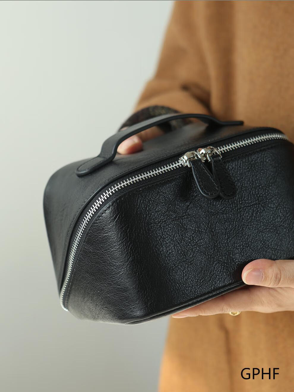 GPHF Japan Exquisite Genuine Leather Cosmetic Bag Small Portable Toiletries Bag Women's Cowhide Travel Storage Bag Brown