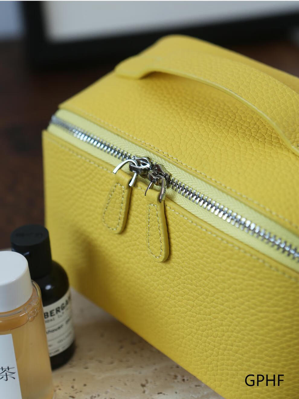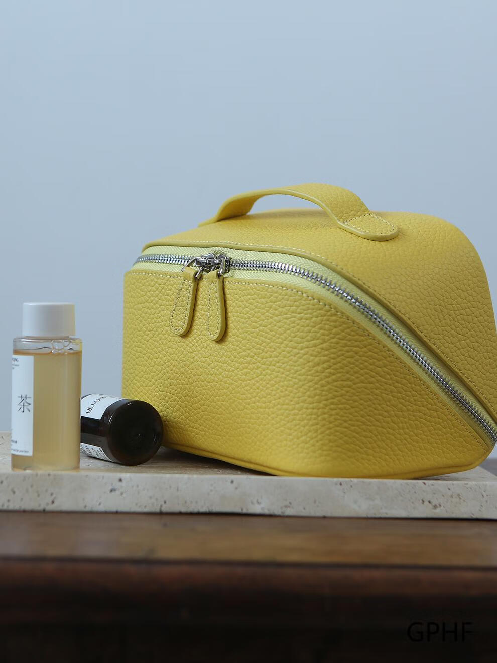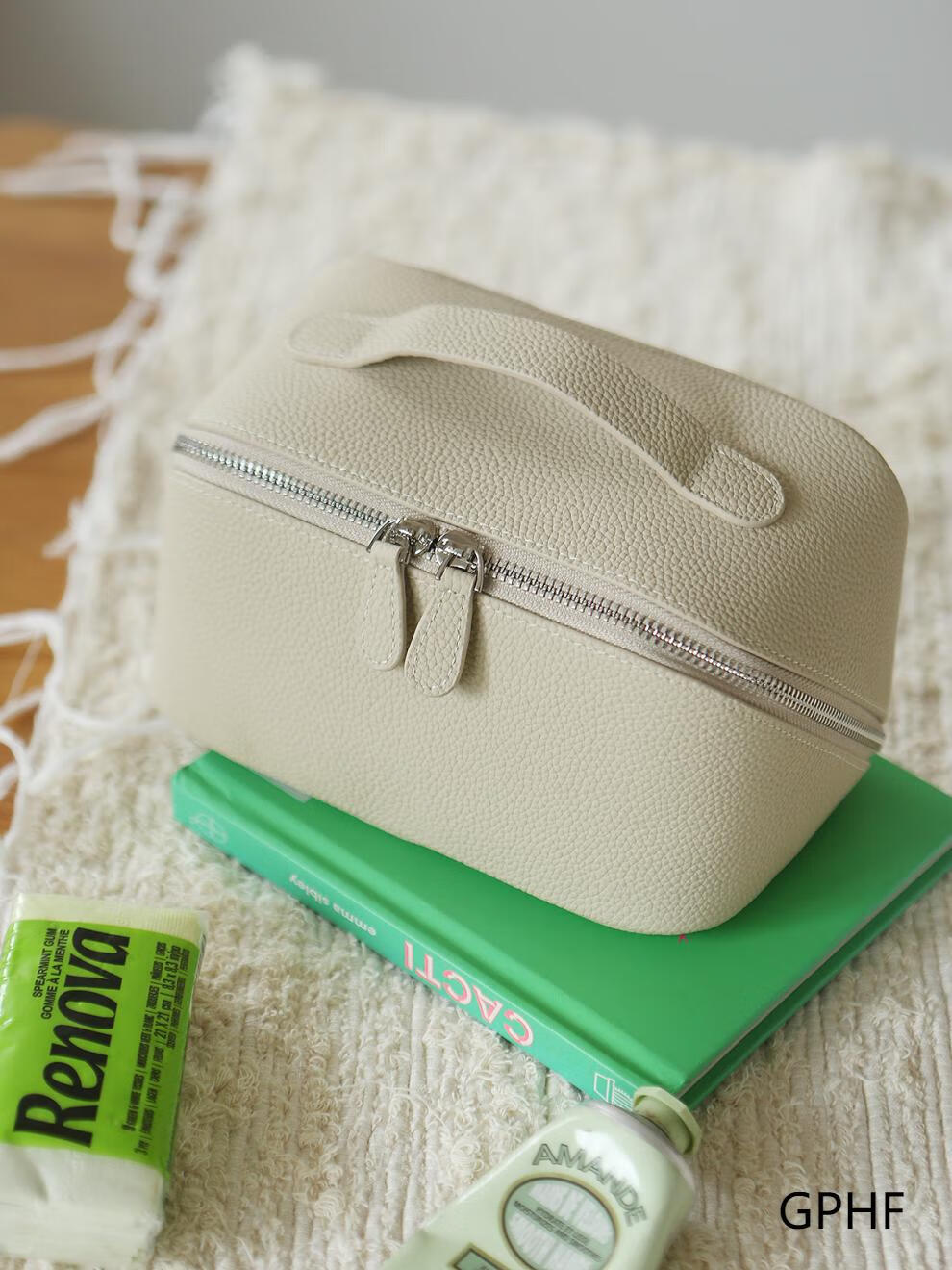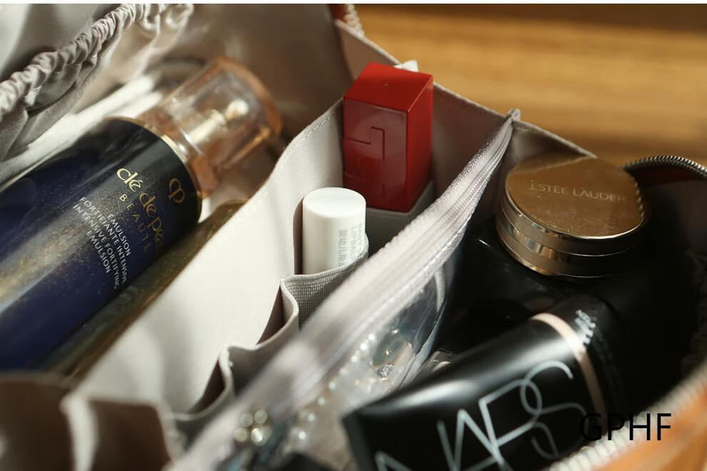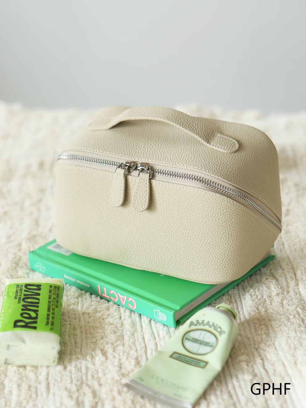 GPHF Japan Exquisite Genuine Leather Cosmetic Bag Small Portable Toiletries Bag Women's Cowhide Travel Storage Bag Brown