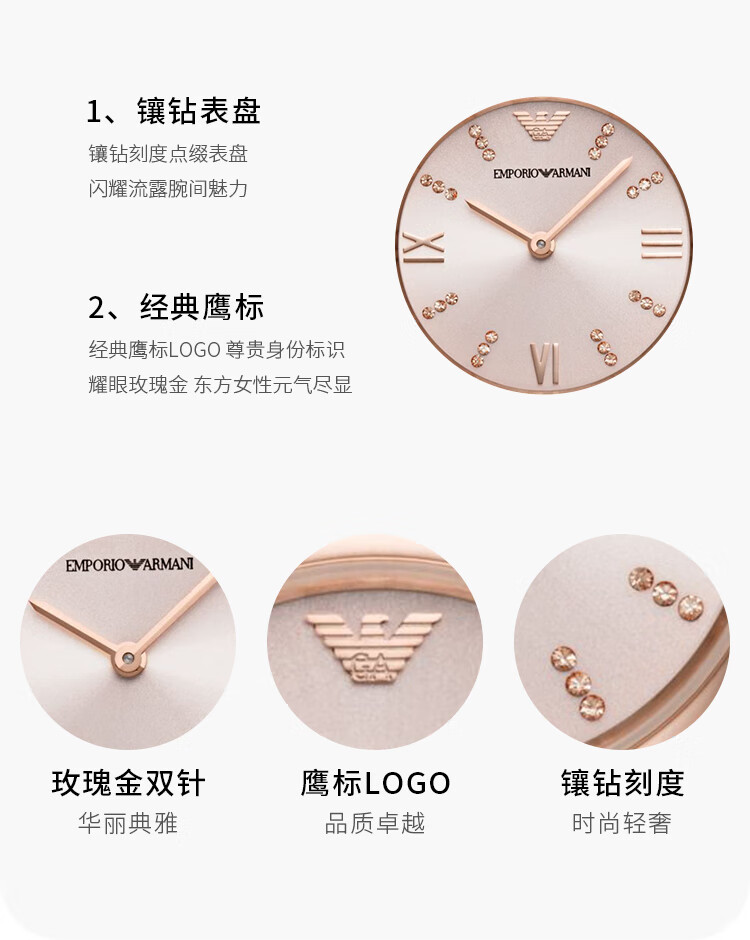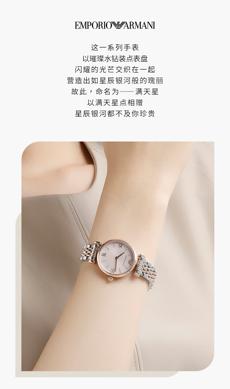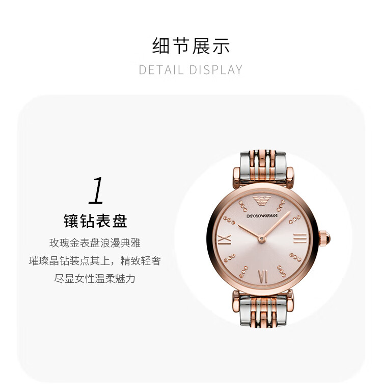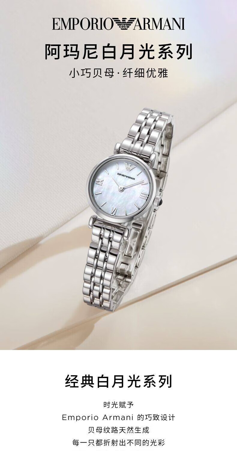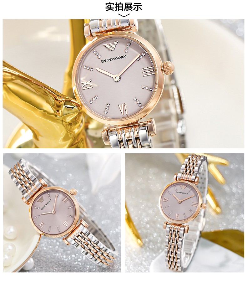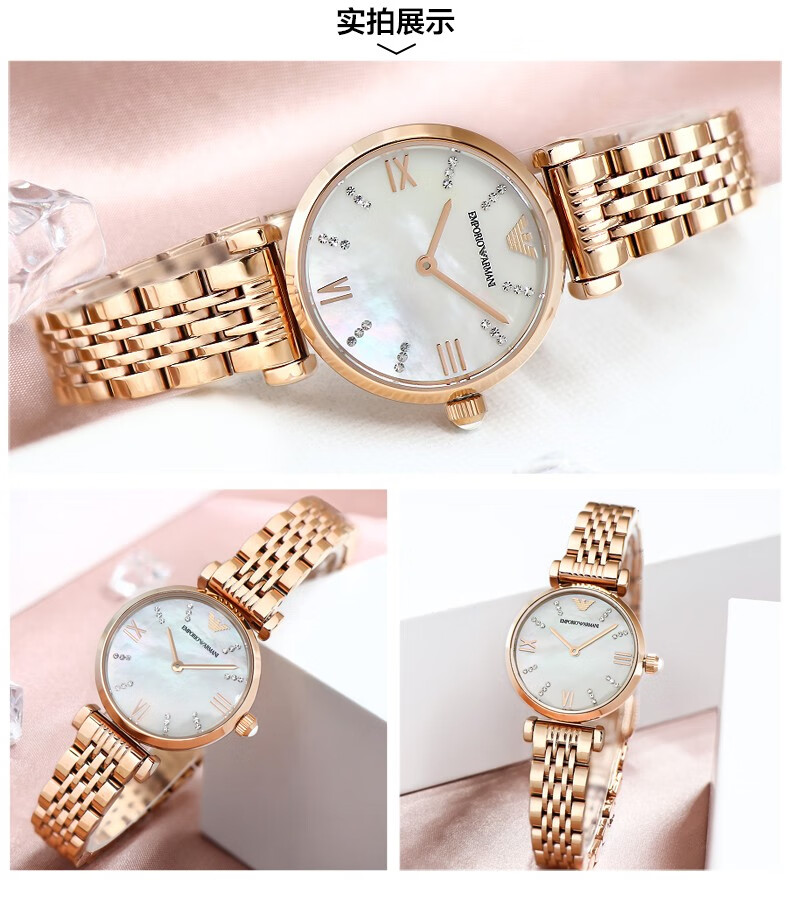 EMPORIO ARMANI Armani Rose Small Disc Set with Diamonds Valentine's Day Birthday New Year's Gift for Girlfriend Electronic Women's Watch 22MM Temperament White Moonlight AR1961