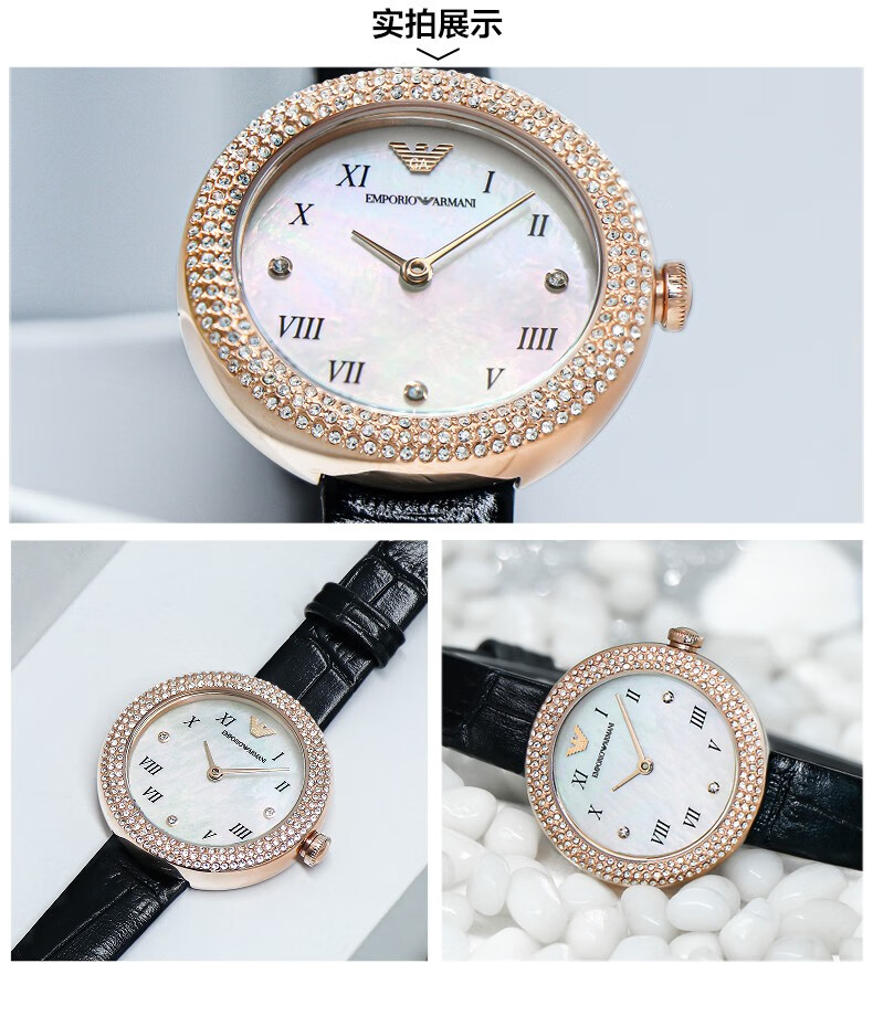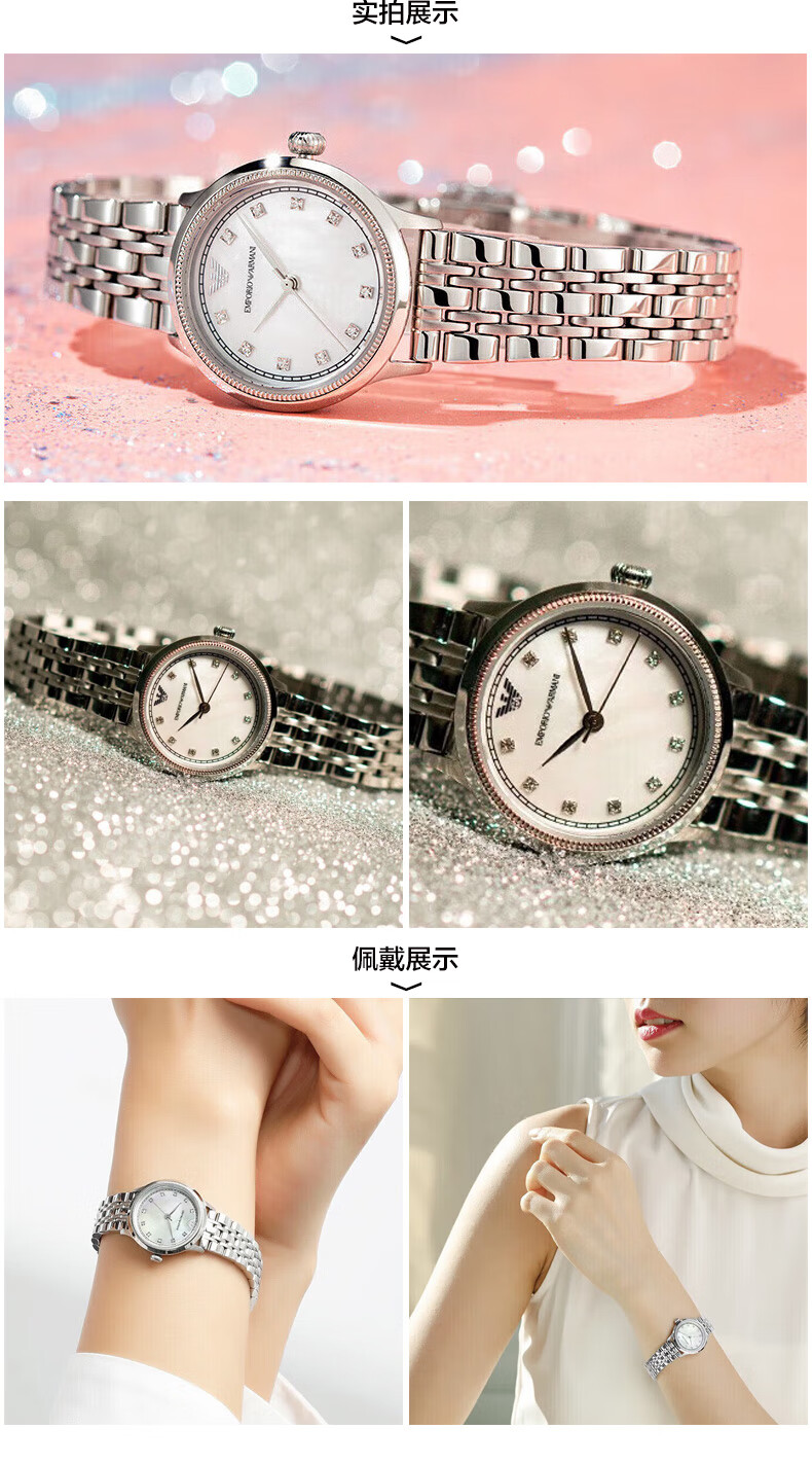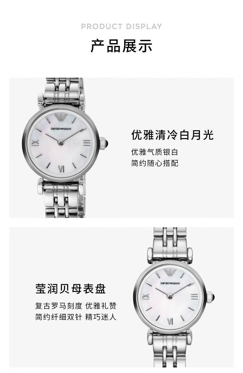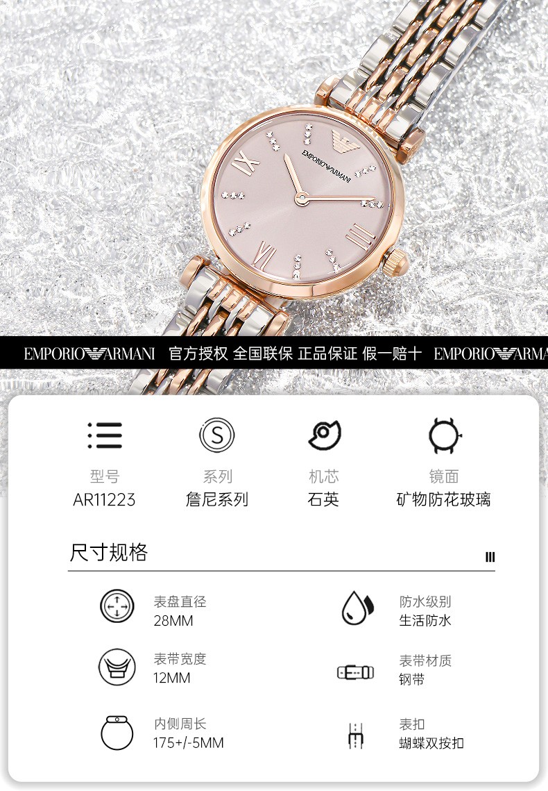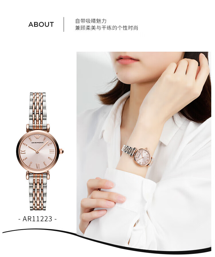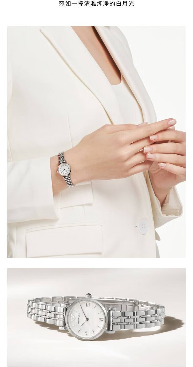 EMPORIO ARMANI Armani Rose Small Disc Set with Diamonds Valentine's Day Birthday New Year's Gift for Girlfriend Electronic Women's Watch 22MM Temperament White Moonlight AR1961