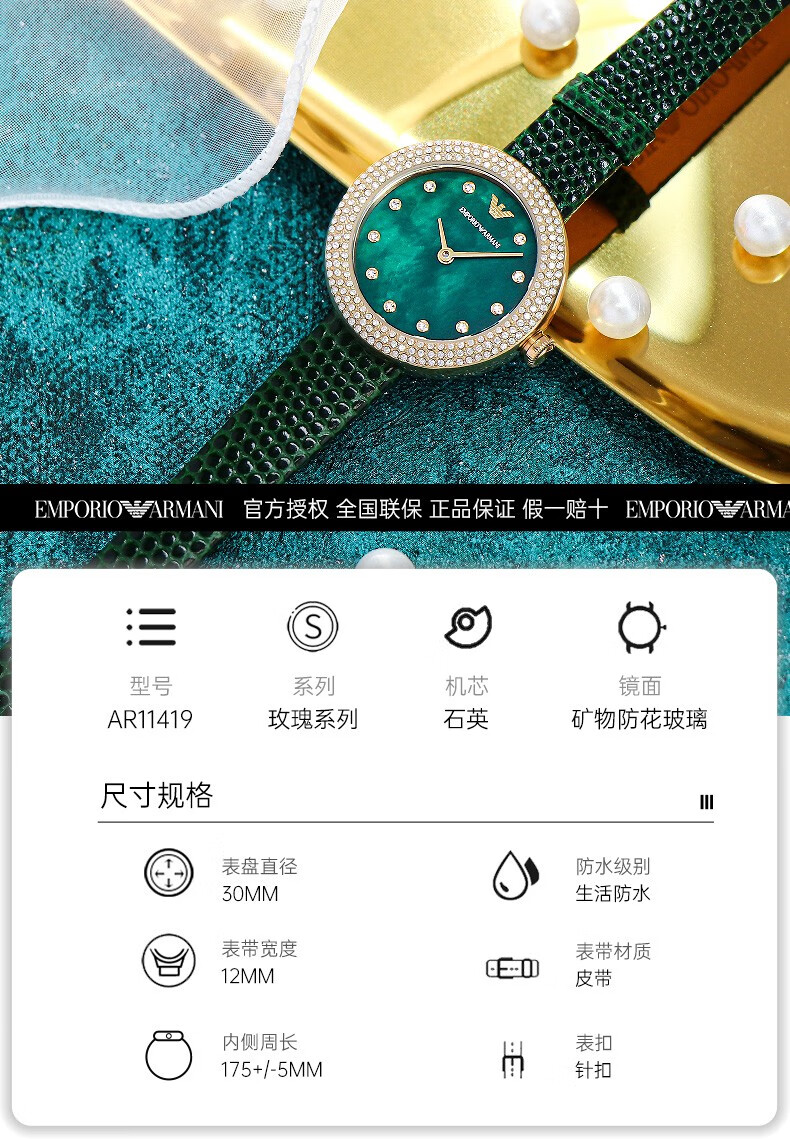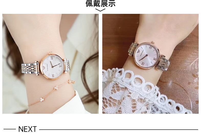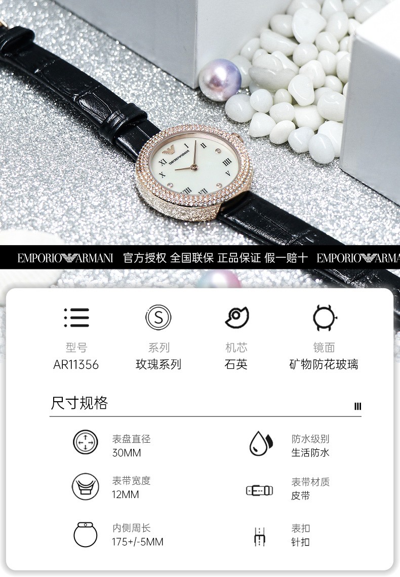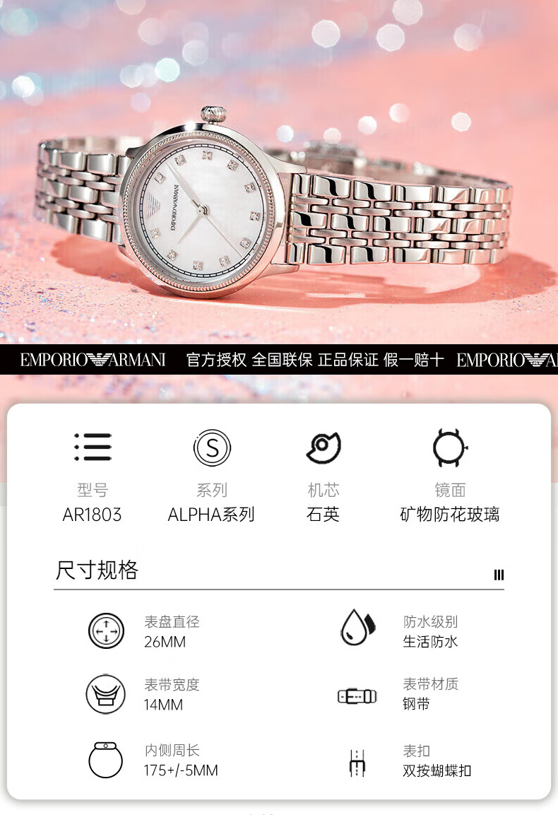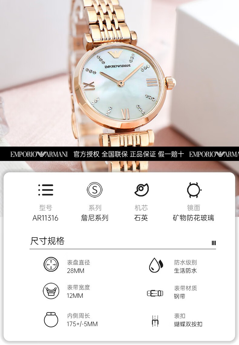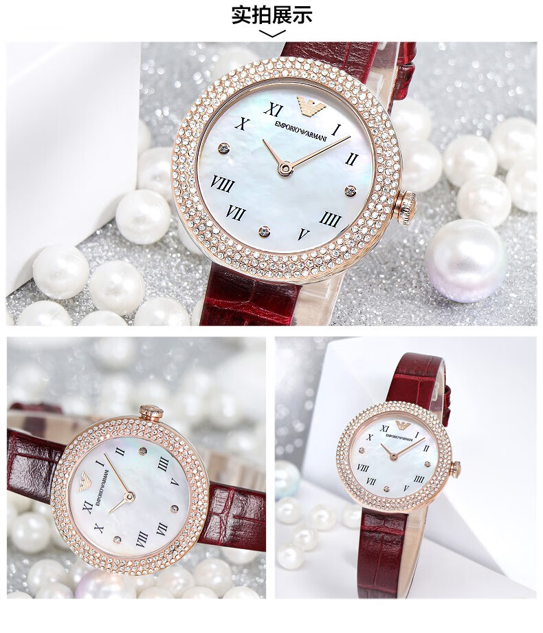 EMPORIO ARMANI Armani Rose Small Disc Set with Diamonds Valentine's Day Birthday New Year's Gift for Girlfriend Electronic Women's Watch 22MM Temperament White Moonlight AR1961