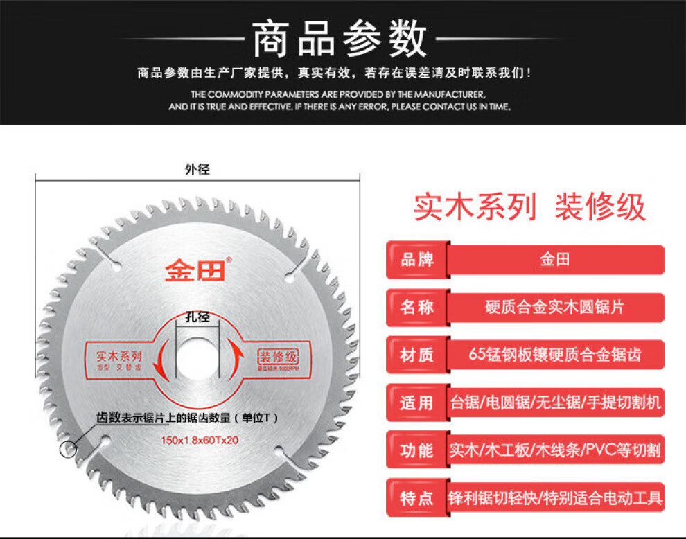 Jintian Jintian saw blade decoration grade woodworking saw blade angle grinder cutting machine cutting blade portable saw circular saw circular saw blade 4 inches 4 inches 105 1.5 40T 20