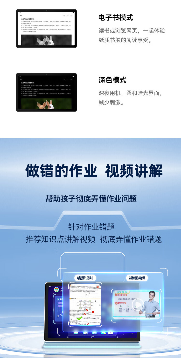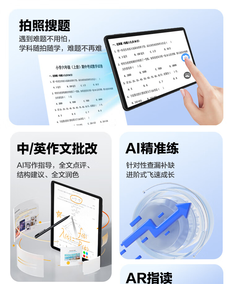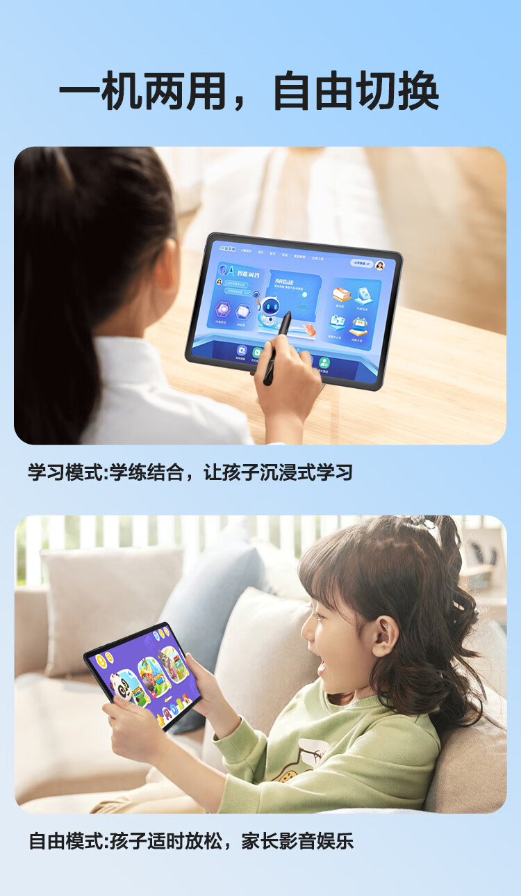 Keruiyun AI learning machine, tablet computer, teaching materials, tutoring machine, tutoring machine for primary school, junior high school and high school, AI learning machine, 6G+128G+ stylus, dual-purpose machine/Hongmeng system/real-time control