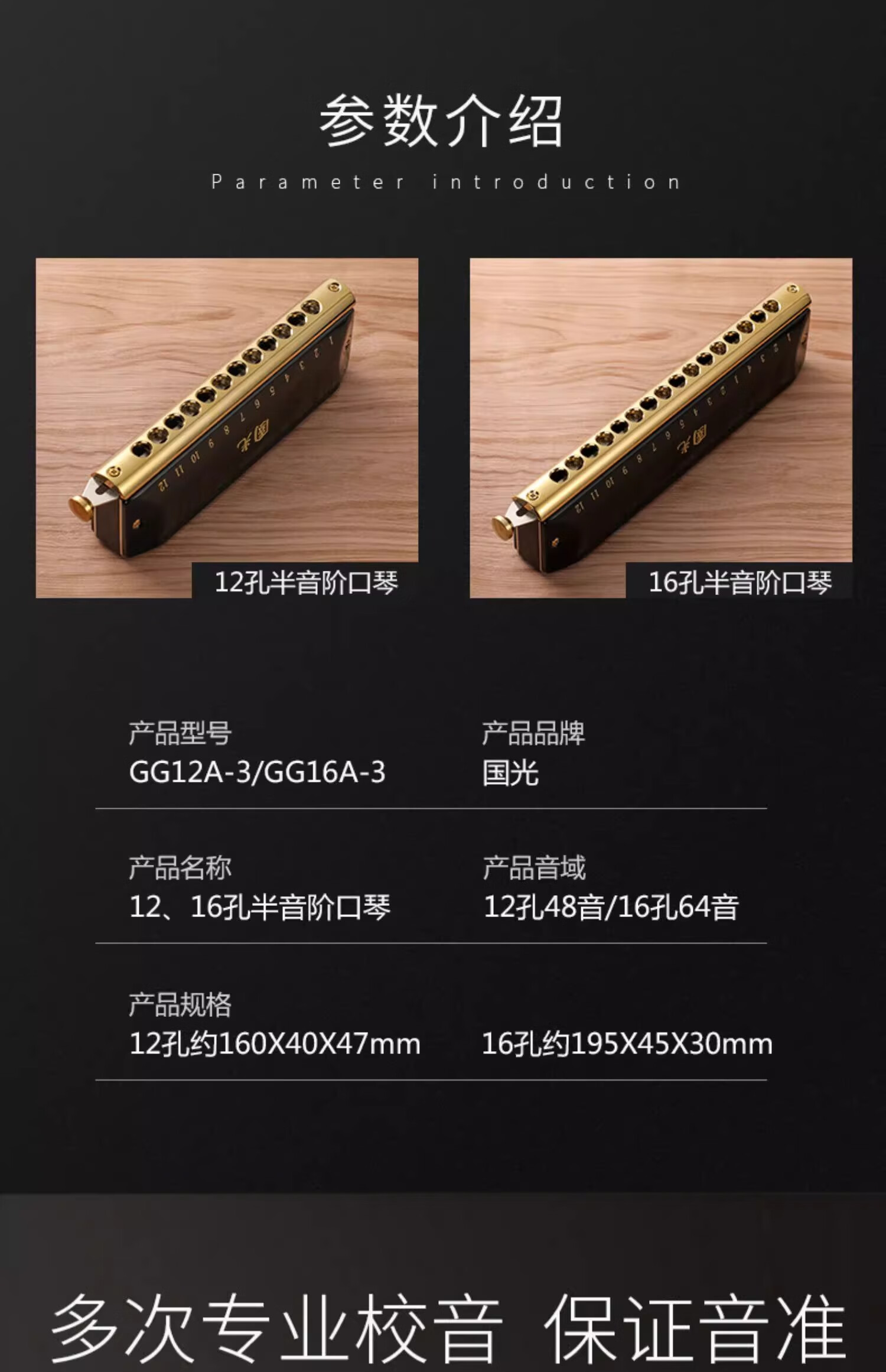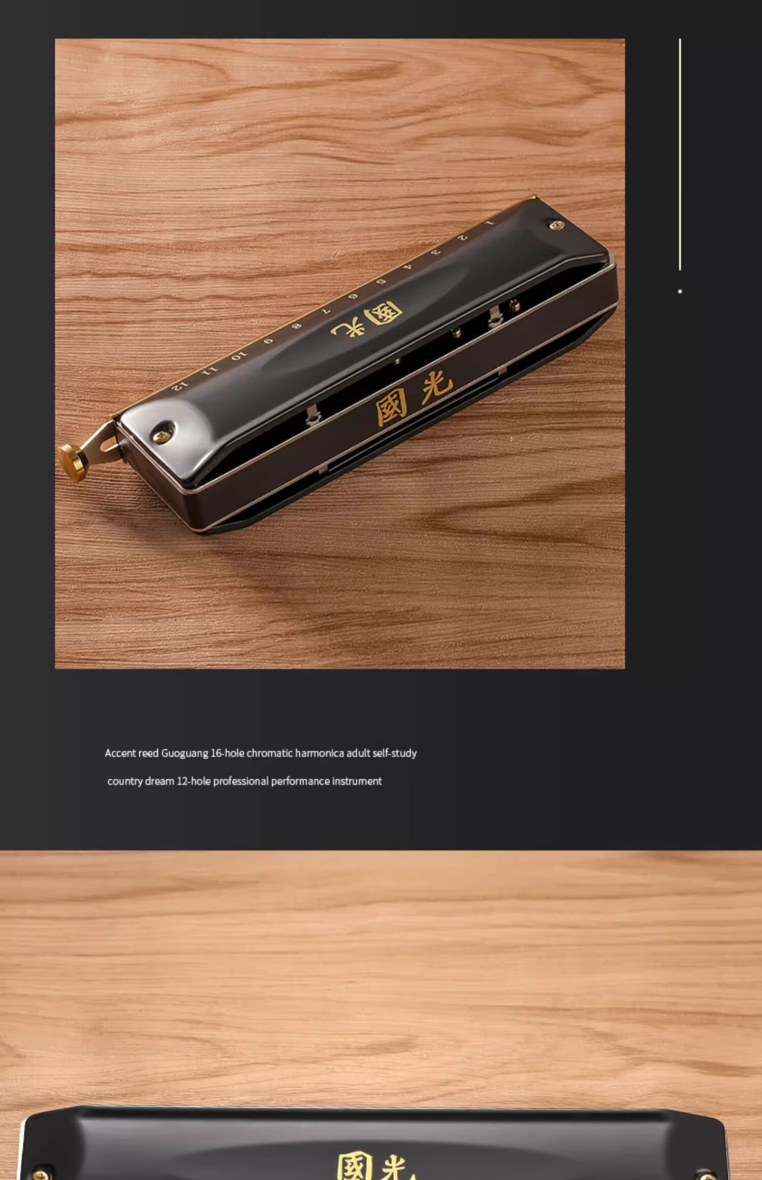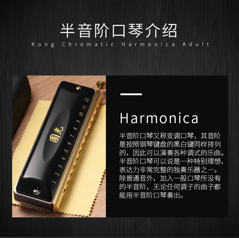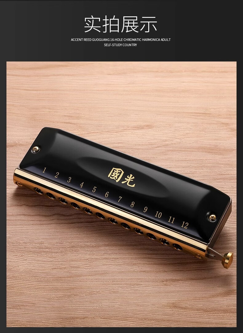 Guoguang chromatic harmonica 10 holes 12 holes 16 holes imported gongs for beginners students entry-level musical instruments for adults professional playing 12 holes chromatic scale black + video teaching