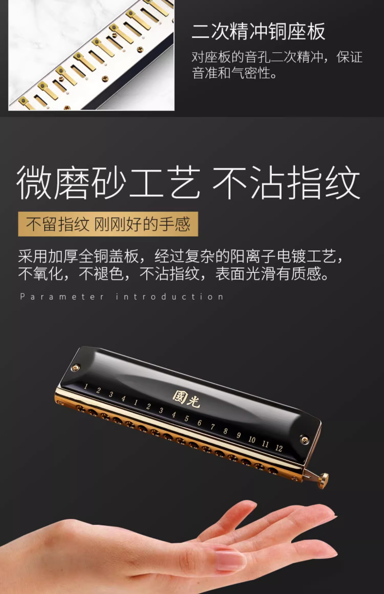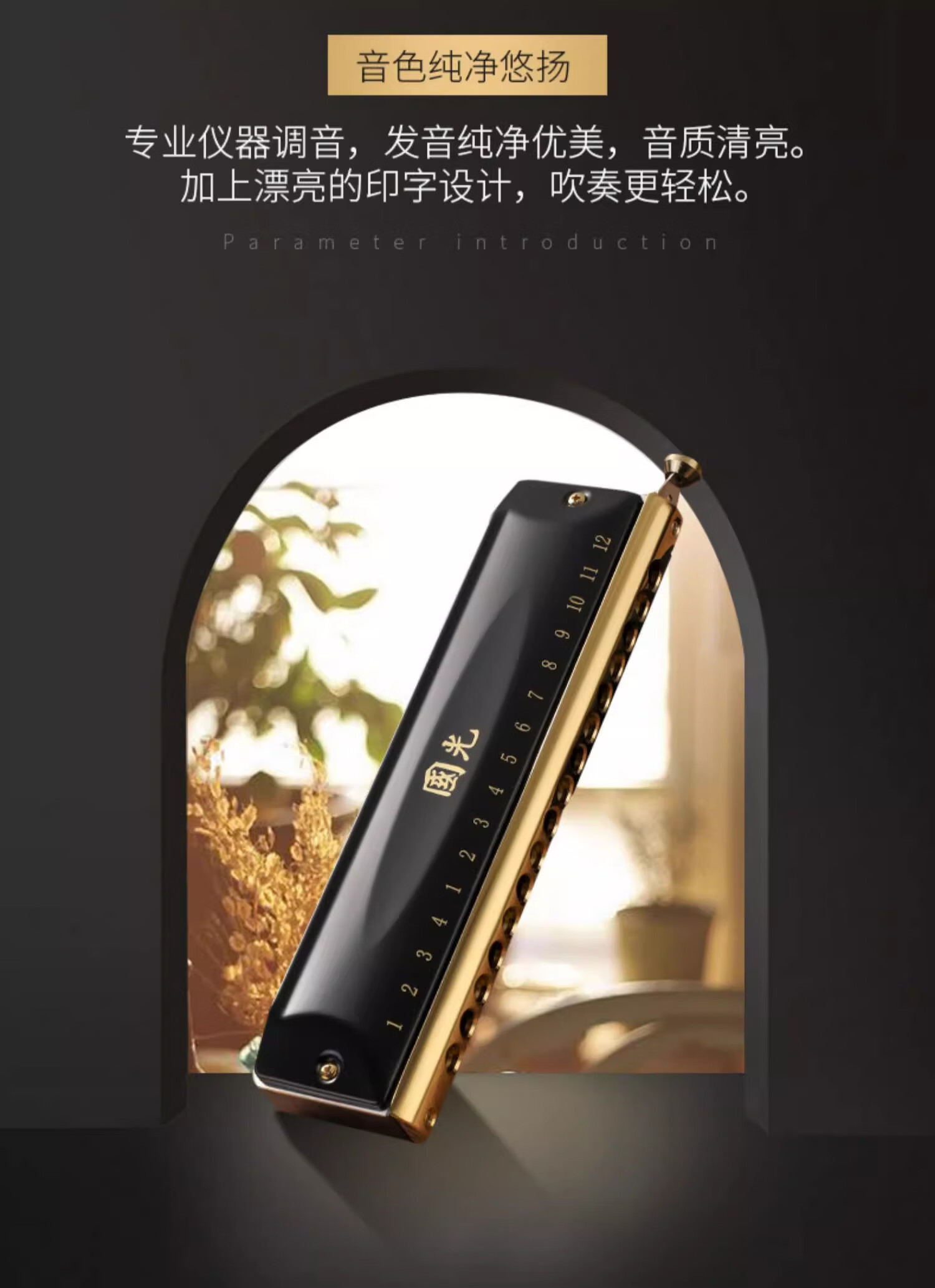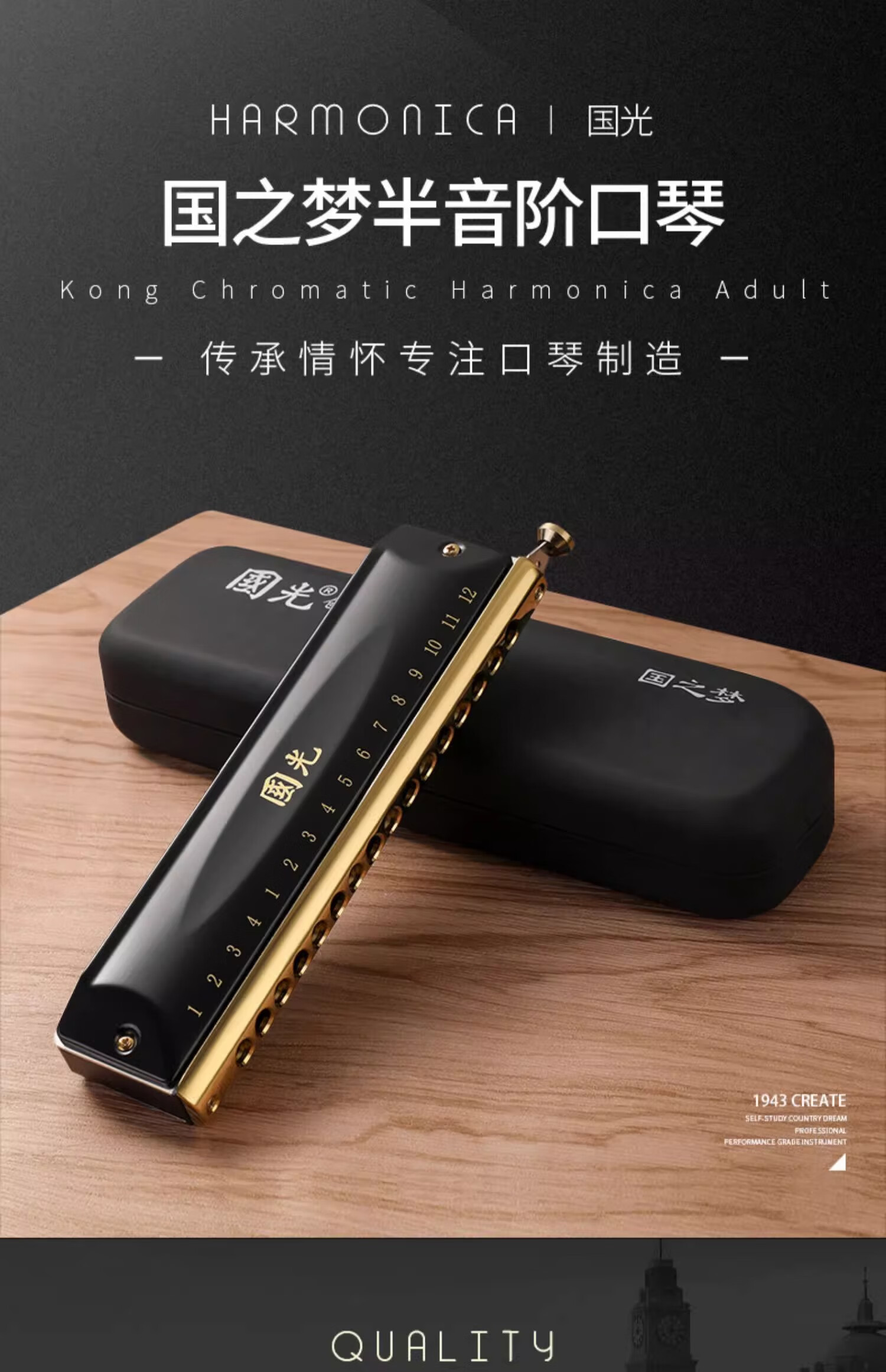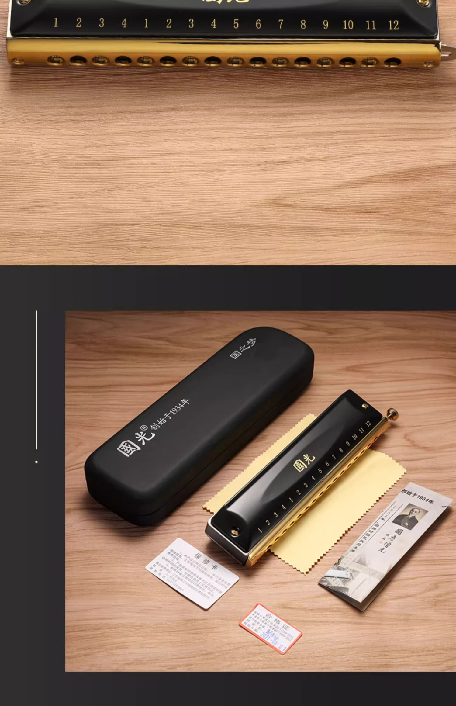 Guoguang chromatic harmonica 10 holes 12 holes 16 holes imported gongs for beginners students entry-level musical instruments for adults professional playing 12 holes chromatic scale black + video teaching