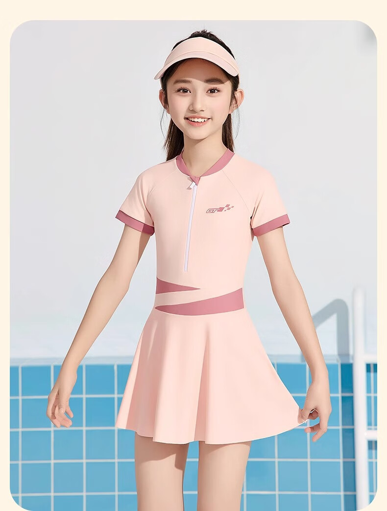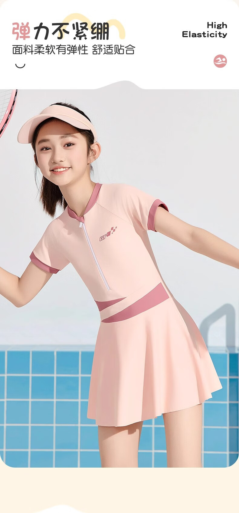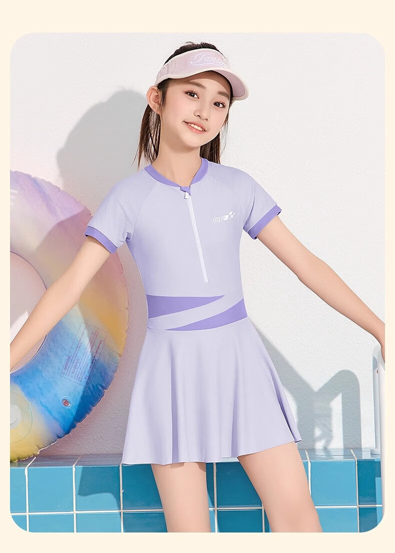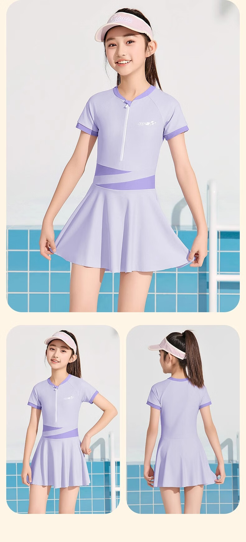 G.DUCKIDS children's swimsuit girls new junior high school students conservative sun protection quick-drying swimsuit older children and girls swimwear 87395 lilac 2XL