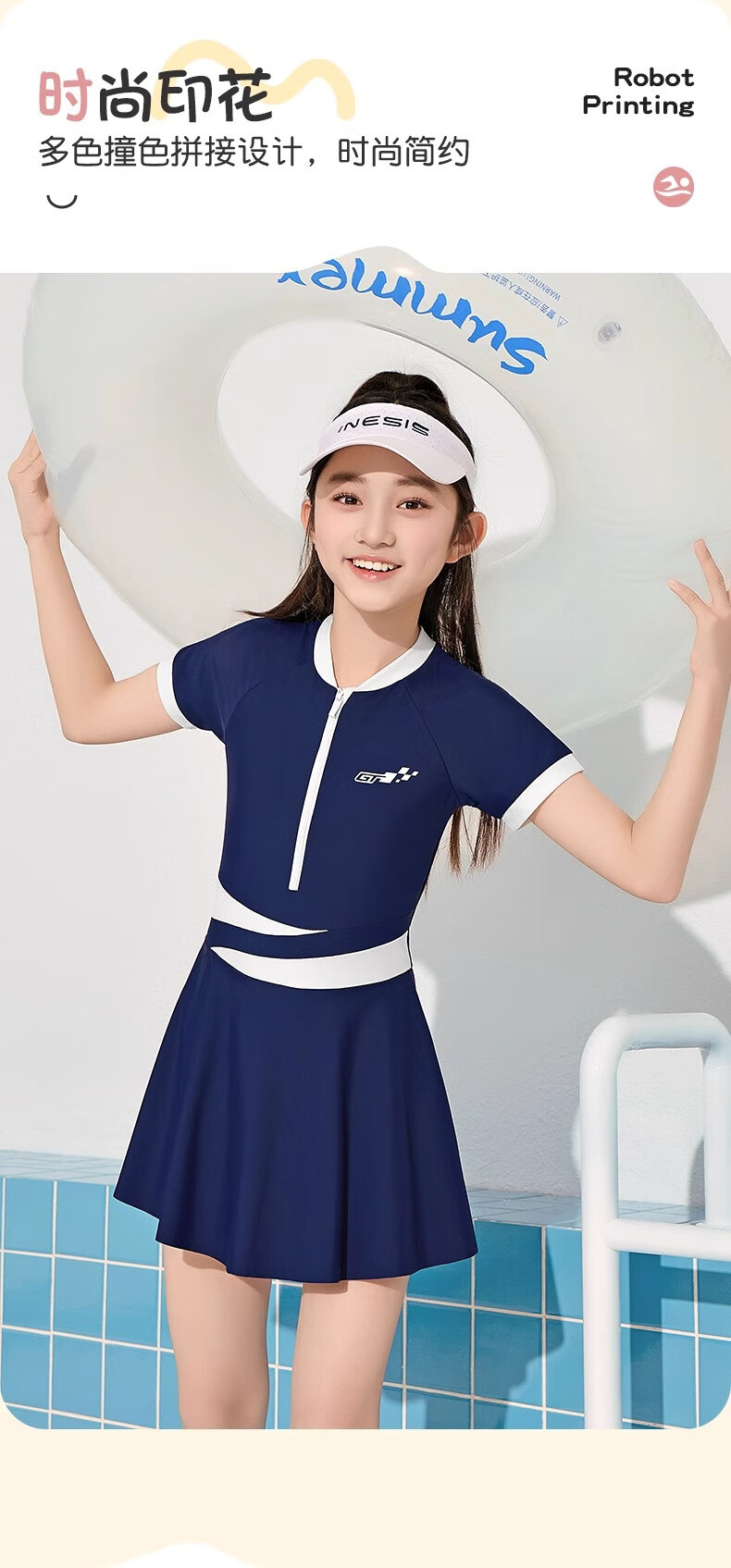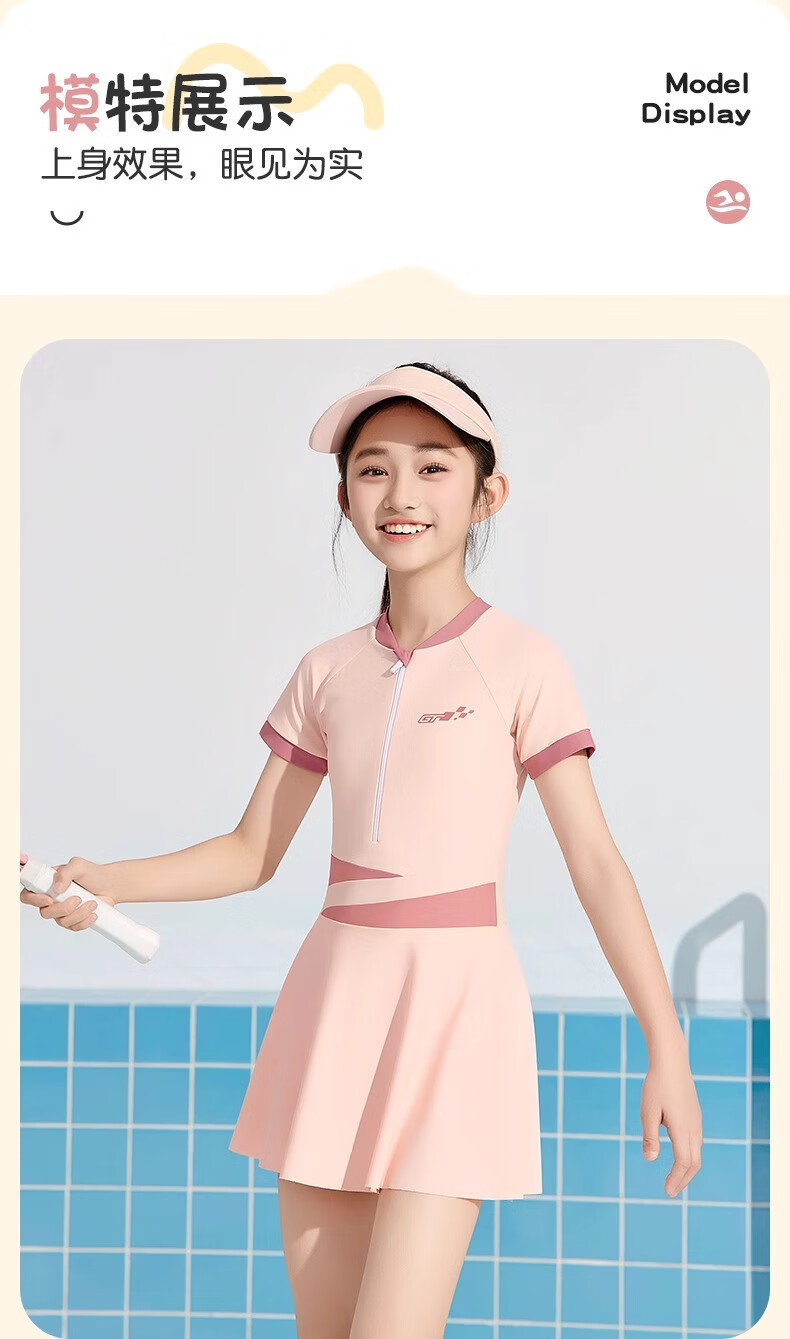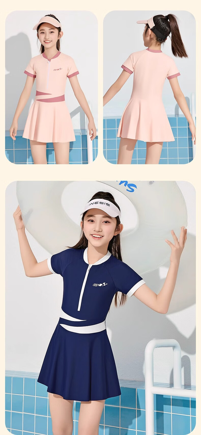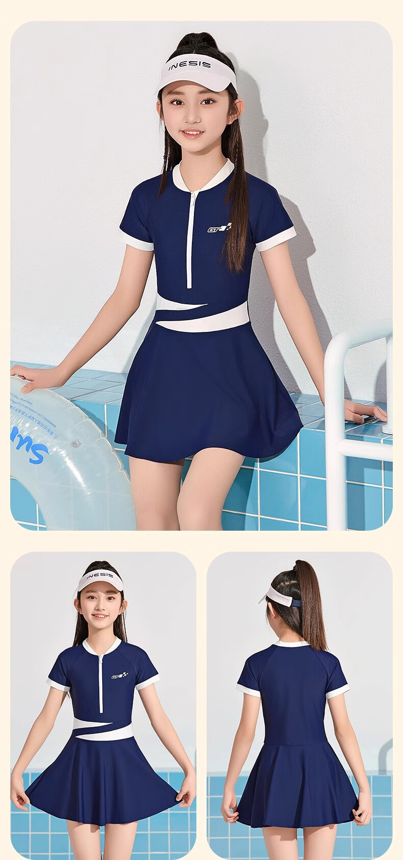 G.DUCKIDS children's swimsuit girls new junior high school students conservative sun protection quick-drying swimsuit older children and girls swimwear 87395 lilac 2XL