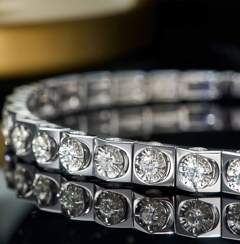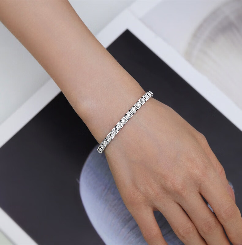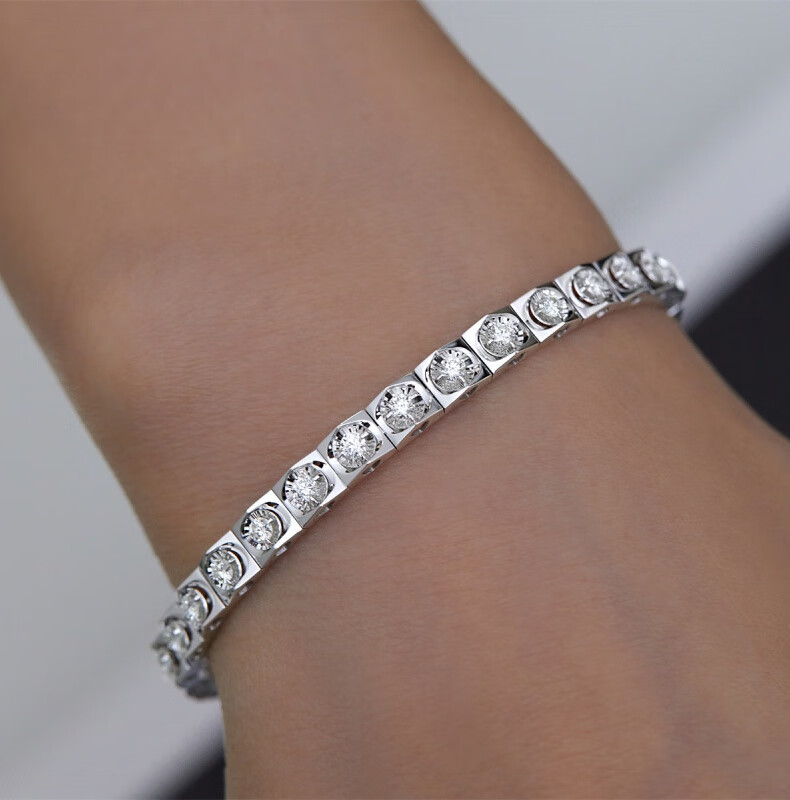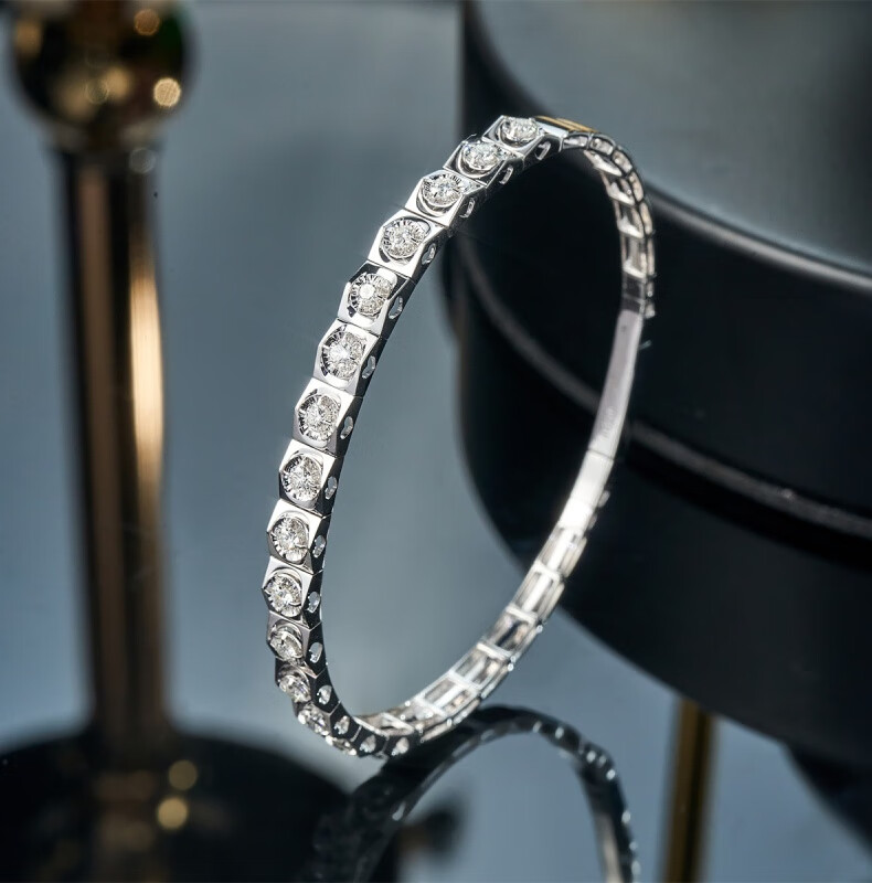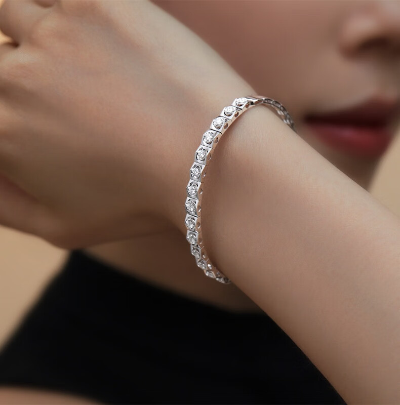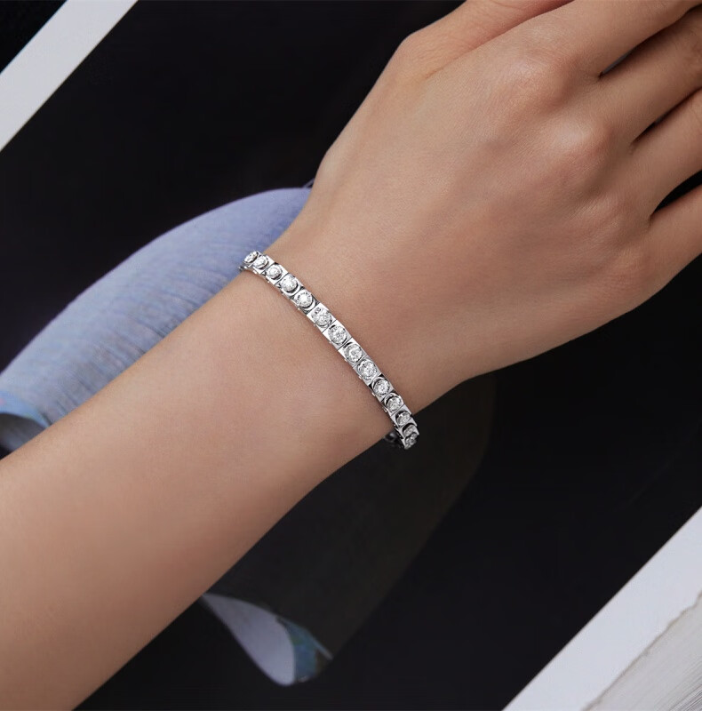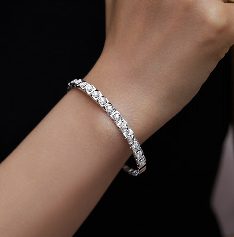 Diamond white 18K gold diamond bracelet for women, full diamond group set diamond bracelet, natural real diamond bracelet, New Year gift for girlfriend, white 18K gold, total 64 points 54#