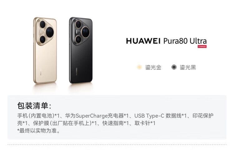 HUAWEI HUAWEI Pura 80 Ultra One-inch ultra-high dynamic main camera Ultra-large bottom dual telephoto Huawei Hongmeng smartphone Glossy black 16GB+512GB Comes with free broken screen insurance Brand new and authentic Ready stock, quick delivery, nationwide warranty
